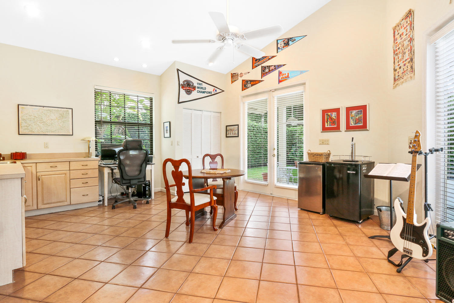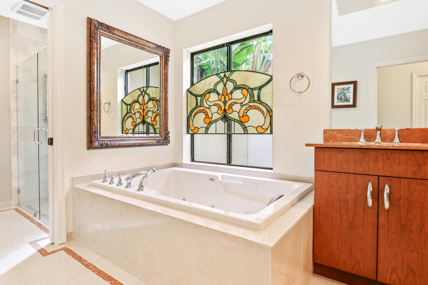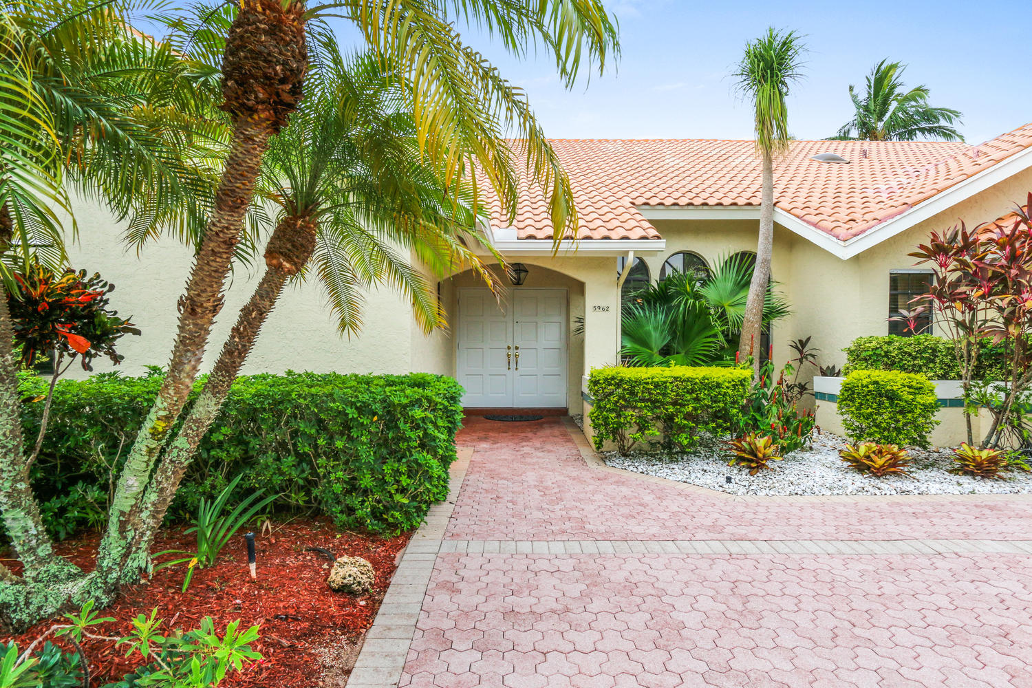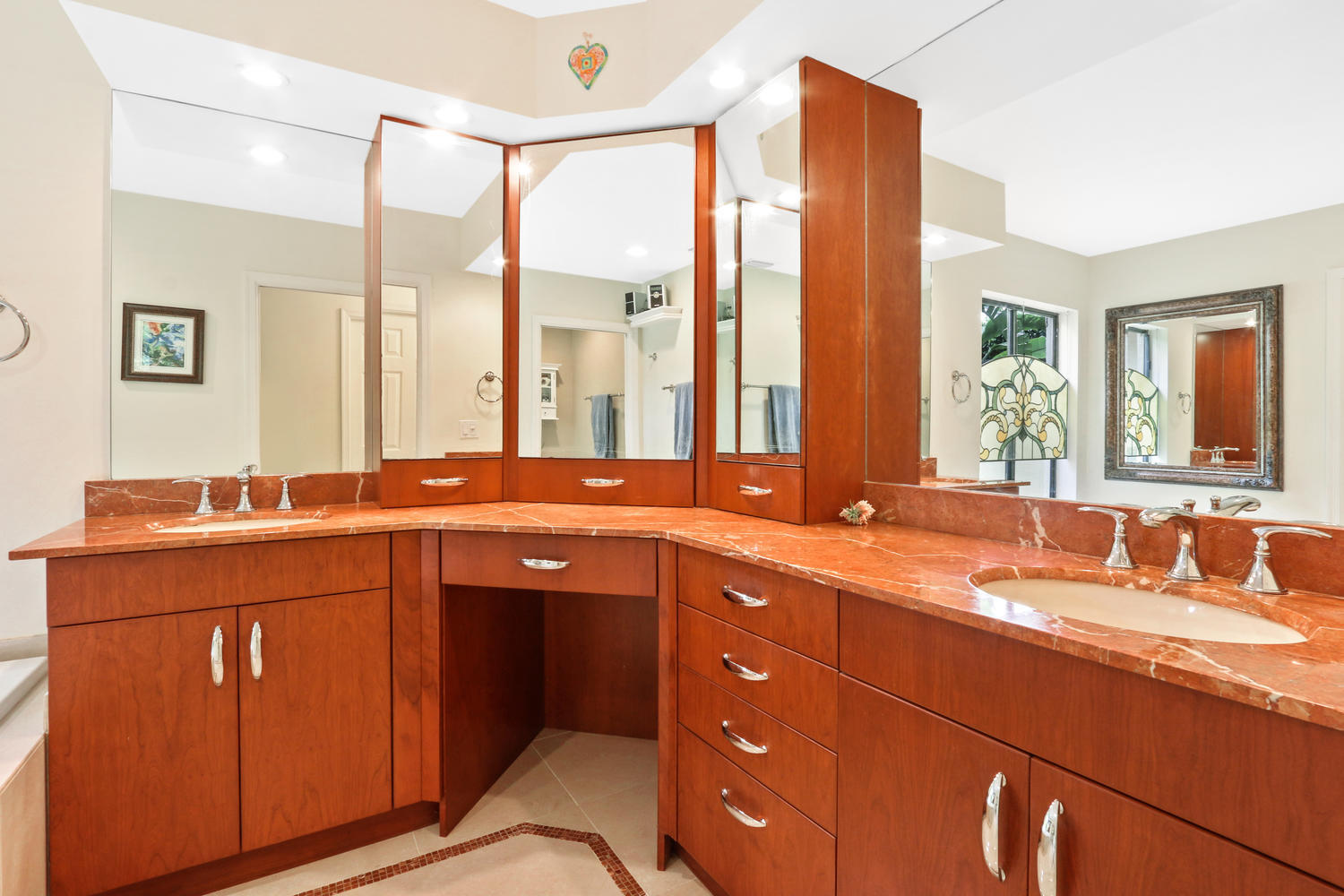 Beautifully upgraded home on oversized corner lot - .33 acre with incredible privacy and spectacular backyard! Extraordinary 5th 'bedroom'/bonus room off the master. Renovated kitchen has wood cabinets with crown molding, pull out shelves, granite counters, Subzero refrigerator with matching cabinetry front panels, breakfast area and bar seating. You might want this house just for the patio and pool area! Coveted southeastern exposure and outdoor cabana bath, gorgeous tropical landscaping surrounds you in your private Florida paradise. Second patio and peaceful garden area off bonus room, which everyone in the family will be fighting over! It could be an office and has private exterior access. Huge circular drive of pavers, gated community with low HOA fees