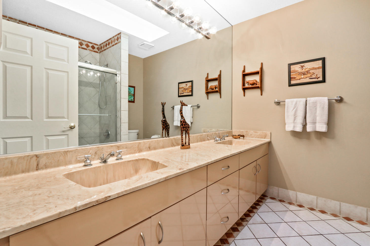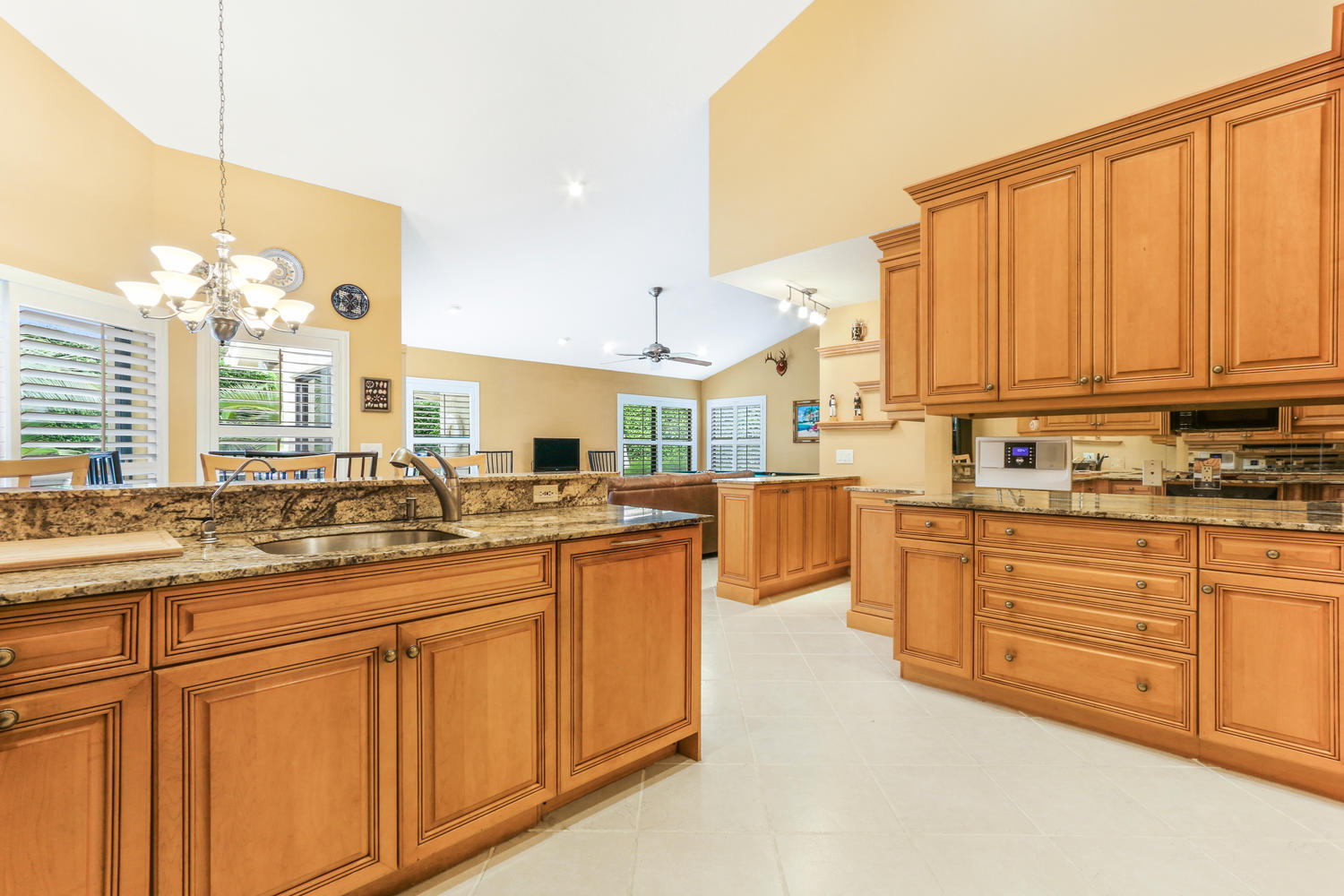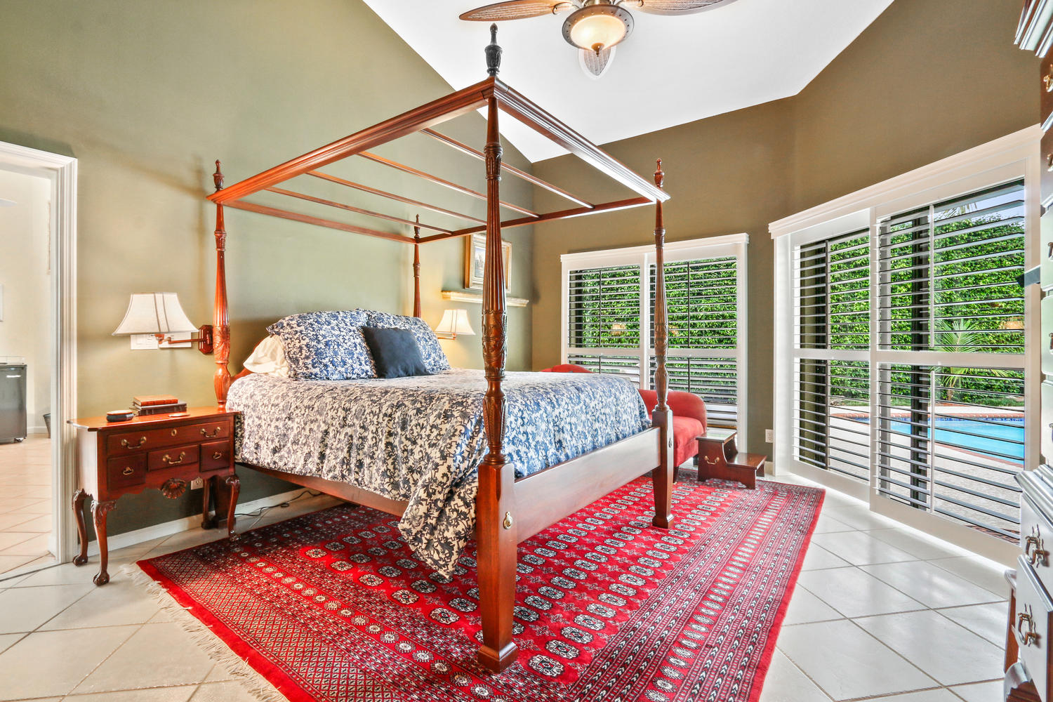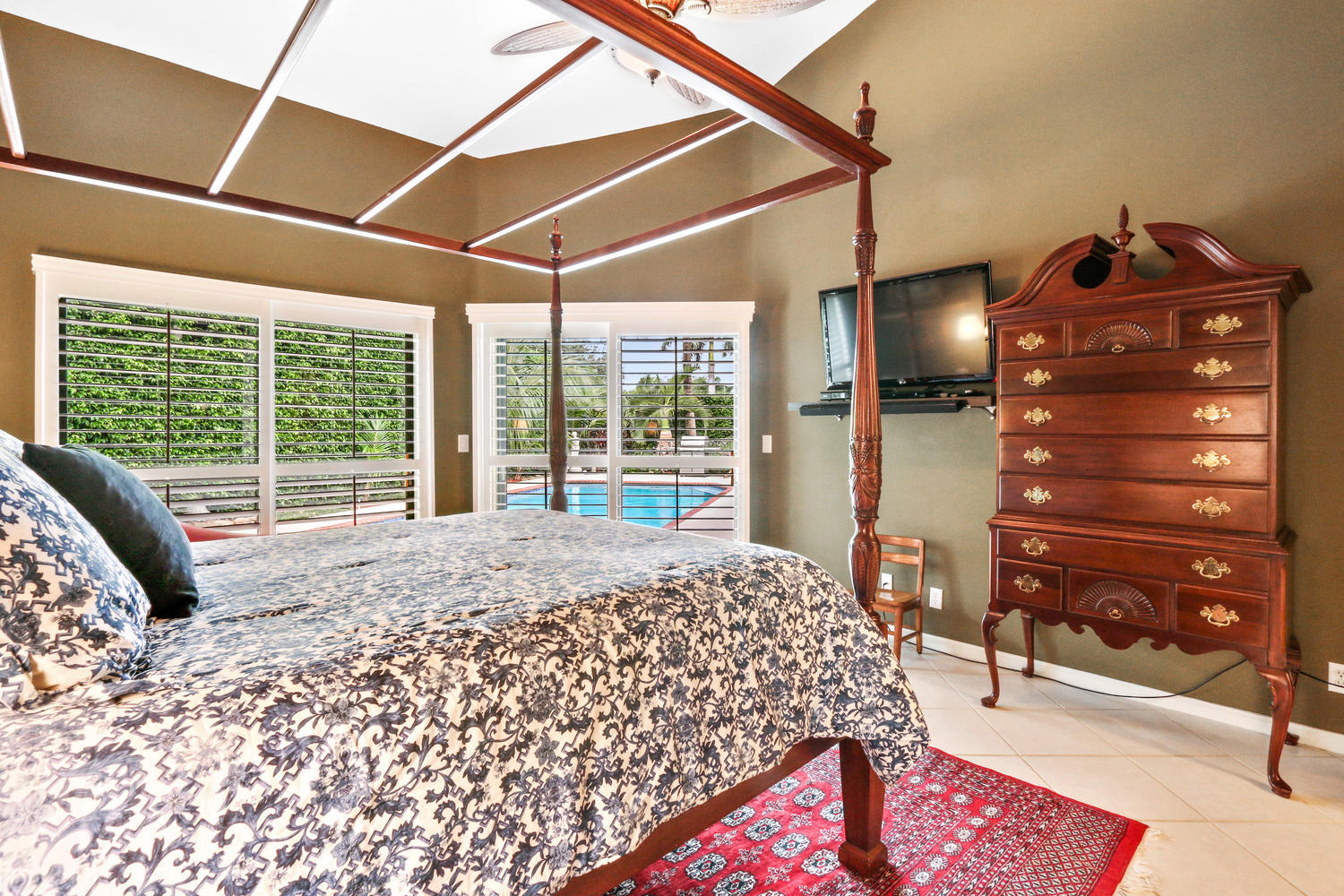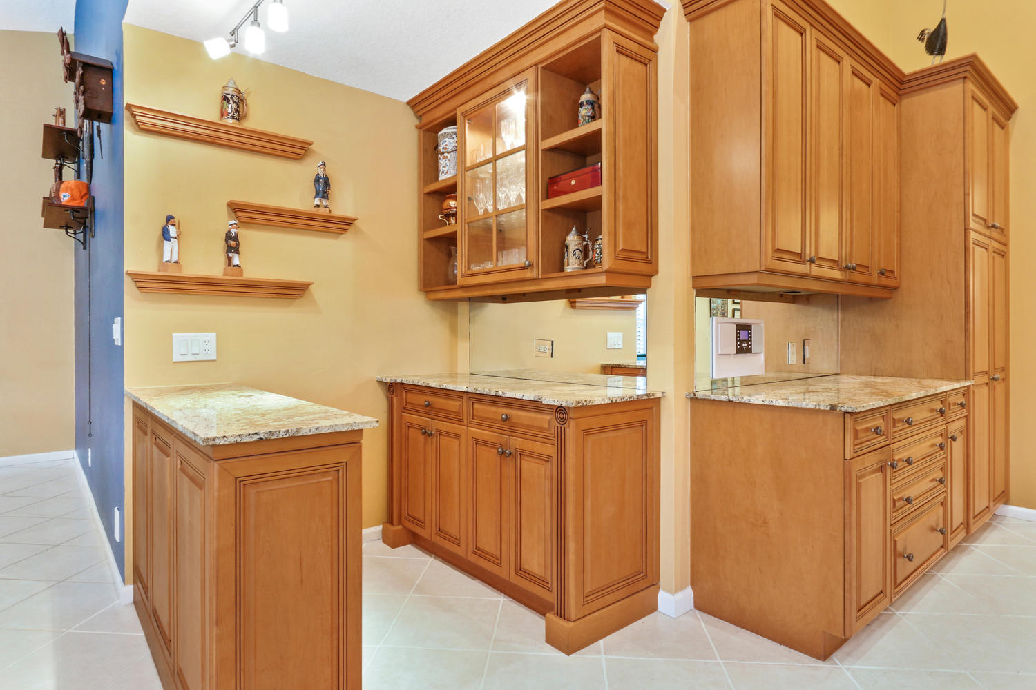 Beautifully upgraded home on oversized corner lot - .33 acre with incredible privacy and spectacular backyard! Extraordinary 5th 'bedroom'/bonus room off the master. Renovated kitchen has wood cabinets with crown molding, pull out shelves, granite counters, Subzero refrigerator with matching cabinetry front panels, breakfast area and bar seating. You might want this house just for the patio and pool area! Coveted southeastern exposure and outdoor cabana bath, gorgeous tropical landscaping surrounds you in your private Florida paradise. Second patio and peaceful garden area off bonus room, which everyone in the family will be fighting over! It could be an office and has private exterior access. Huge circular drive of pavers, gated community with low HOA fees