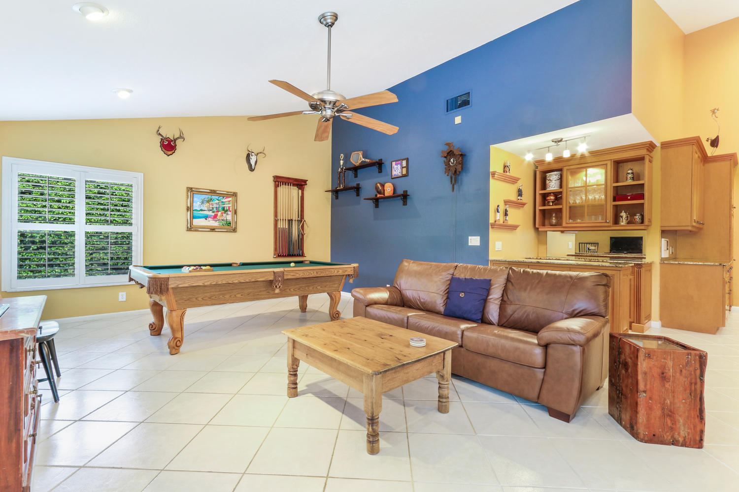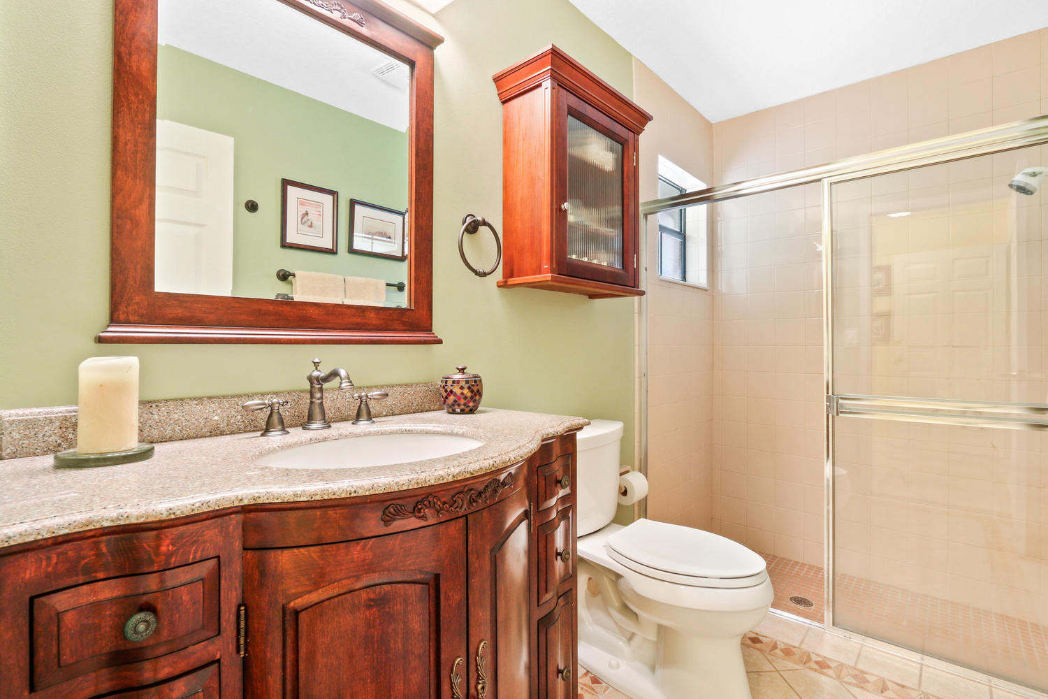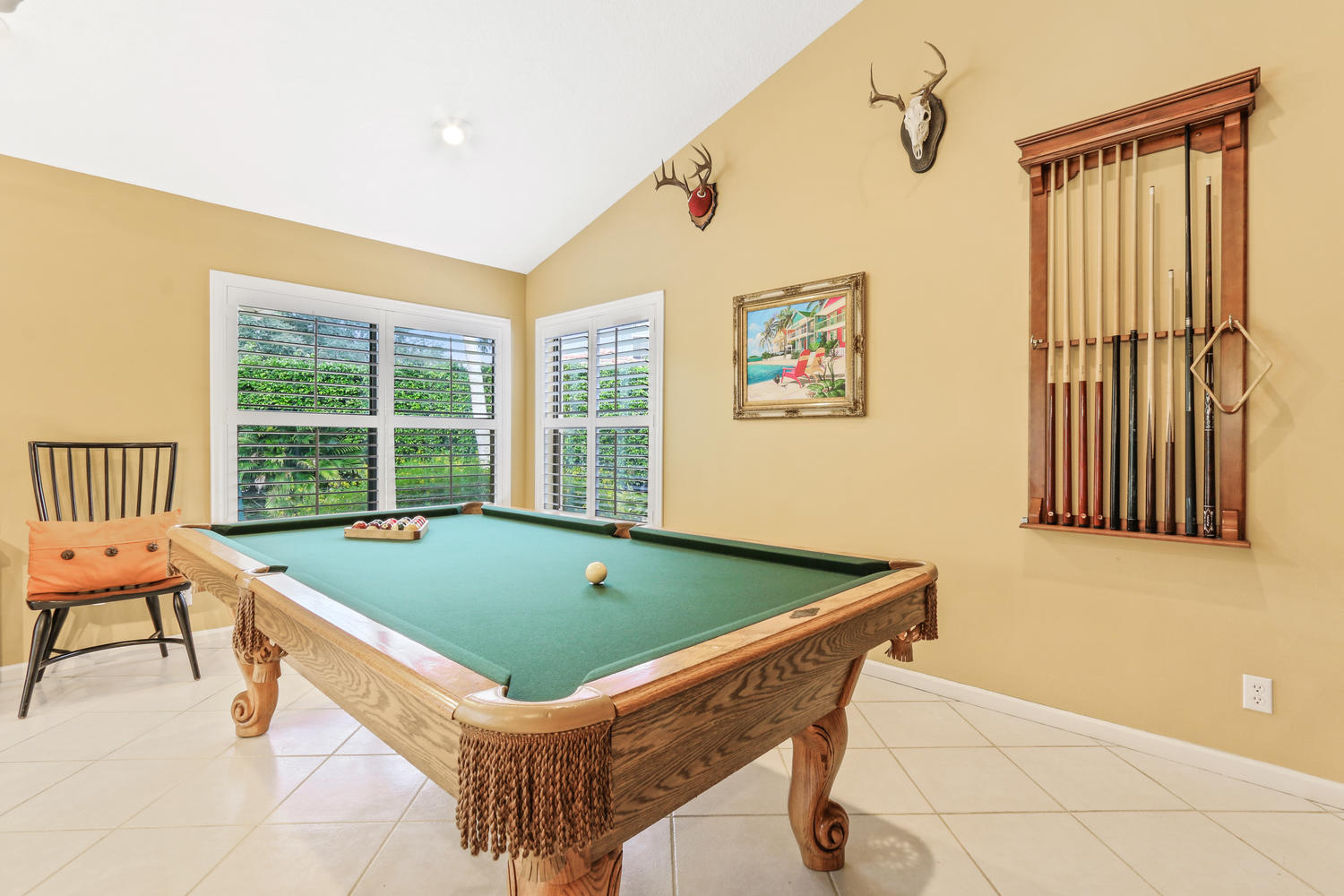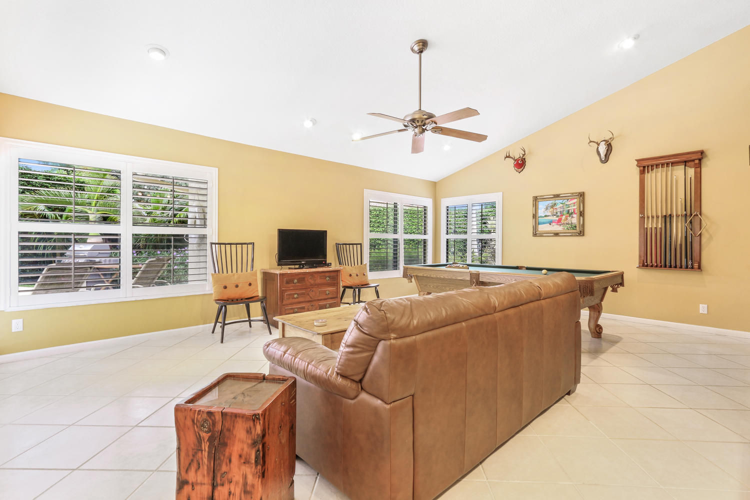 Beautifully upgraded home on oversized corner lot - .33 acre with incredible privacy and spectacular backyard! Extraordinary 5th 'bedroom'/bonus room off the master. Renovated kitchen has wood cabinets with crown molding, pull out shelves, granite counters, Subzero refrigerator with matching cabinetry front panels, breakfast area and bar seating. You might want this house just for the patio and pool area! Coveted southeastern exposure and outdoor cabana bath, gorgeous tropical landscaping surrounds you in your private Florida paradise. Second patio and peaceful garden area off bonus room, which everyone in the family will be fighting over! It could be an office and has private exterior access. Huge circular drive of pavers, gated community with low HOA fees