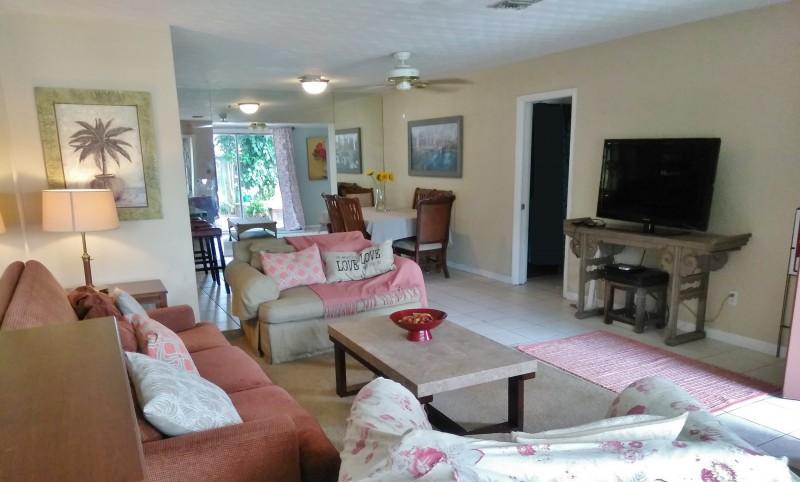 One of the largest home in Cresthaven! 1720sqft under air. Charming 3 bedrooms; Florida room is set up as a 4th bedroom/ in-law efficiency with it's own private entrance. Open floor plan, bright and inviting. Additional rooms; Large Den and large office. Large corner yard. Freshly painted interior and exterior. All brand new plumbing. Updated bathrooms. Located in North East section of Cresthaven, close to Federal Highway. About 3 minutes to Muvico, Whole Foods, Publix. Also, very close to golfing, public parks and the Beach. Reduced price for fast sale.