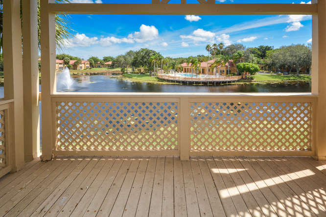 Gorgeous lake views await you from nearly every room of this beautiful 2-story unit. Upgraded kitchen with Stainless appliances, first and second floor master bedrooms, both with patios overlooking the lake, extremely large closets and large loft which could be used as an office or add'l living area. This one is a must see.All measurements approximate; buyer to verify. Cen AC new in '2015; one year home warranty for appliances and water heater included with sale.