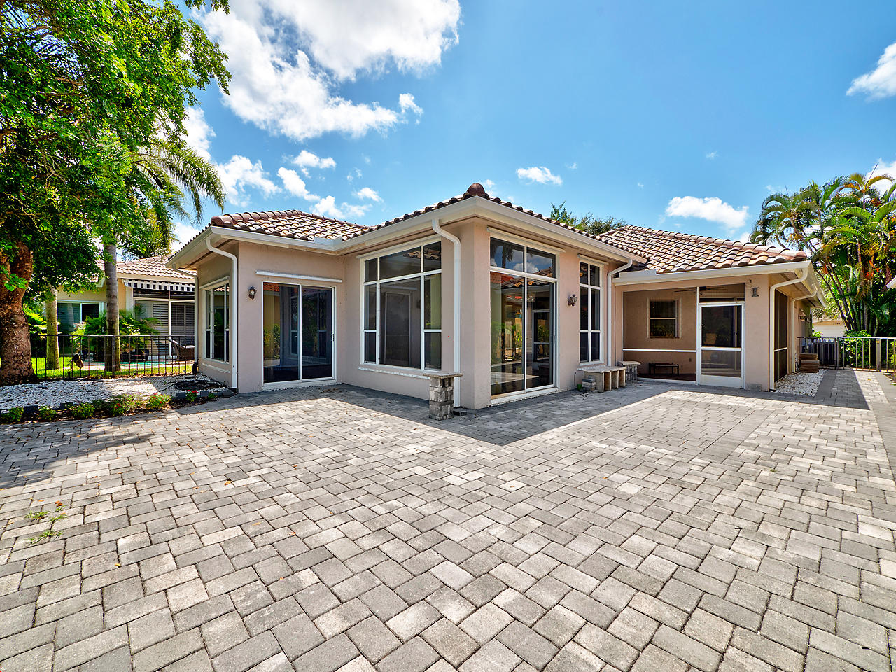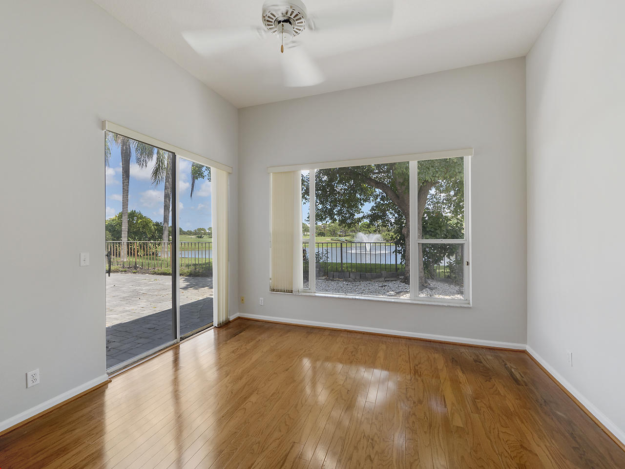 Enjoy the golf course lifestyle without the dues! NO MANDATORY MEMBERSHIP. Regents is a small gated community with only 39 homes located on the Jack Nicklaus designed Lakes Course of Bear Lakes Country Club. This home is nestled into a cul de sac and looks onto the 11th hole that is surrounded by water. Move-in ready. Brand new roof and freshly painted interior. Welcoming courtyard entry with bubbling fountain greets you upon entry into this impressive home. Cross the threshold into open spacious living areas with volume ceilings and wood floors throughout overlooking the lake. Abundant windows and sliding doors provide a seamless transition to the outdoors. The kitchen has wood cabinets, stainless appliances, granite countertops and opens to a large great room with neutral