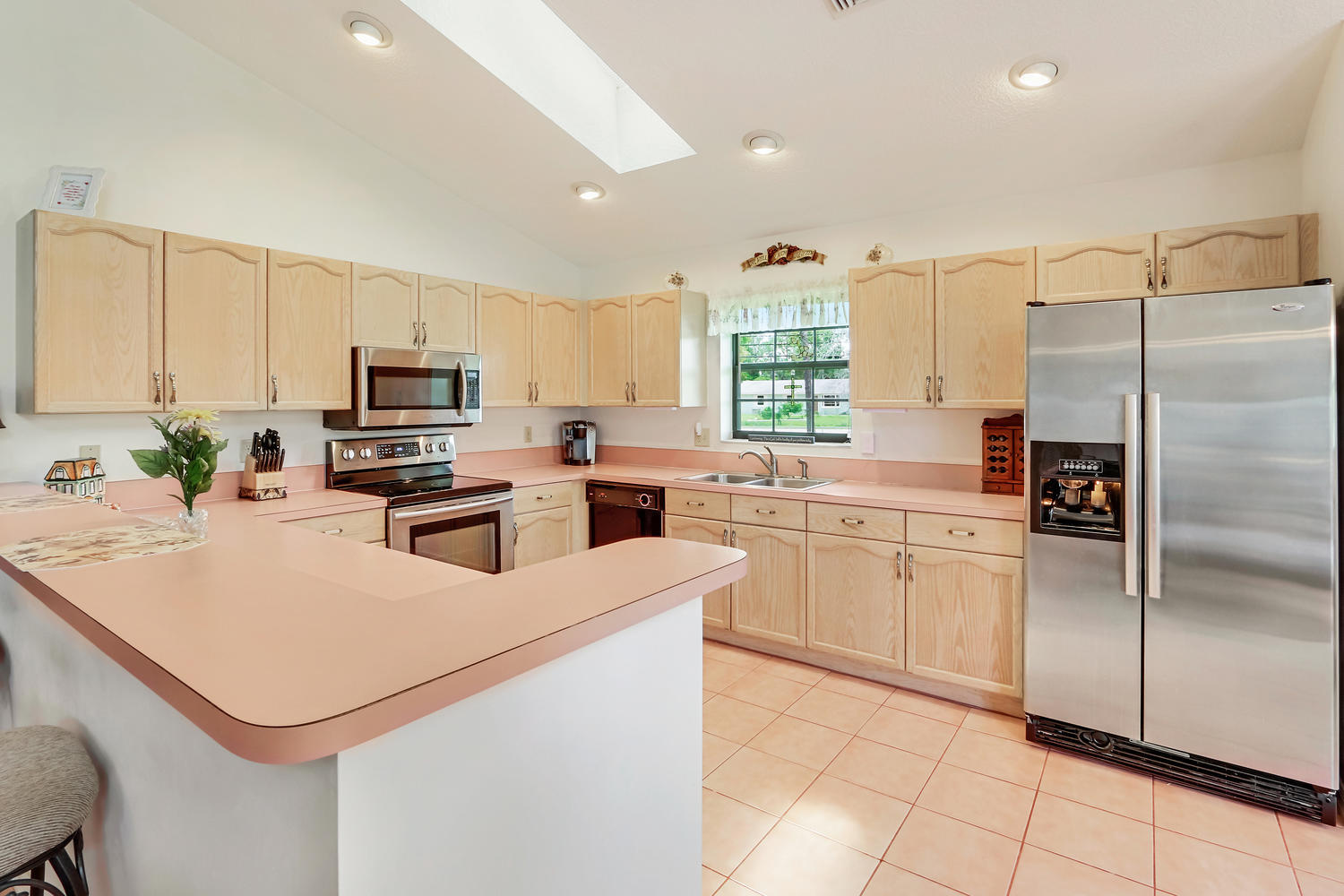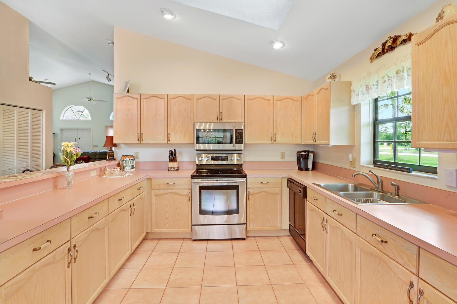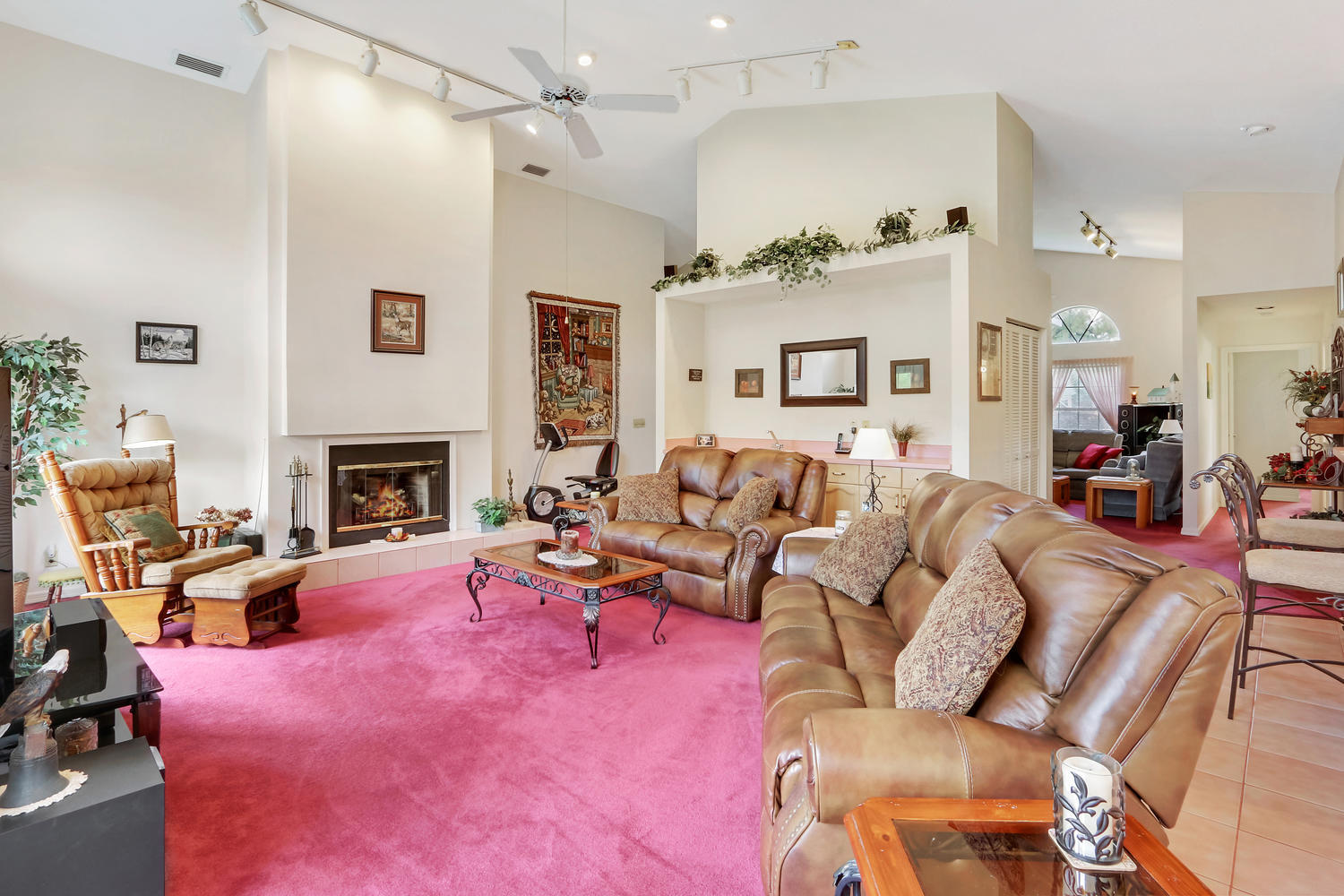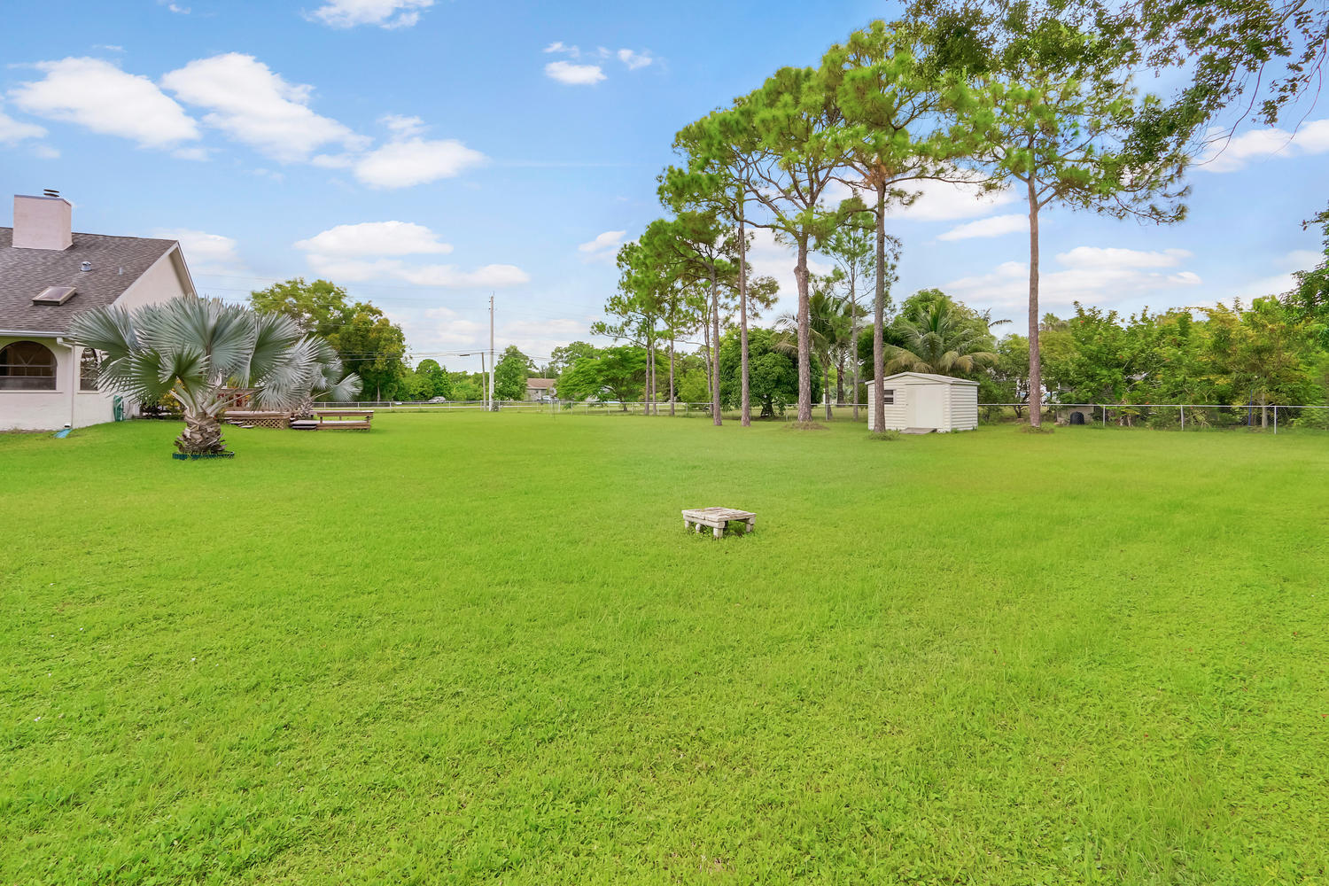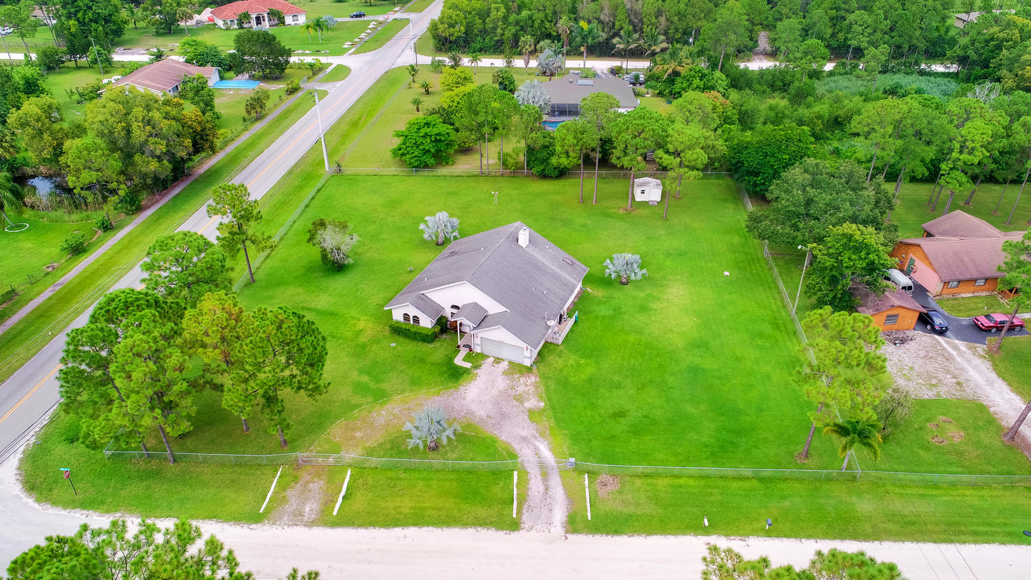 You will feel at home with this fenced corner lot on 1.38 acres. Plenty of room for pool/horse. Come home after a busy day and sink into your garden tub with jets and relax. Have a romantic evening in the family room in front of the real fireplace or use electric logs; there is also a wet bar with sink and full cabinets. Lookout your double doors to the amazing backyard with Bismark Palms as you grill on the double deck. This home is made for entertaining. Kitchen has high top and eat in dining nook. You can enjoy the huge living room when you walk in and the warm feeling you'll get with vaulted ceilings and skylights. This home has a split floor plan featuring an over sized Master bedroom large walk-in closet. One bedroom has private access to guest bathroom.