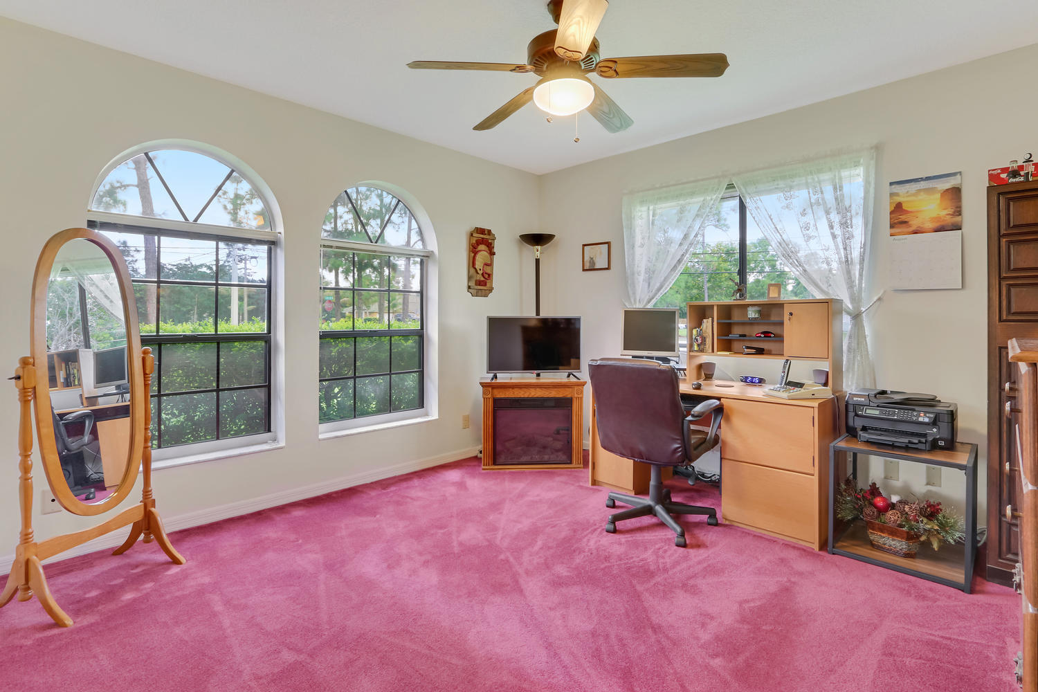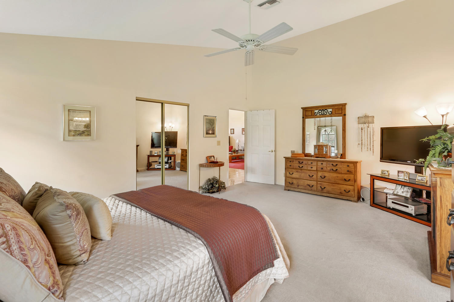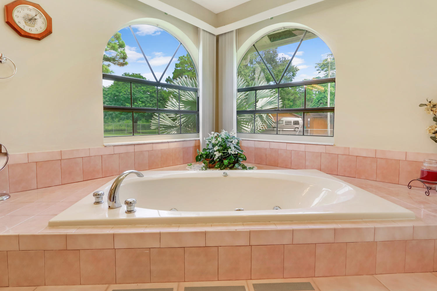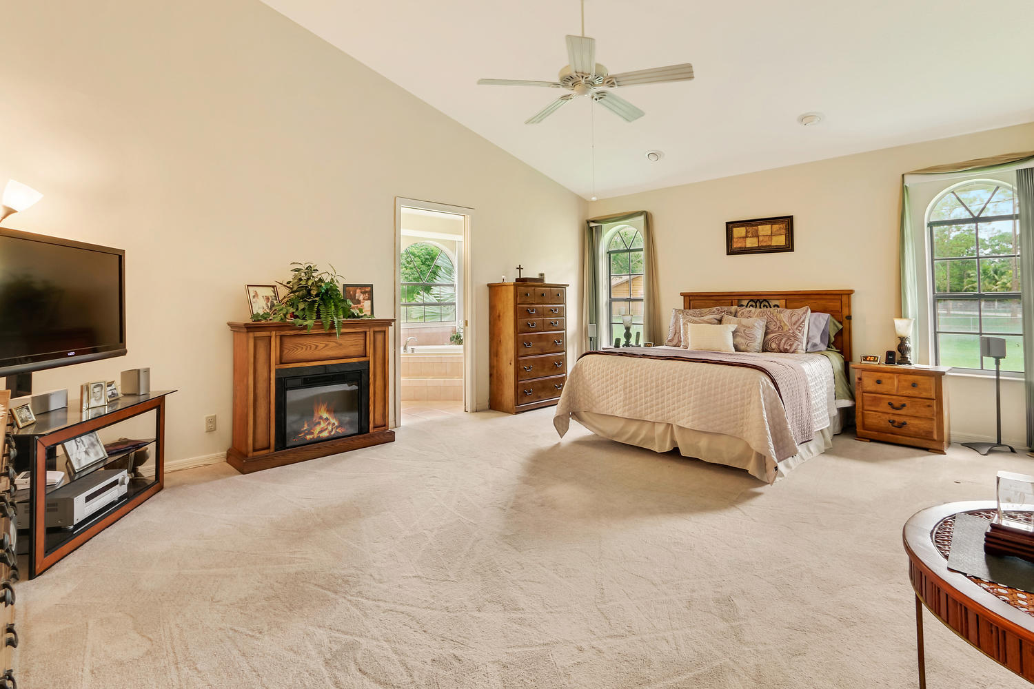 You will feel at home with this fenced corner lot on 1.38 acres. Plenty of room for pool/horse. Come home after a busy day and sink into your garden tub with jets and relax. Have a romantic evening in the family room in front of the real fireplace or use electric logs; there is also a wet bar with sink and full cabinets. Lookout your double doors to the amazing backyard with Bismark Palms as you grill on the double deck. This home is made for entertaining. Kitchen has high top and eat in dining nook. You can enjoy the huge living room when you walk in and the warm feeling you'll get with vaulted ceilings and skylights. This home has a split floor plan featuring an over sized Master bedroom large walk-in closet. One bedroom has private access to guest bathroom.