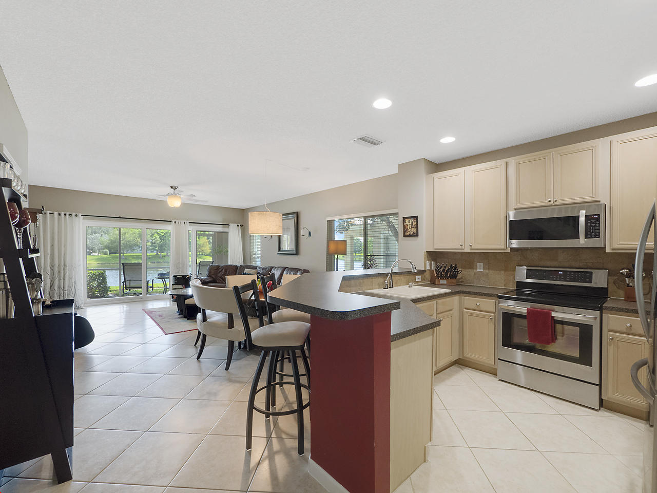 Come enjoy your morning coffee with a serene lakeview. This well maintained 3 bedroom, 2.5 bath town home is move in ready with updated top of the line LG appliances, Moen faucets, lighting and modern ceiling fans. Upstairs features beautiful hand-scraped wood floors. A whole house water softener and filtration system provides a refreshing shower and is also gentle on your clothes in the top of the line Whirlpool (Cabrio Platinum) washer and dryer. The impact windows not only offer storm protection, provide a peace from outside noise. Community features a clubhouse, exercise room, sand volleyball court, children's play area and beautiful pool. Centrally located to all Palm Beach has to offer. Come experience the welcoming presence of Jonathan's Cove.