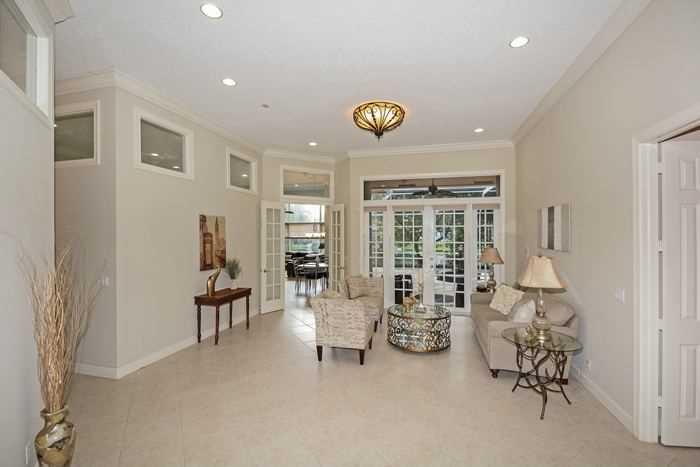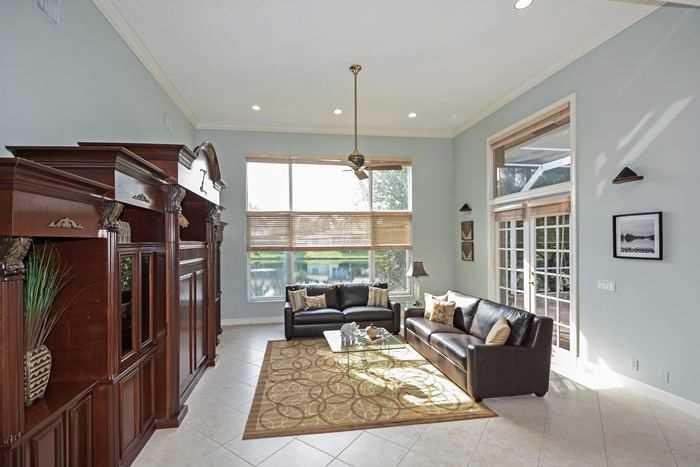 BEAUTIFULLY UPDATED WATERFRONT HOME FEATURES TRIPLE SPLIT BEDROOM PLAN, HUGE OPEN FAMILY ROOM AND A LARGE UPDATED KITCHEN WITH GRANITE COUNTERS, TILE BACKSPLASH, LARGE COUNTER/BAR FOR FAMILY ENTERTAINING. DOMED SCREENED PATIO FEATURES TRANQUILITY SCULPTUR E/FOUNTAIN FOR YOUR OUTDOOR ZEN RELAXATION AND ENJOYMENT.MASTER SUITE BOASTS 4 CLOSETS,BUILT-IN DRAWERS AND STORAGE, LARGE SHOWER AND SPA TUB! COMPLETE HURRICAN PROTECTION AND IMPACT WINDOWS IN ONE ROOM.ENJOY THE HAWKS LANDING LIFESTYLE!