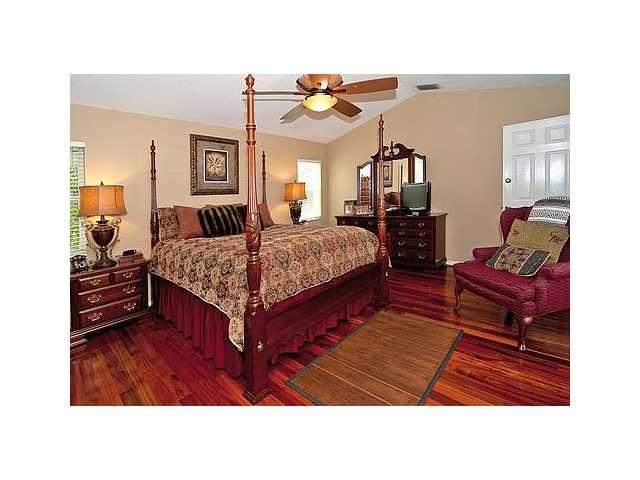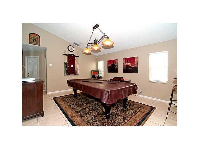 Welcome Home! Open floor plan with GOURMET KITCHEN. Beautiful cabintery, granite counters, stainless appliances. Upgraded tile in the living areas, hardwood in the bedrooms. Very spacious. Split bedroom plan. Screened in patio with Mexican tile, per fect for entertaining. Upgraded Master bath. Located on cul-de-sac street. Within ealking distance to Eagle Point Elementary. Community pool, 24/7 guard gated. This is what you have been waiting for. Come see today!