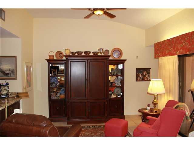 Immaculate 2/2 home with fantastic view of Woods course second hole green. Interior features include: Custom wood kitchen with granite counter tops & serving area, stainless steel appliances, large eat in kitchen, separate laundry room, textured walls, re modeled master bathrooms with custom wood built-ins, tile throughout with carpet in bedrooms, all windows coated w/safety film & newer A/C w/uv light. Exterior features include: over sized lot with room for seperate pool, fenced patio & 5yr old roof.