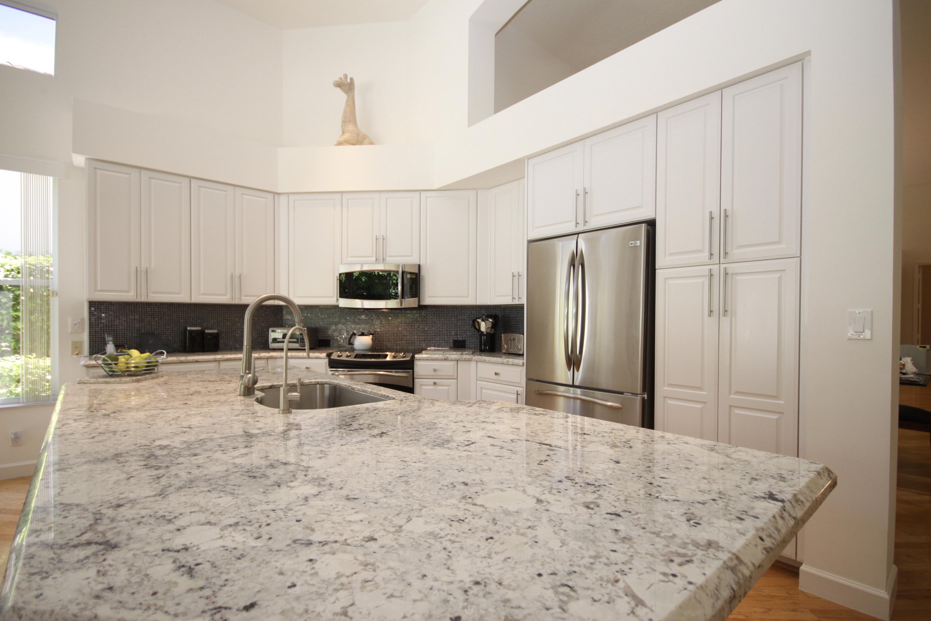 Completely decorator designed, single story home with tranquil lake view. This 3 bedroom 4 full bath home features 2 baths in the master, all are updated. The dramatic kitchen with large granite counters and stainless steel appliances is open to the family room and wood floors cover the living areas. Tropical flowering plantings bring a beautiful outside in to the brightest of homes with high ceilings. Hurricane shutters.