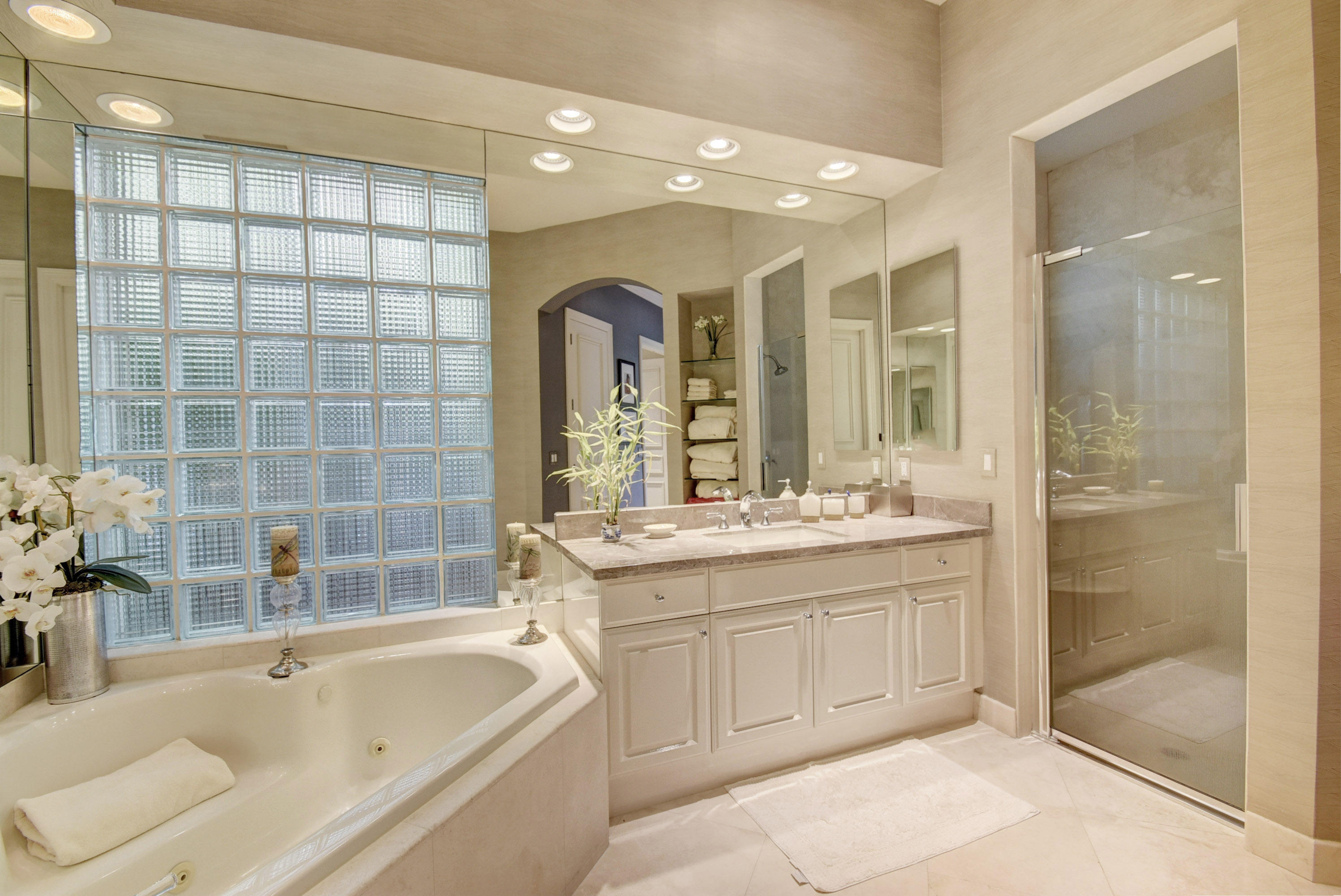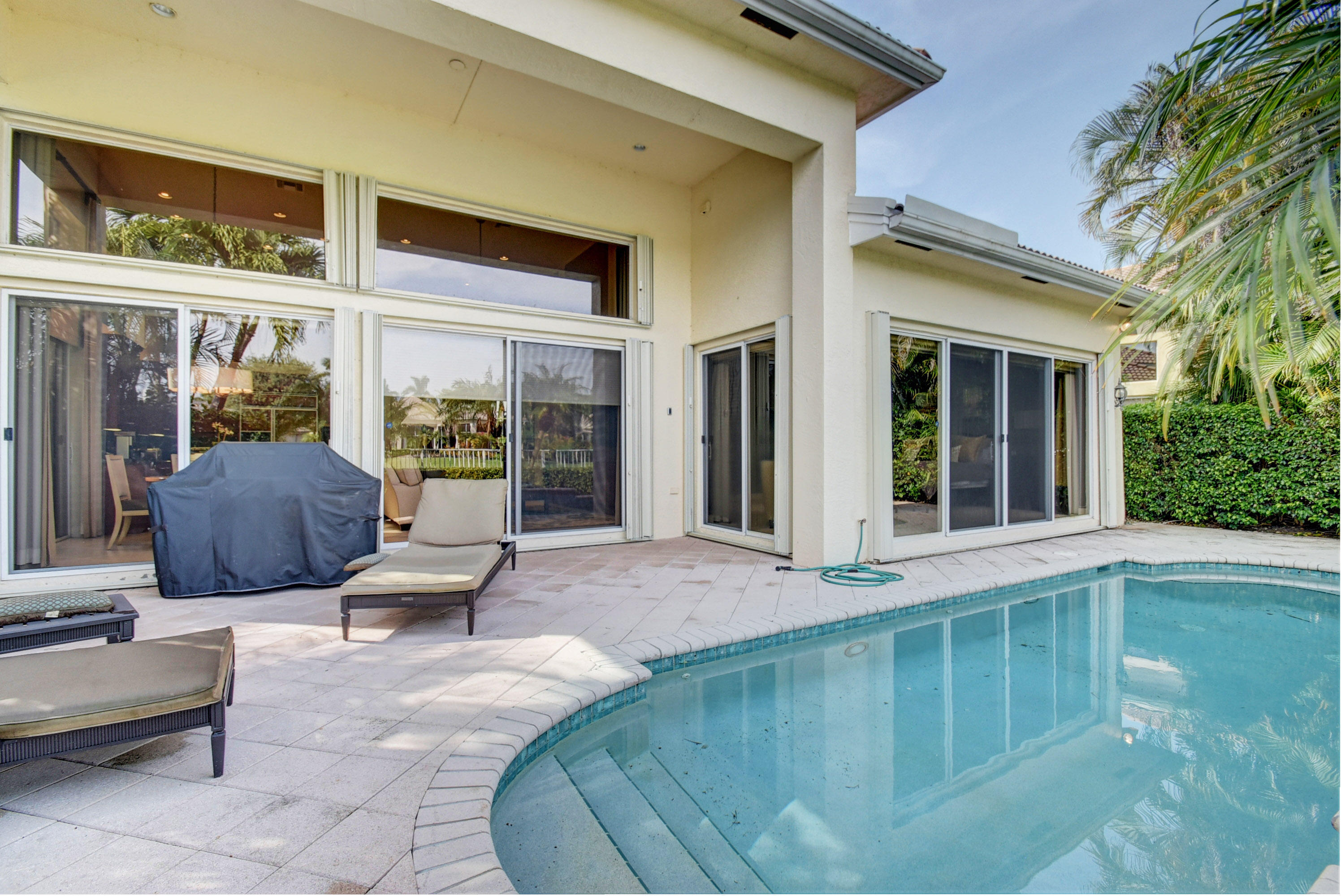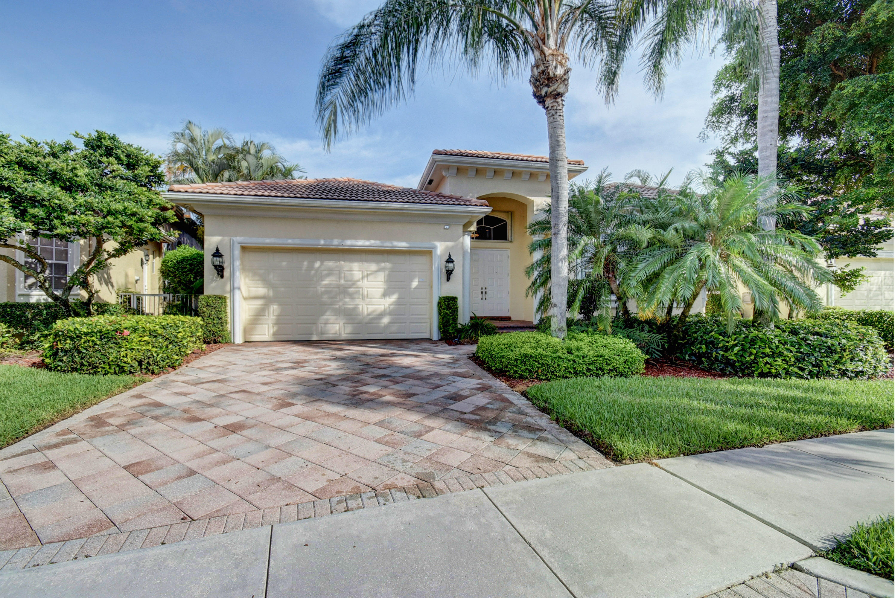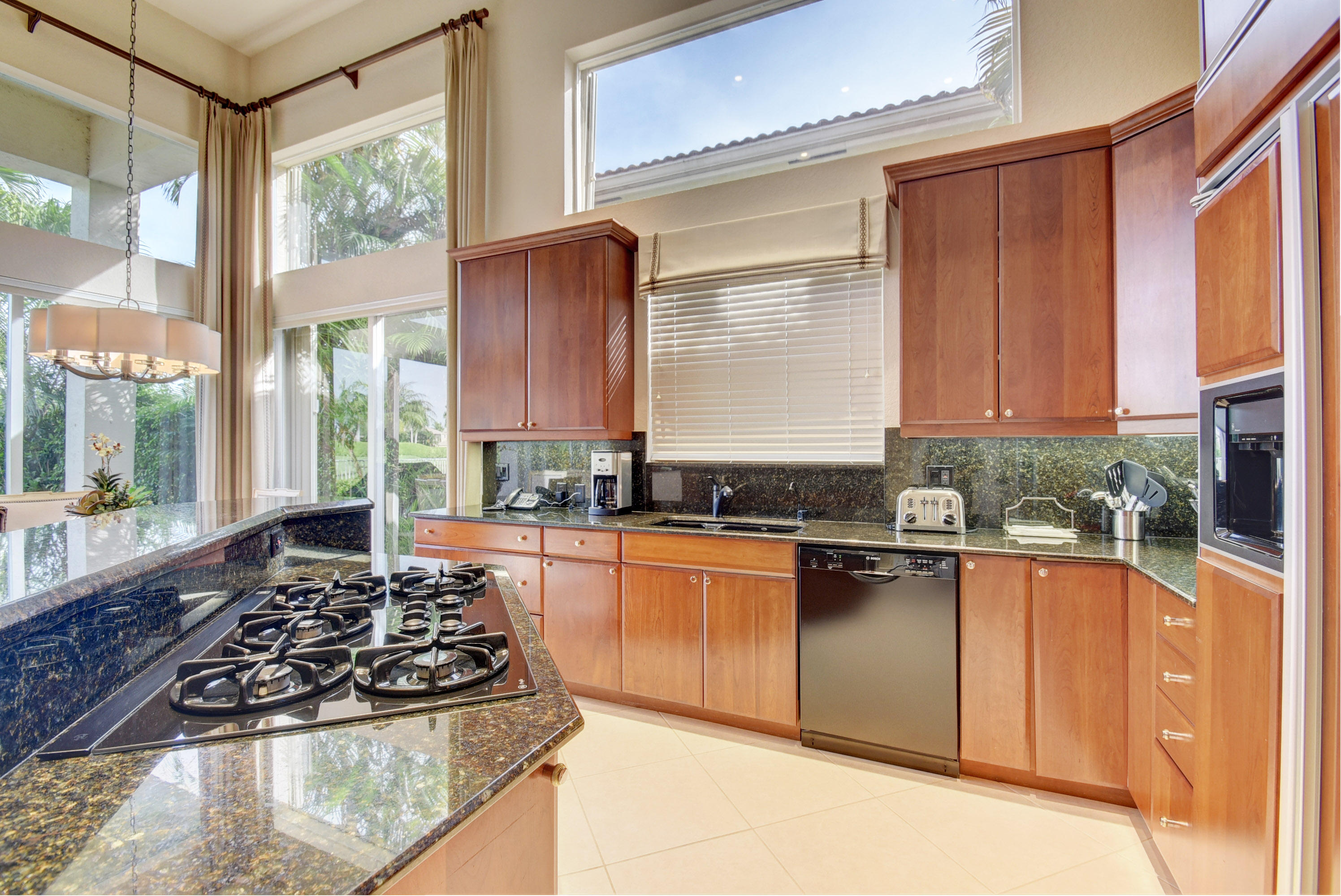Wide lake views fill this beuatiful one-story of 3 bedrooms & 3 baths featuring tasteful finishes throughout including volume & tray ceilings with LED lighting; neutral carpeting & beige tile laid on the diagonal; an open kitchen offering cherry cabinetry with roll-outs & black granite counters & backsplash; French doors leading into the 3rd bedroom with elegant dark wood wall moldings & built-in desk and shelves; built-in Dining Room credenza & Family Room entertainment center; marble bathroom counters; custom window treatments & plantation shutters;custom closet design; new air conditioning units, water heater & water filtration systems; and hurricane accordion shutters & panels. The inviting open patio is spacious featuring a splash pool with a waterfall feature overlooking the lake.