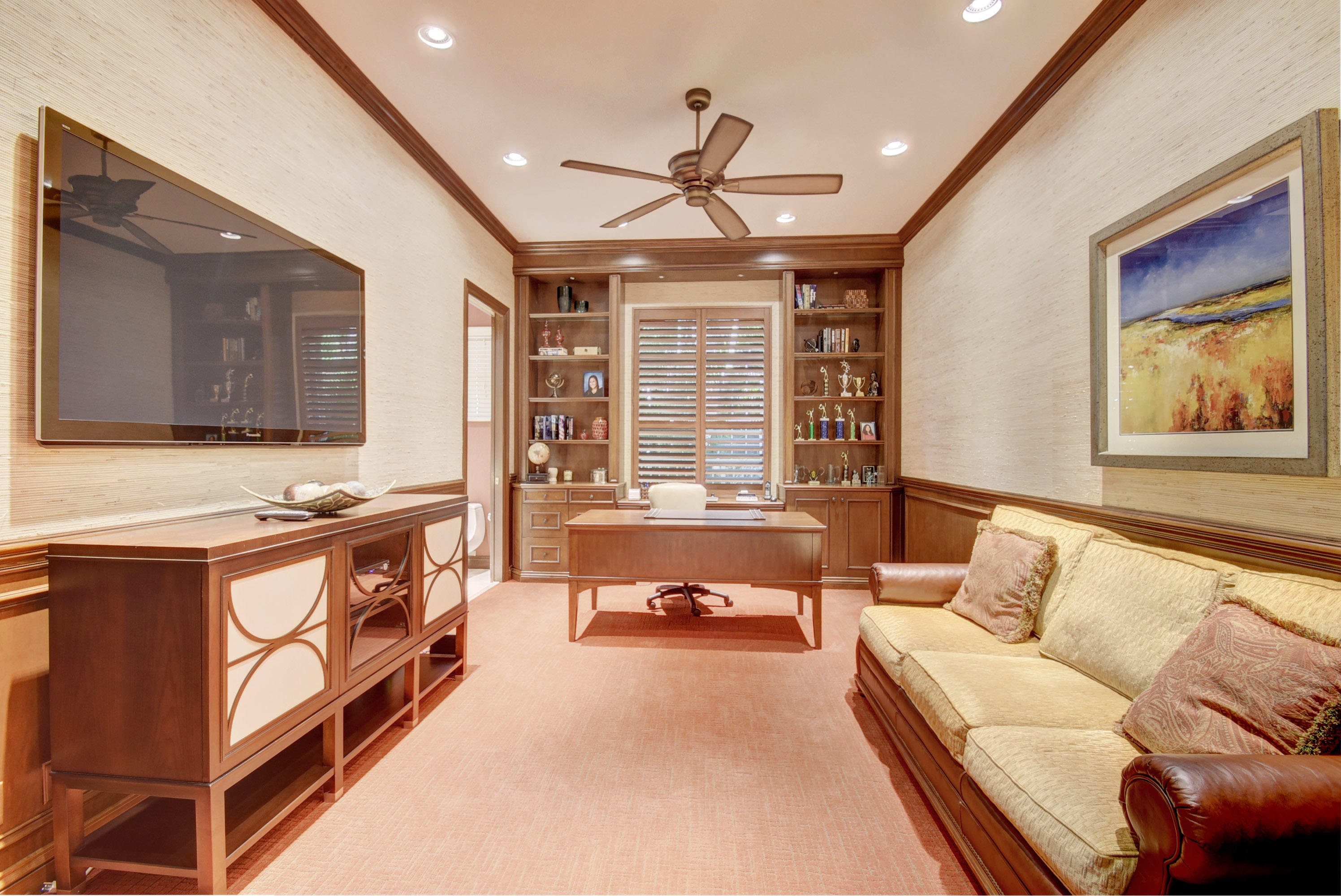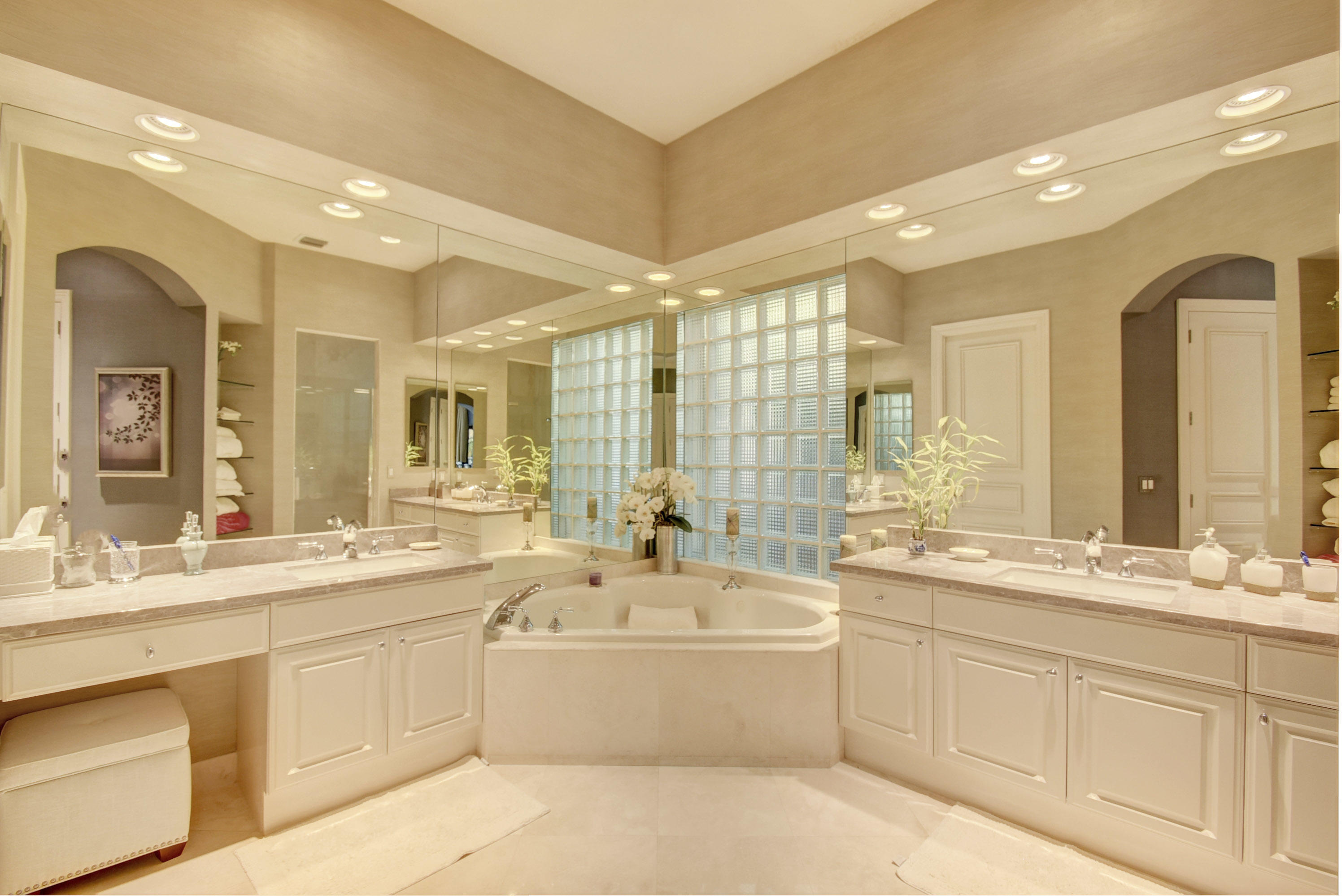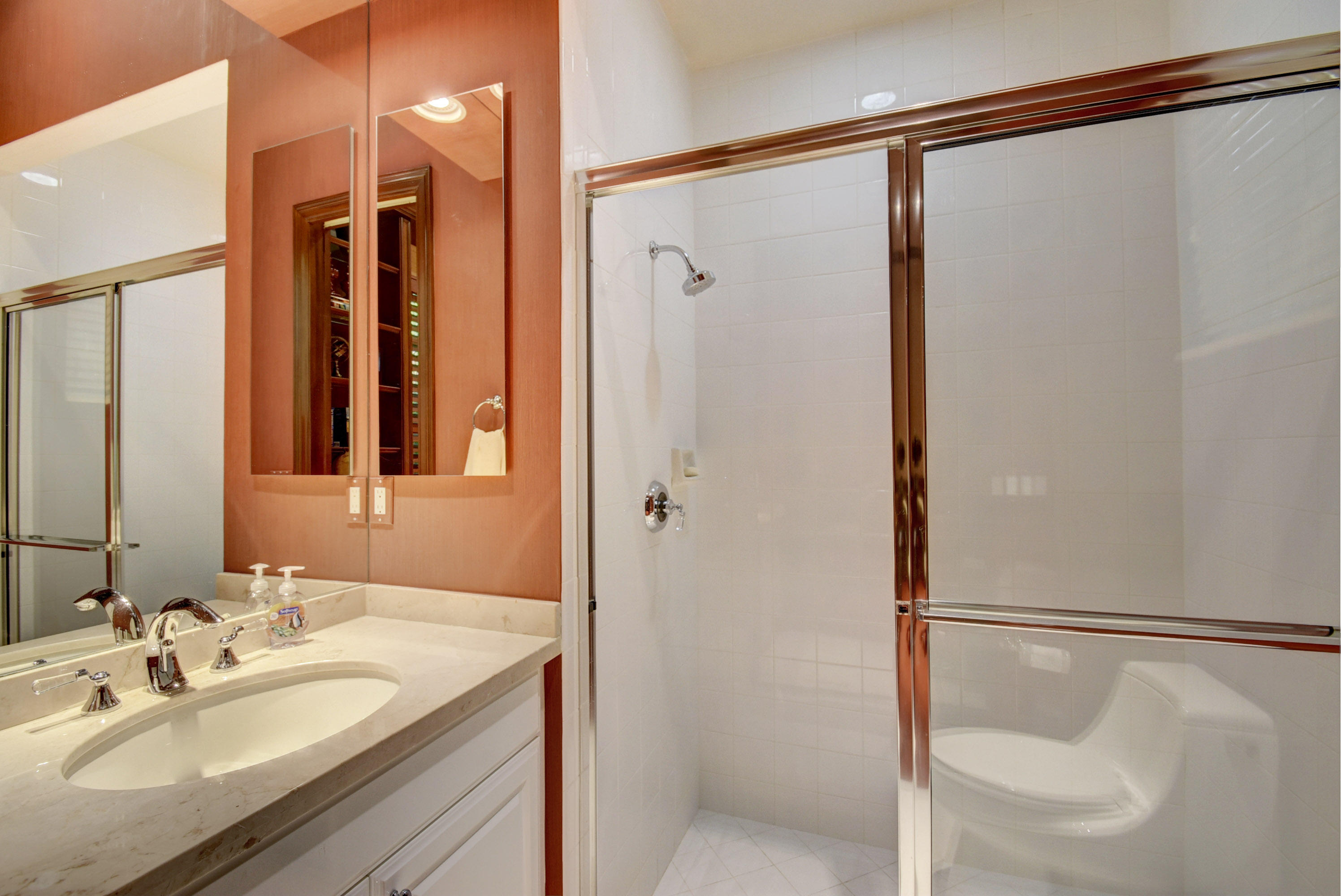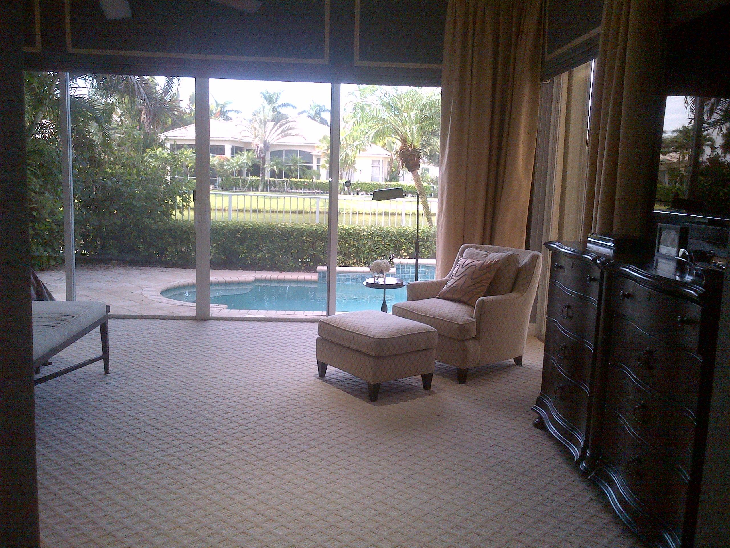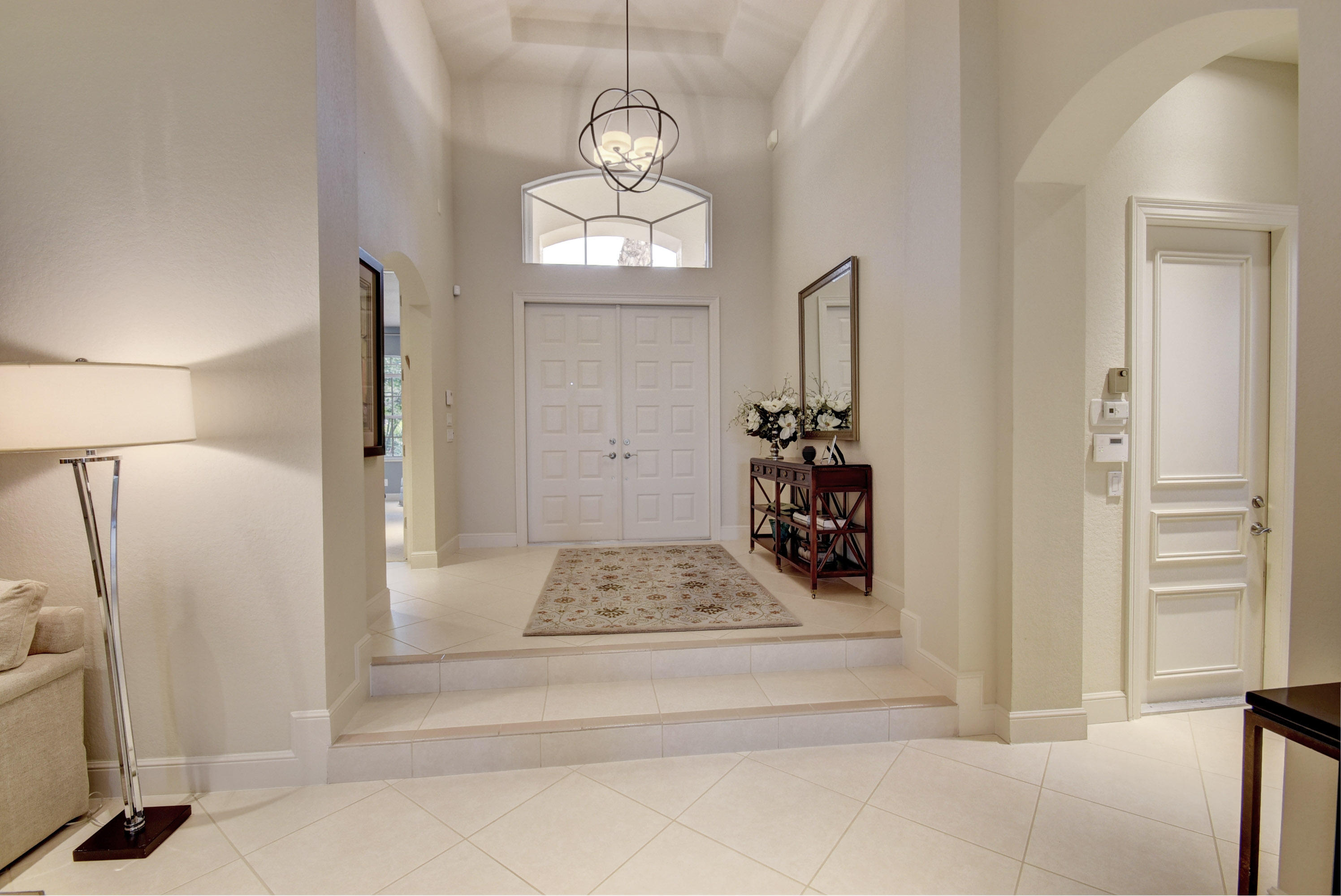Wide lake views fill this beuatiful one-story of 3 bedrooms & 3 baths featuring tasteful finishes throughout including volume & tray ceilings with LED lighting; neutral carpeting & beige tile laid on the diagonal; an open kitchen offering cherry cabinetry with roll-outs & black granite counters & backsplash; French doors leading into the 3rd bedroom with elegant dark wood wall moldings & built-in desk and shelves; built-in Dining Room credenza & Family Room entertainment center; marble bathroom counters; custom window treatments & plantation shutters;custom closet design; new air conditioning units, water heater & water filtration systems; and hurricane accordion shutters & panels. The inviting open patio is spacious featuring a splash pool with a waterfall feature overlooking the lake.