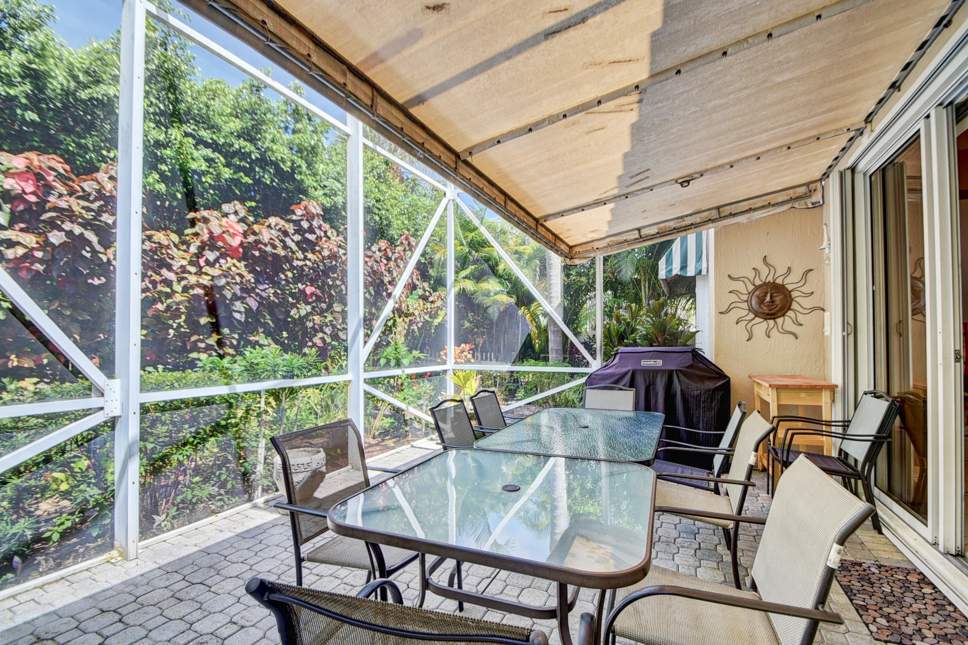 This gorgeous home is offered tastefully furnished and fully equipped, and owner is flexible. Just bring your toothbrush! Updated kitchen with granite counters and stainless steel appliances. High volume ceilings. 1st floor master suite, 2nd floor office/loft with 2 bedrooms. Plenty storage space and 2 car garage. Secluded screened patio. Community pool steps away. Guard gated security. Membership to Boca Pointe CC is optional.