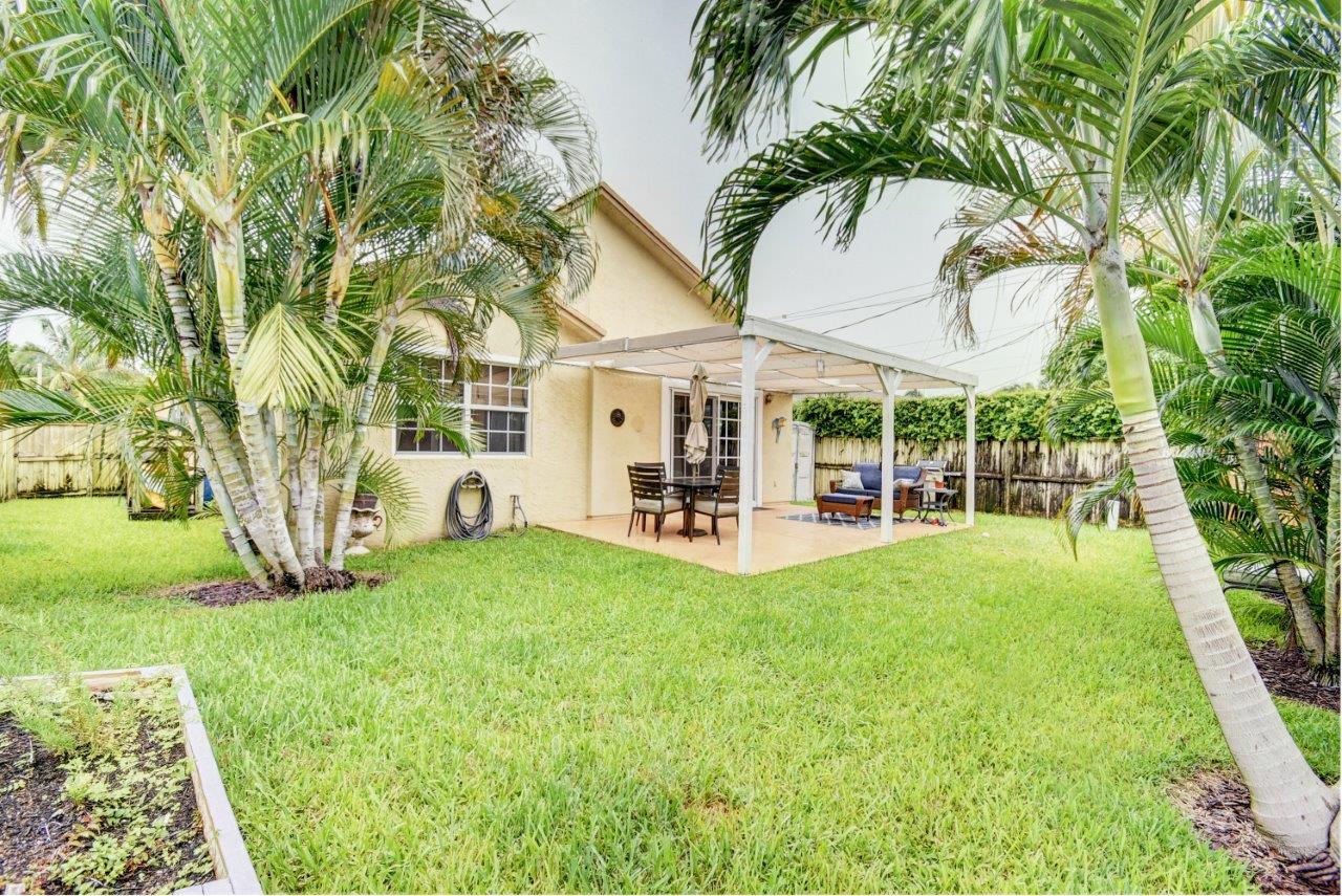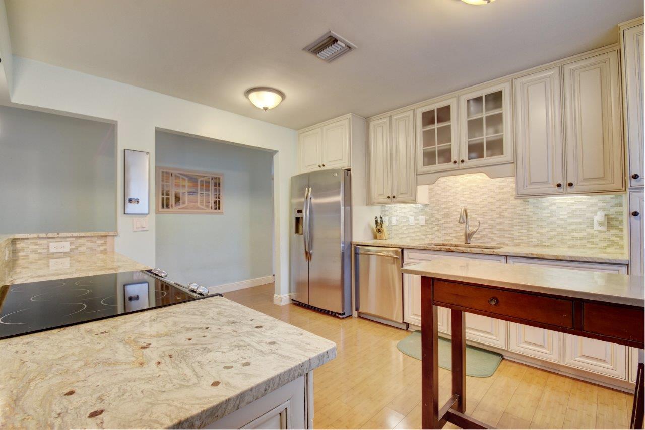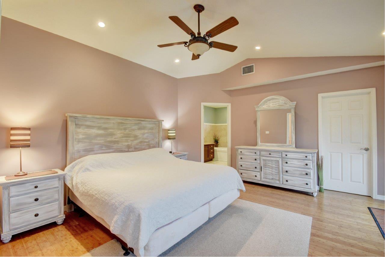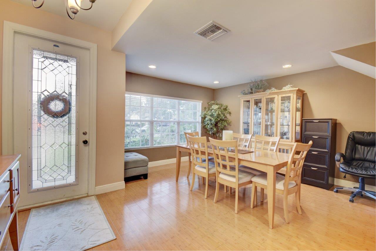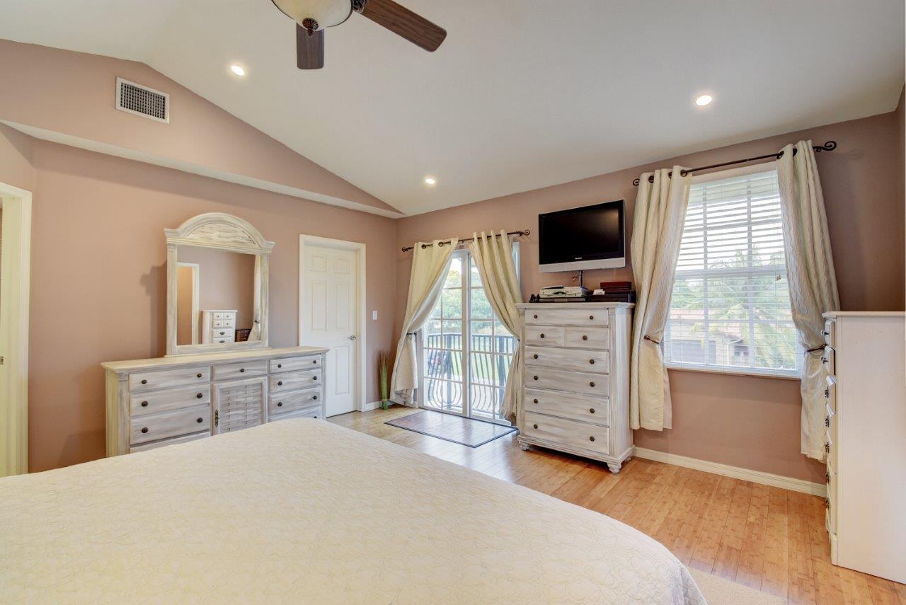 Gorgeous 3 bedroom 3 full baths, plus den, beautiful large & open newer kitchen, grantie counters, stainless steel appliances, 2 master suites, the entire upstairs is a master suite. Master suite upstairs has vaulted ceiling, real wood bamboo floors, his and her separate granite vanities, separate shower & tub & large walk-in closet. Plus a master suite downstairs with full bathroom, large walk-in closet. Very nice laminate bamboo floors thru-out downstairs. Large open living room to open kitchen great for entertaining & large dining room. Home has high impact PGT windows for all opens & garage door is hurricane proof. Plus, closed cell spray foam insulation entire home. Great location east Boca and great schools.