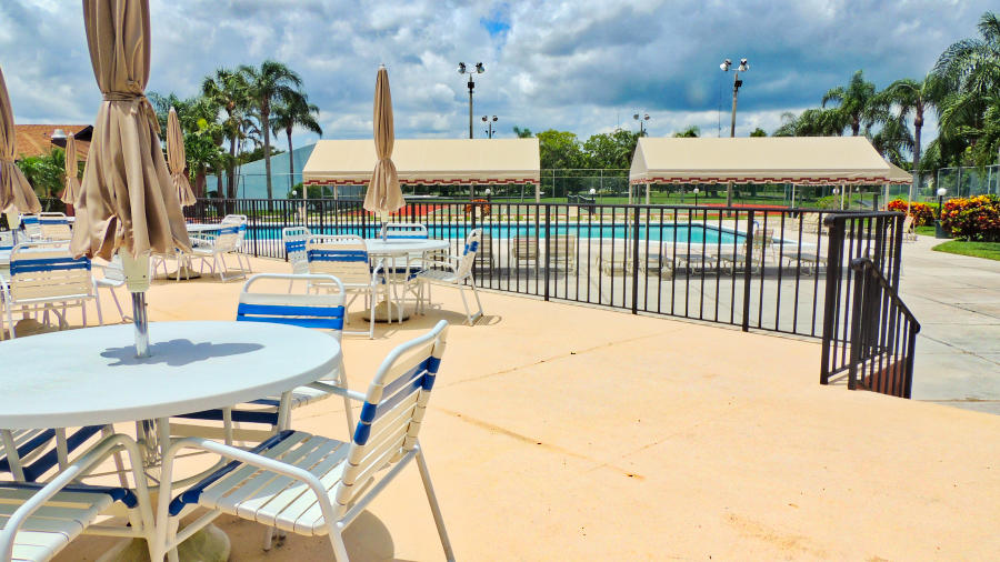 :Lovely meticulously maintained 2BR/2BA 1-story villa with split bedrooms & 1-car gar. Beautifully kitchen w/granite countertops (undermount sink) stainless appliances including the desirable French door refrigerator custom maple cabinets w/many features. Attractively updated guest bath w/wooden cabinet. Striking tile in the kitchen, bath, foyer and hall. The great room includes sky lights for a bright and charming atmosphere. There is also a spacious screened patio private fenced back yard. Every attention to detail has been taken to keep this home in pristine condition...shows like a model. Association amenities include: heated Olympic pool; tennis courts; gym game rooms at rec center; pets permitted. This quiet neighborhood is convenient to airport, highways , shopping and beaches.