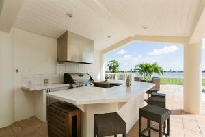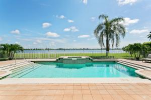 Contemporary elegance with a dreamy wide water view!Premium views abound from this spacious open plan home in Presidential Estates at the new Banyan Cay Golf Club right in the heart of West Palm Beach. This home is built for entertaining with generous open spaces and a 70' loggia complete with summer kitchen overlooking the wide pool and spa.This home sits on over a half acre and offers 4 bedrooms, 3 1/2 bath, an office plus a sitting room off of the master suite. The living areas are bright and open with high vaulted ceilings, limestone flooring and a wall of windows to take in the views.