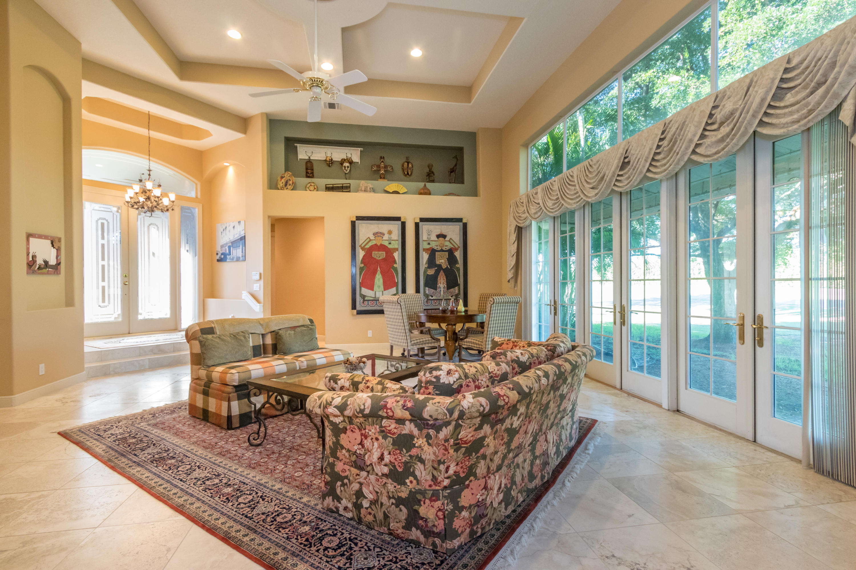 Extremely motivated seller, please bring offers.Spacious Courtyard home on the Golf Couse at the five star Boca Grove Plantation Club. Enter through a magnificent and spacious courtyard with exotic gardens and free form resort style pool. Home features large guest house with a full bedroom, living room and full bathroom. Stroll to the main house through etched double glass doors leading to a grand foyer entrance. Your view from the foyer is the open floor plan, high coffered ceilings, and beautiful golf course views behind the French doors. The extra large master suite has THREE WALK-IN CLOSETS, a sitting area and a totally updated very spacious marble and exotic stone master bath. Bedrooms two, three, and four all have on suite bathrooms, and plenty of closet space.