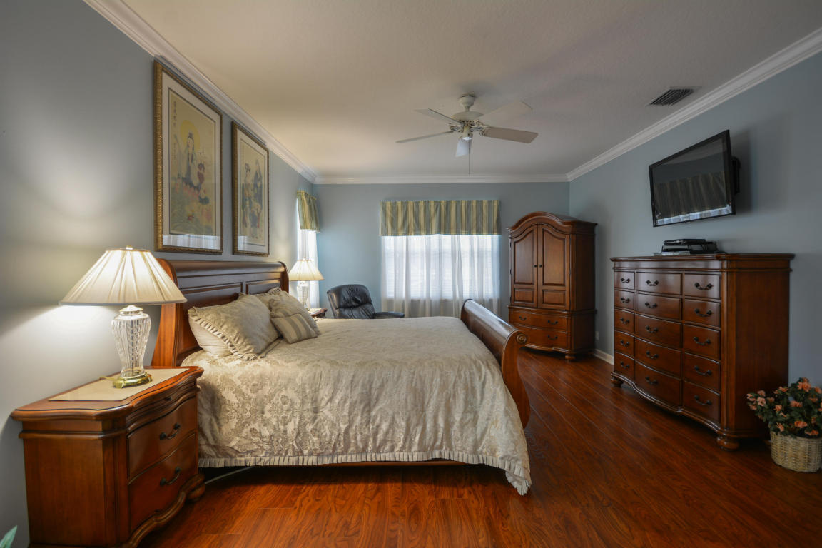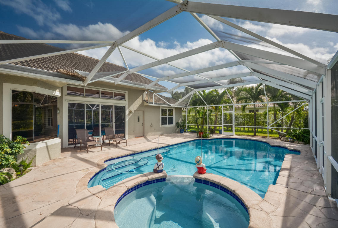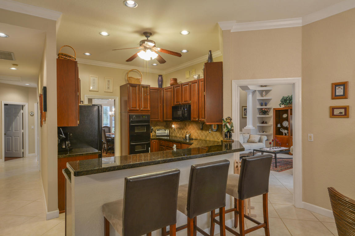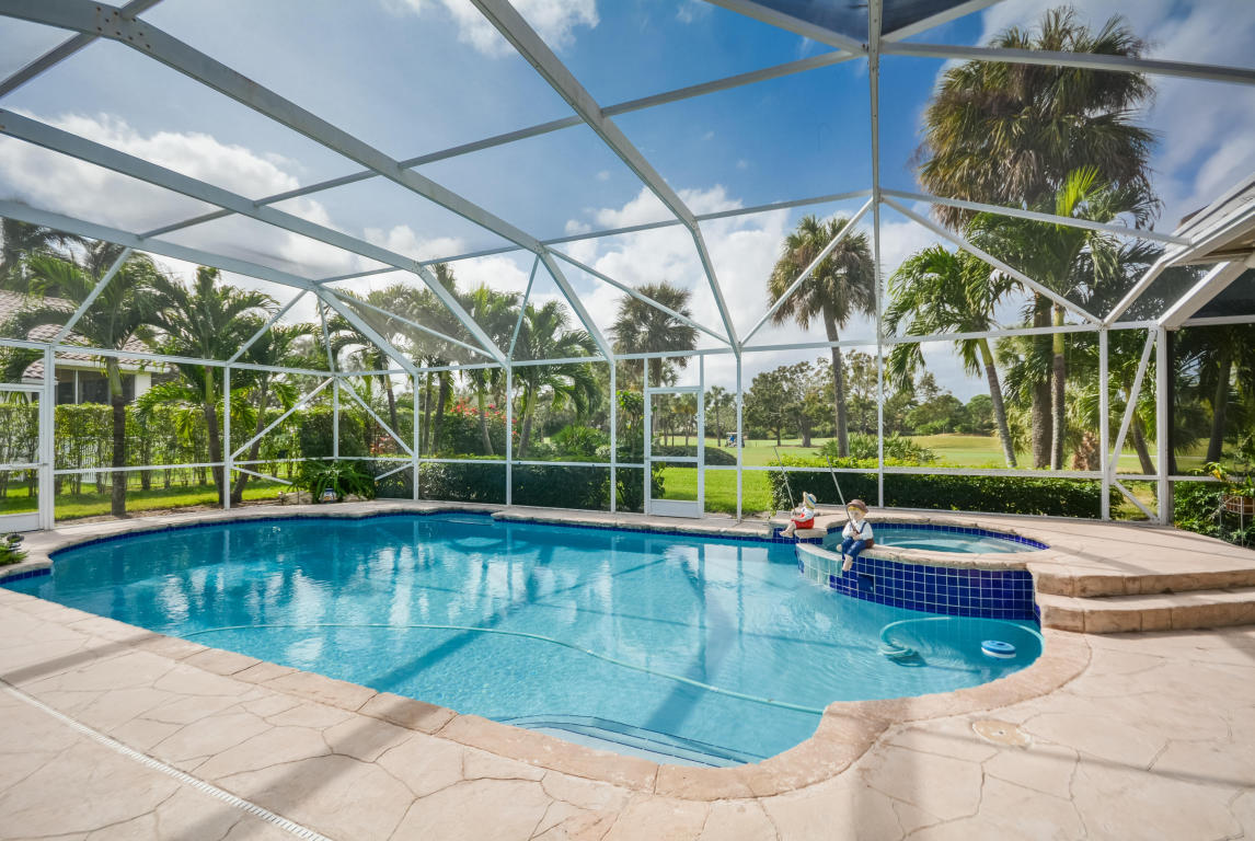 DEAL FELL THRU! Owner Motivated & Ready to Move! Breathtaking golf views from this incredible mint condition home! Manned gated community, with oversized beautifully landscaped lot on 6th hole of Bear Lakes CC, long drive way on cul-d-sac. Perfect floor plan, located minutes from the club, new outlet mall, city place and airport. Own an estate home without mandatory golf membership! Choice is yours! Owner has upgraded beautifully, custom open kitchen w/ granite, spacious family room, stone tile floors, office, home theater w/surround sound, custom built ins. Crown molding. Stunning heated screened in pool and spa with covered lanai. Cabana bath. Perfect for those sunset parties! Solar water heater, newer roof, too many upgrades to mention.