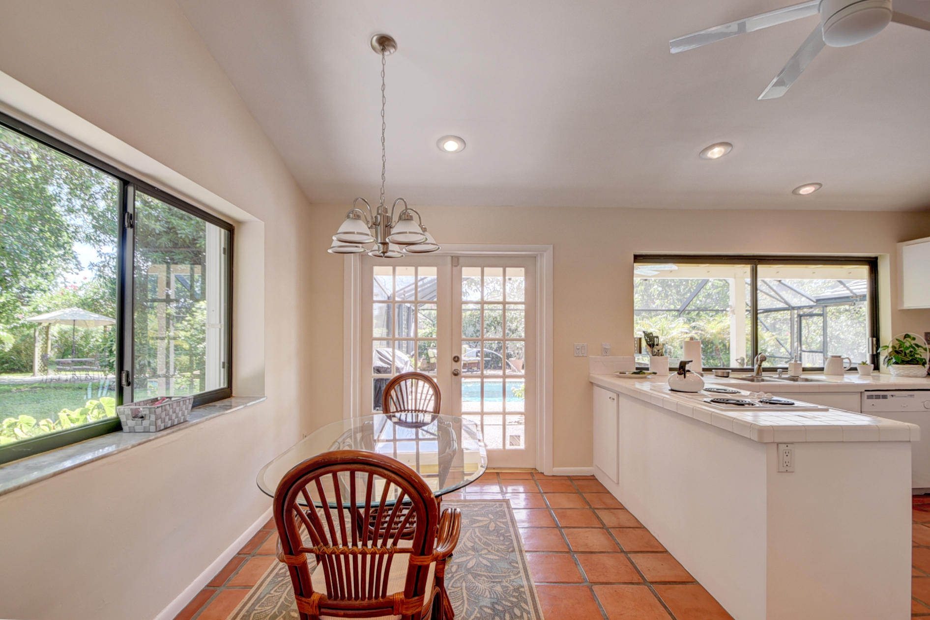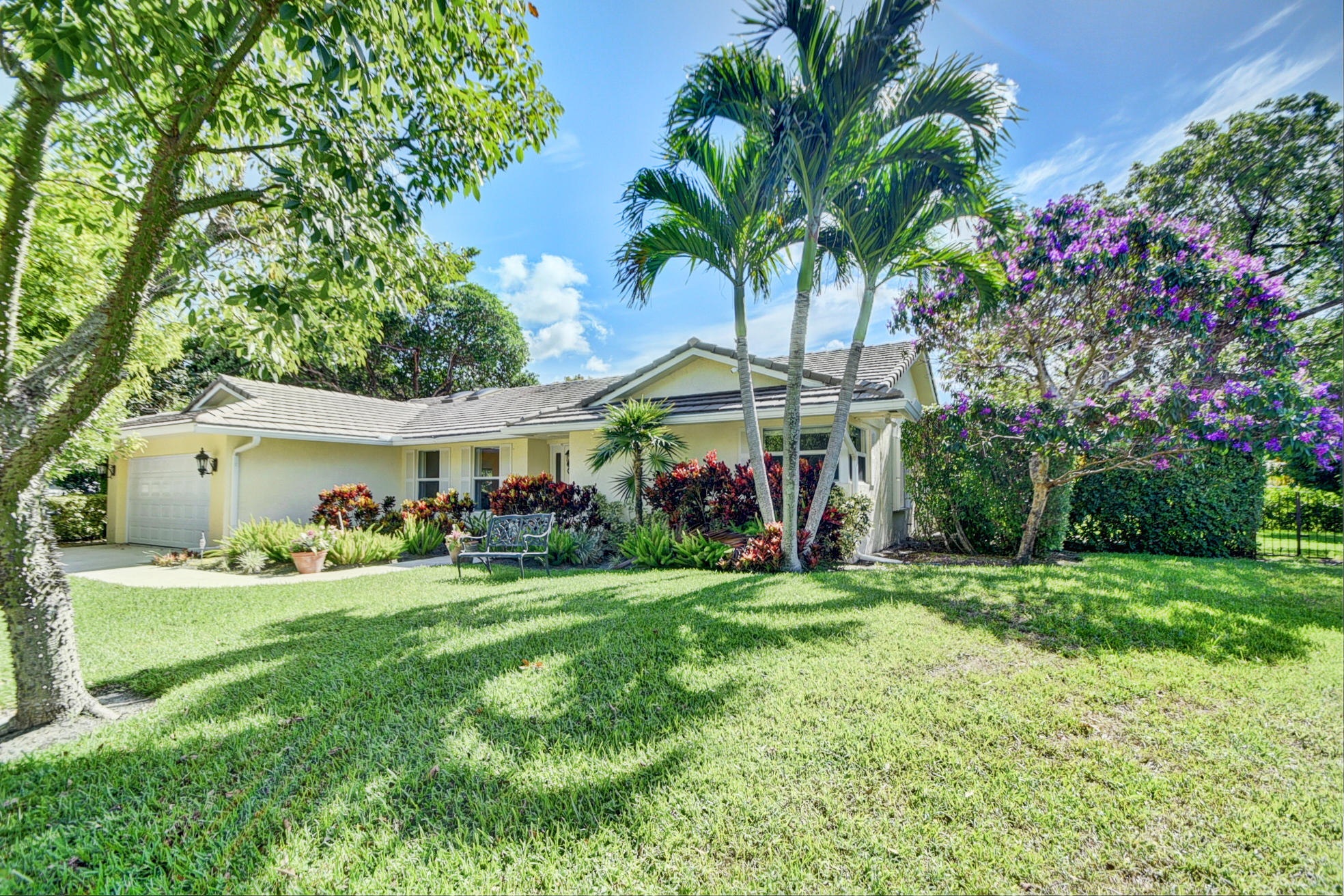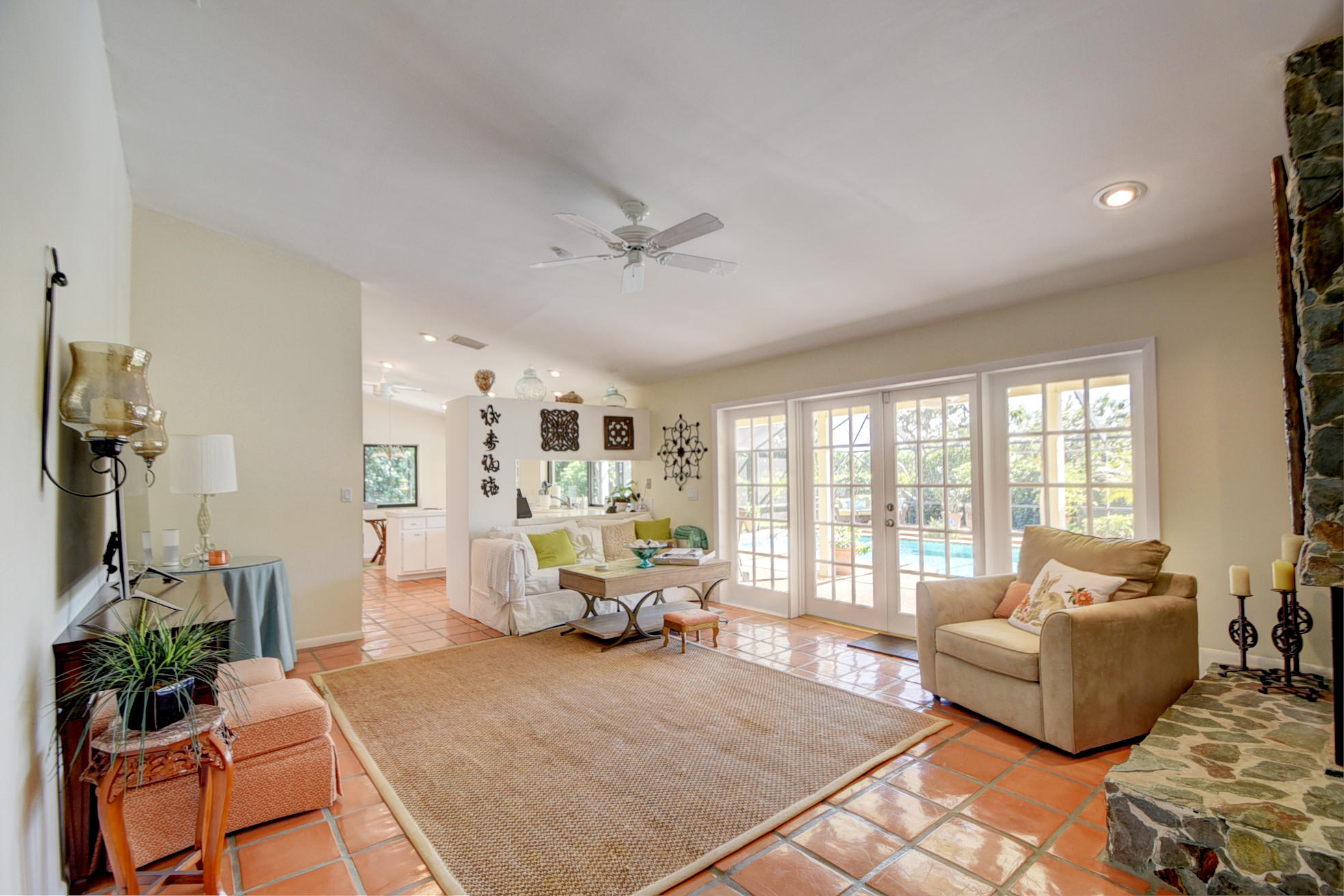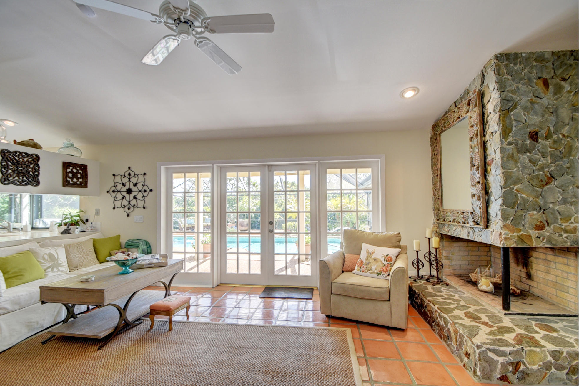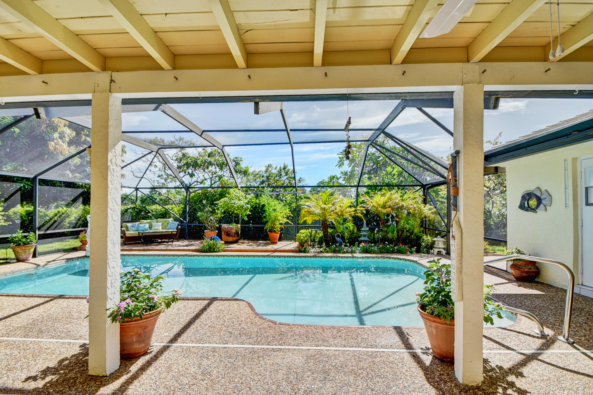 Nestled in a tree lined cul-de-sac is this beautiful 3 bedroom/2.5 bathrooms one story cottage surrounded by exotic fruit trees and flowering bushes. The oversized lot provides total privacy and serenity while backing up to a canal with no rear neighbors. The fenced yard has lush ground spaces, meditation station, run around and play areas as well as delicious fruit trees that abound with fruit. Delight in the enclosed screened in pool area with covered lounge spaces that access the social areas of the home through French doors leading to the family room, kitchen and breakfast area. Large picturesque windows and cozy spaces dress this lovely home with warm Mexican tile floors and carpet in the bedrooms. Skylights light up the formal dining areas and volume ceilings brighten up...