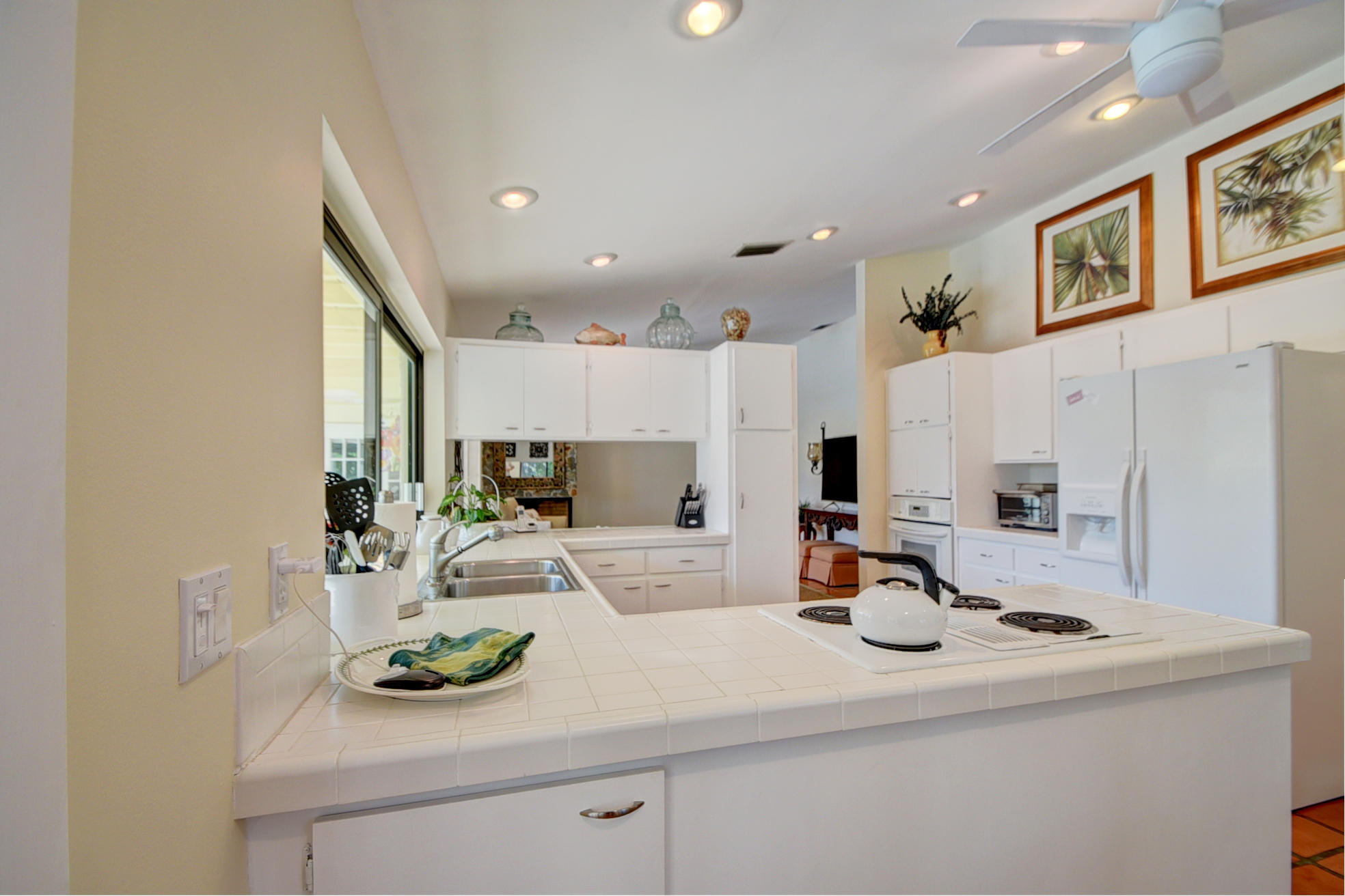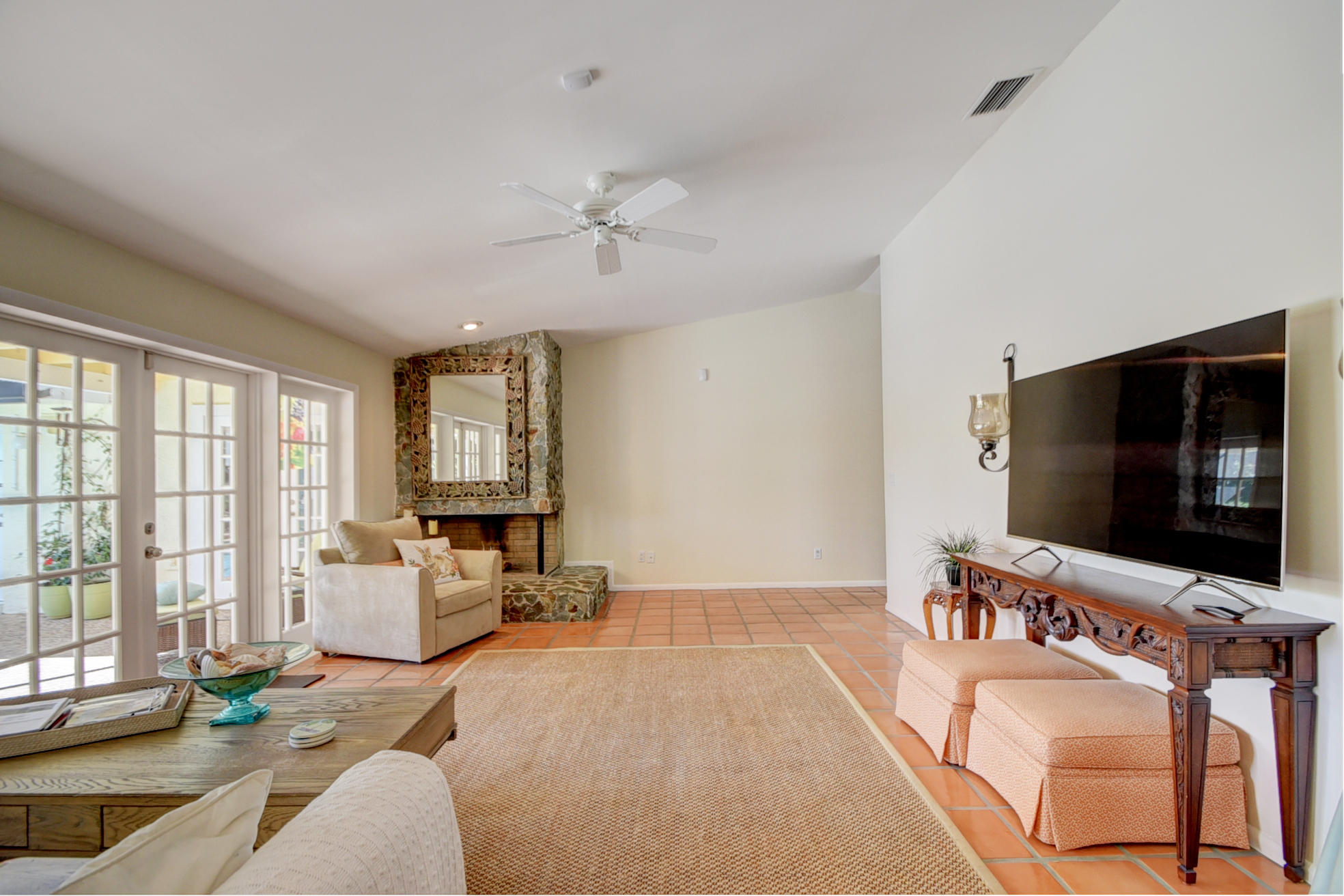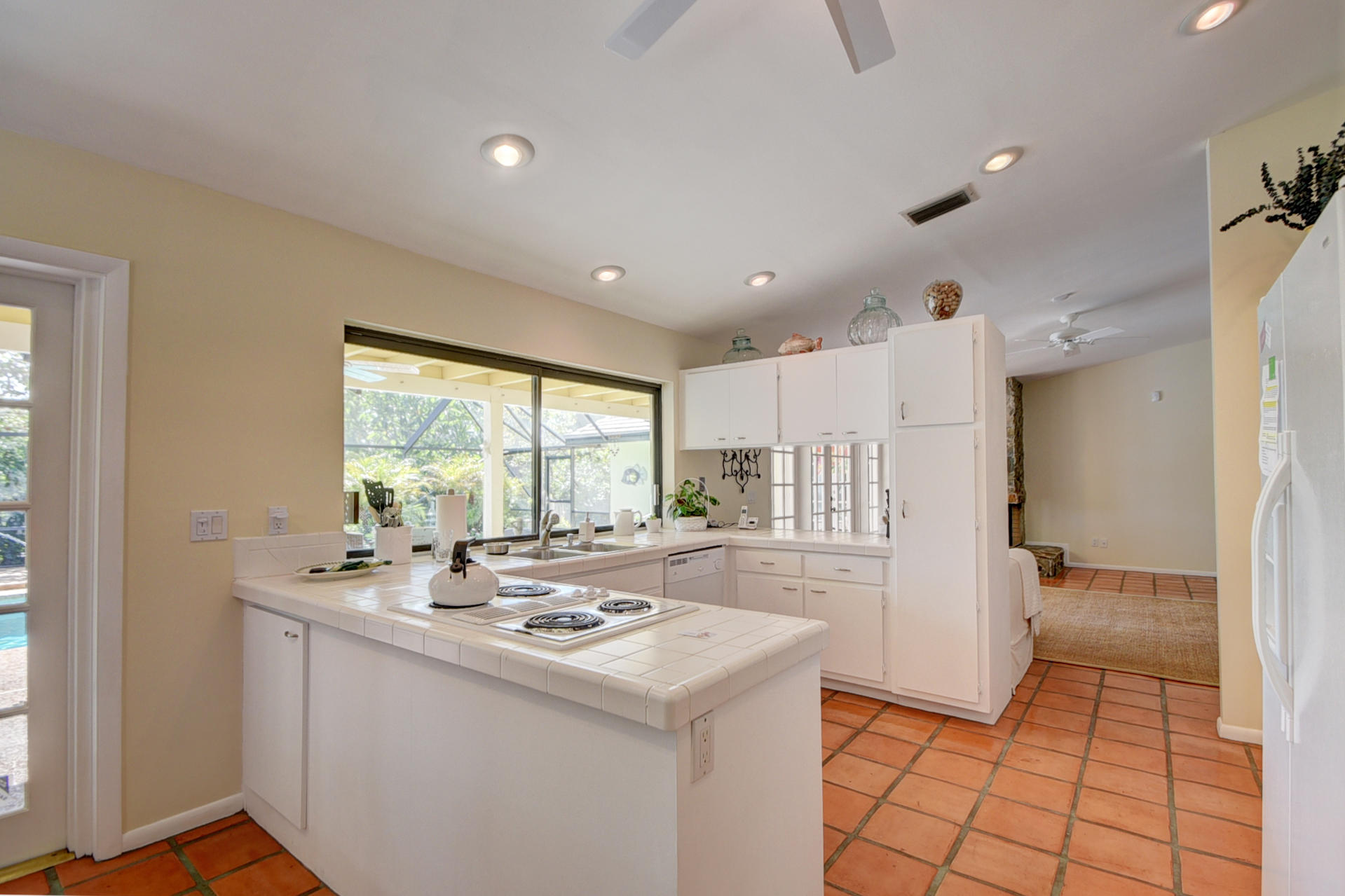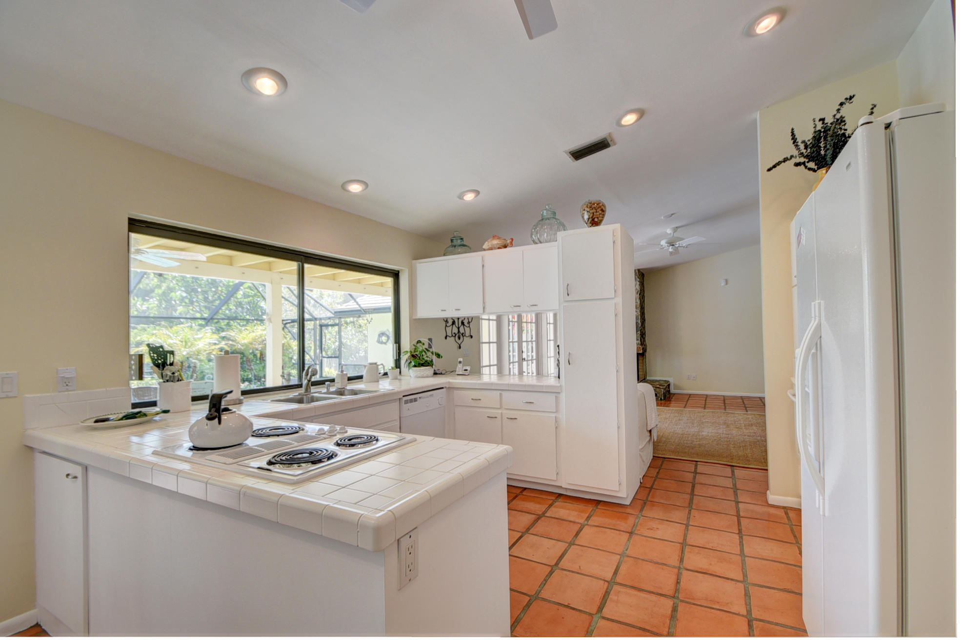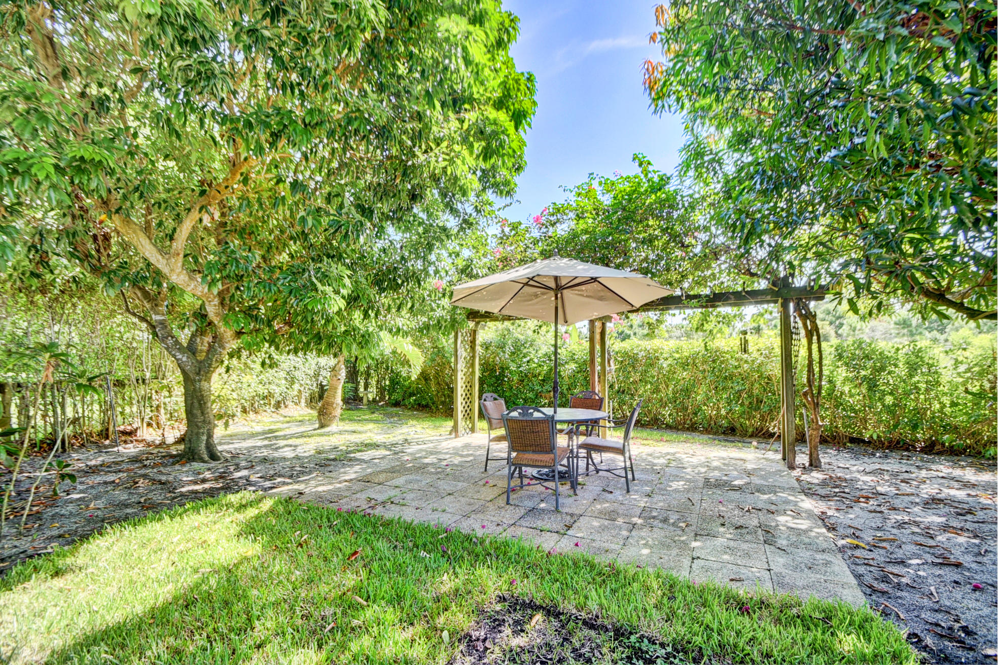 Nestled in a tree lined cul-de-sac is this beautiful 3 bedroom/2.5 bathrooms one story cottage surrounded by exotic fruit trees and flowering bushes. The oversized lot provides total privacy and serenity while backing up to a canal with no rear neighbors. The fenced yard has lush ground spaces, meditation station, run around and play areas as well as delicious fruit trees that abound with fruit. Delight in the enclosed screened in pool area with covered lounge spaces that access the social areas of the home through French doors leading to the family room, kitchen and breakfast area. Large picturesque windows and cozy spaces dress this lovely home with warm Mexican tile floors and carpet in the bedrooms. Skylights light up the formal dining areas and volume ceilings brighten up...