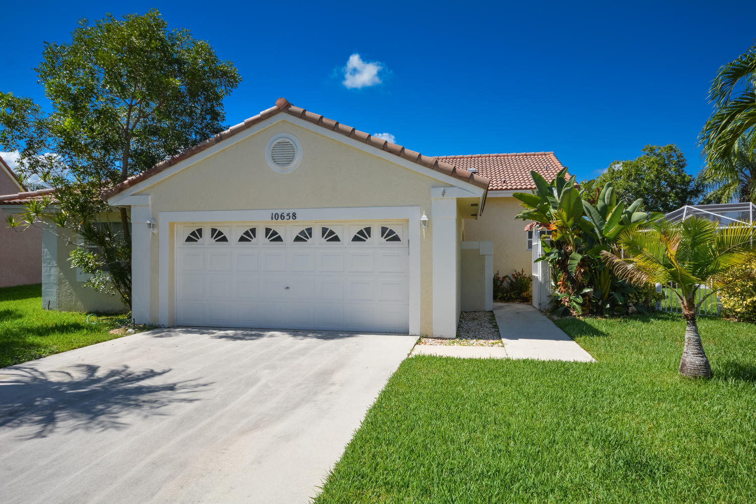 3/2 sited on a lake lot with a large side yard. Room for pool! Light and bright w/beautiful lake views. Roof has been replaced.Split floor plan. Screened lanai to enjoy watching nature lakeside. Excellent schools minutes away. Wonderful community with low HOA and fantastic recreation center. Close to great schools, houses of worship and South County Park. Rec center offers, pools, playgrounds, tennis, bball, picnic and bq pavilion, fitness center with manager on site. All room sizes approximate. HOA includes Cable & HBO.