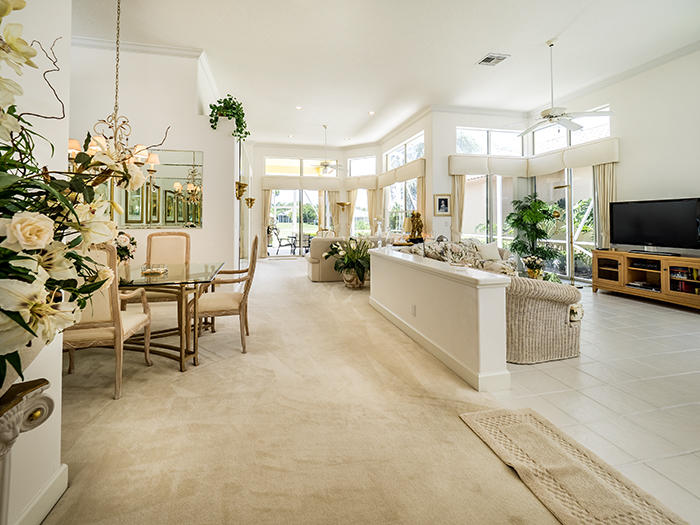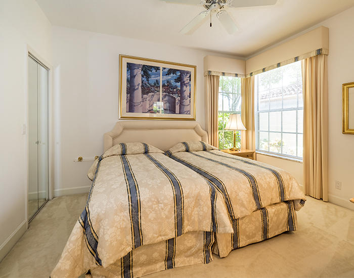 Light, bright, open, upgraded and turnkey! Enjoy this great room plan 2BR/3BA+Den with 2-YEAR-NEW ROOF! Stainless refrigerator, dramatic southern views of the esteemed Heritage course. Fabulous windows overlooking the dramatic view and large screened patio. This home is furnished in neutral tones and is being offered turnkey. A wonderful value located within walking distance of Ibis's fine amenities.
