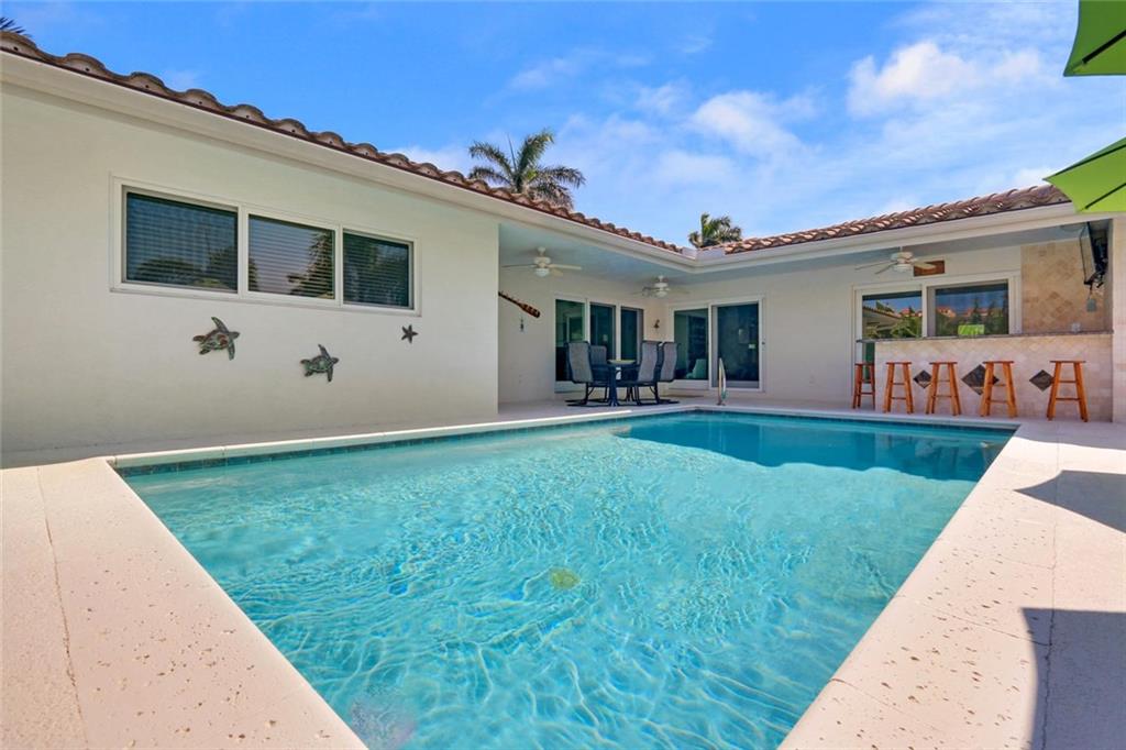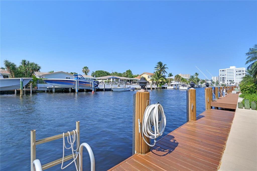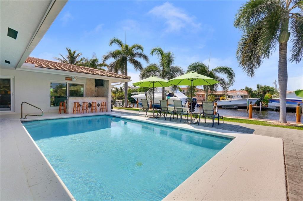 Amazing opportunity to own this gorgeous 3 bed / 2.5 bath, waterfront home. Only 1 mile to the Hillsboro Inlet with no-fixed bridges. This home sits on 80' of waterfront with Intracoastal views and has a newer dock and seawall with a boat lift that can hold up to 20,000 lbs. This amazing home also has impact windows and doors throughout, along with a newer tile roof that was installed in 2010. Outside is a great outdoor living area including a sparking pool, natural gas grill and eating area.