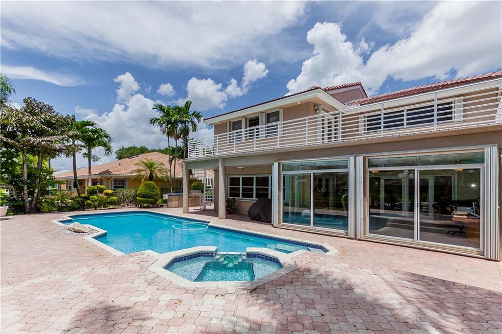 NEW ROOF/STAIR CASE 4/3 home w/ lake, oversized pool 40X14 , corner lot w/ high ceilings. Home upgrades: New designers wood kitchen cabinets, granite counter tops, new stainless steel appliances, LG 3 door refrigerator, Maytag front loader W/D, 3 A/C's, 18x40 pool & jacuzzi, built in bbq w/ 500 gallon tank. Large master with private balcony, rear Four Season enclosed patio, accordian shutters, outside spiral staircase, basketball court, pavers, converted 1 car garage = playroom no HOA A + schools.