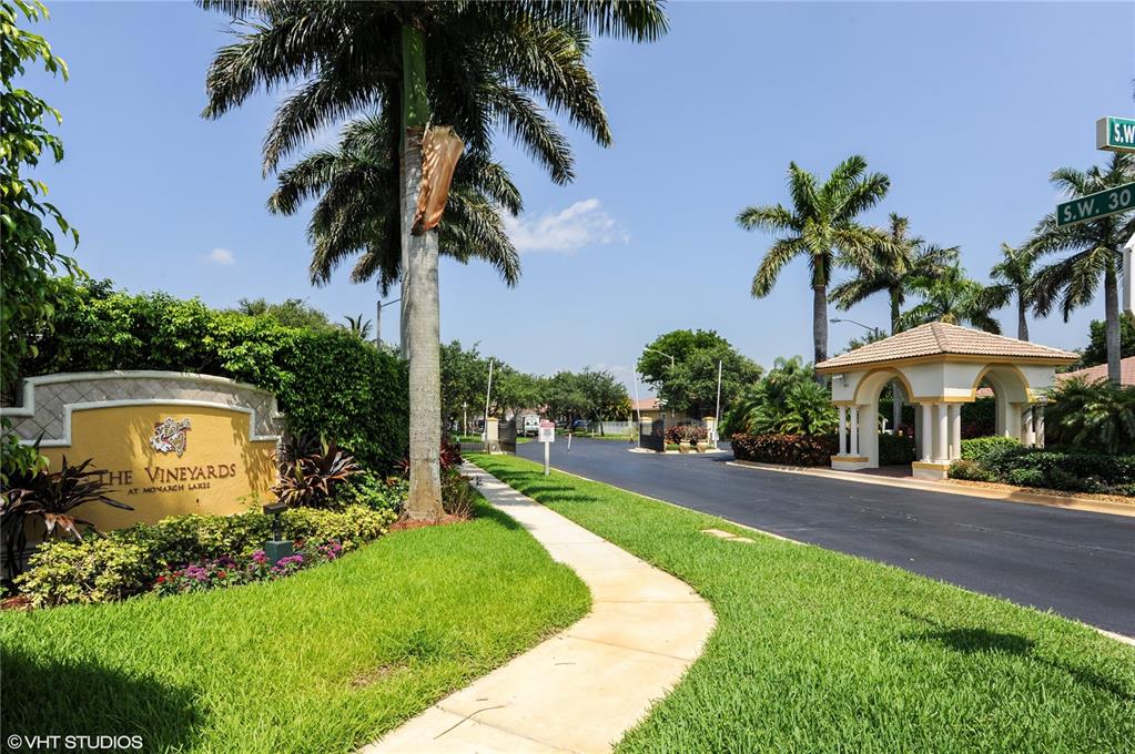 BACK ON THE MARKAT ,GATED, DESIRABLE MONARCH LAKES VINEYARDS, A+ SCHOOL DISTRICT, NEAR SHOPPING, HOSPITALS, , MALL, RESTAURANTS, TURNPIKE & I75 EXPRESS. 2 STORY HOME, WITH LIV/DINING ROOM COMBO, DEN WITH A SLIDING DOOR TO TERRACE, HUGE KITCHEN WITH NEWER CABINETS, GRANITE COUNTERTOP AND STAINLES STEEL APPLIANCES, CENTER ISLE, MASTER BEDROOM SUITE, HALF BATH, LAUNDRY ROOM, 3 CAR GARAGE, UPSTAIRS , FAMILY BATH WITH GRANITE. COMPLETED UPDATED,EXTER ,BONUS RM..