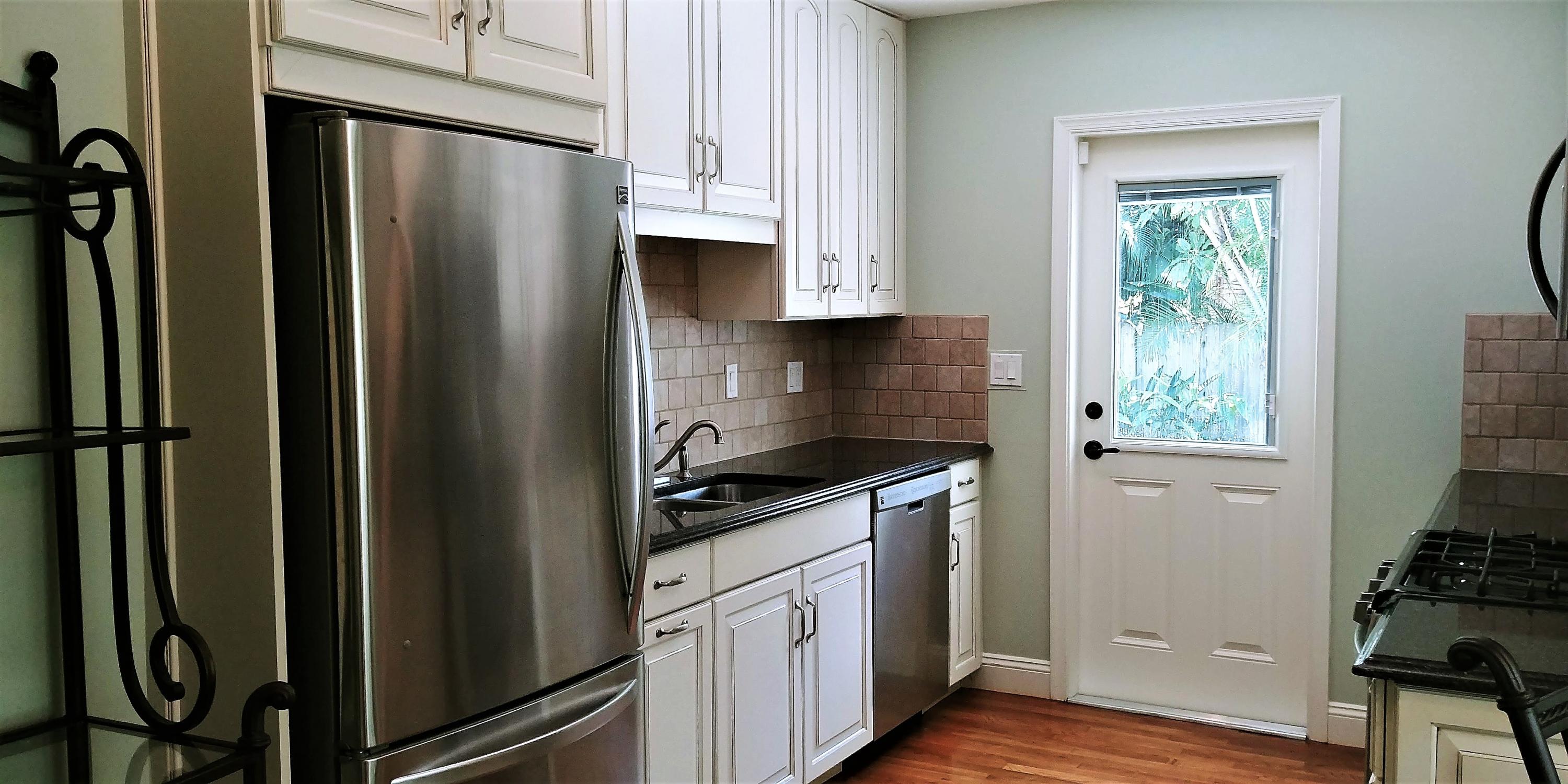 This 1949 cottage, in historic Sunshine Park, has been meticulously renovated by the current owners. No expense was spared or corner untouched during the 2012 remodel. Nearly EVERYTHING on the interior & exterior has been replaced or refurbished: New roof, impact windows and doors, new electric panel & wiring, new plumbing, new HVAC & ducts, reverse osmosis water system, gas tankless water heater, gas range, new washer/dryer, spray foam insulation in attic & underside of floors. Completely remodeled eat-in kitchen with 42-inch wood cabinets, granite counters, tumbled tile backsplash, and new stainless steel appliances. Solid wood flooring throughout, with tile in the bathroom. Relax on the oversize covered front patio or entertain in the spacious, fenced-in, back yard.
