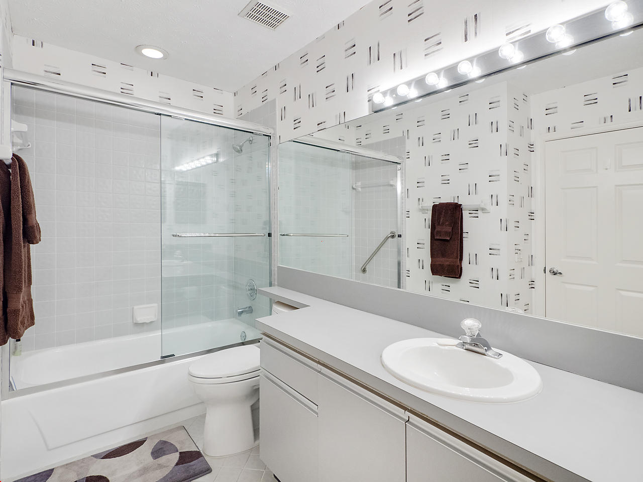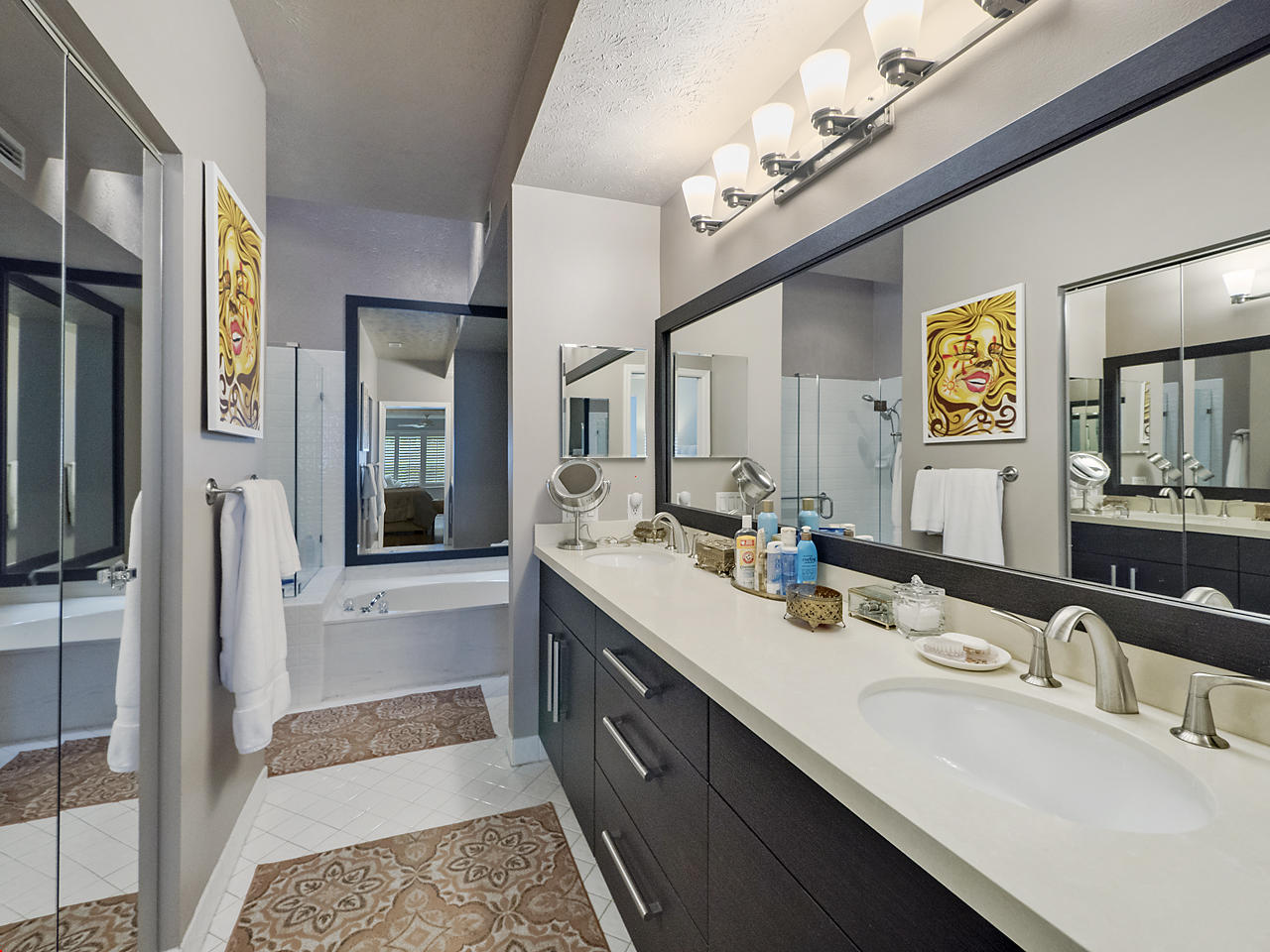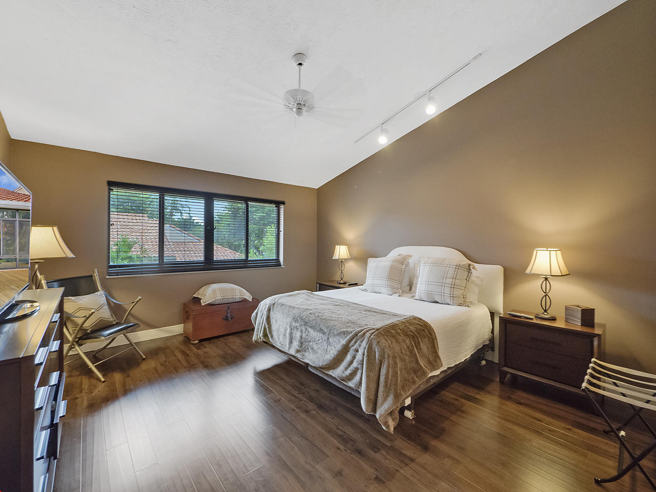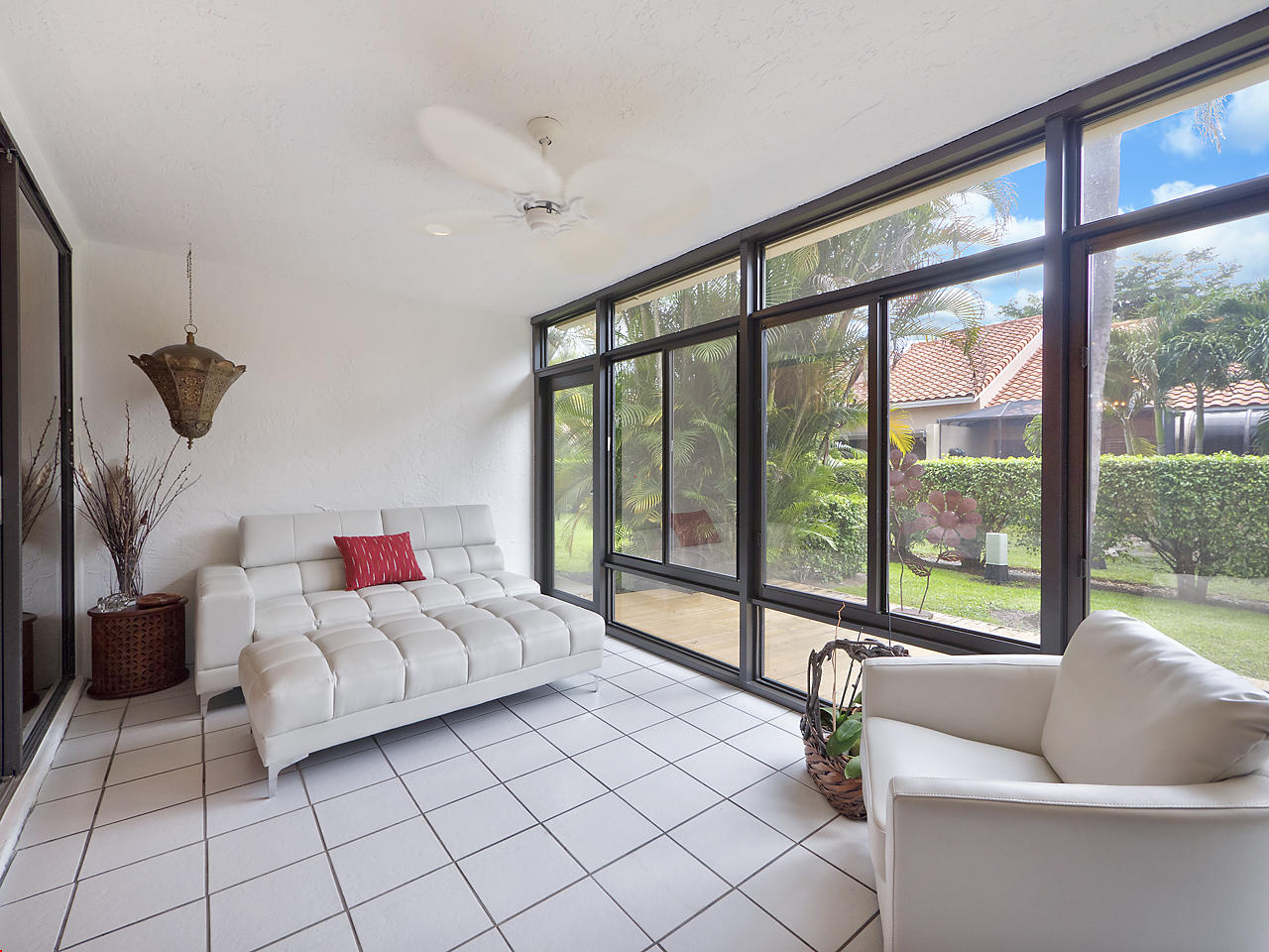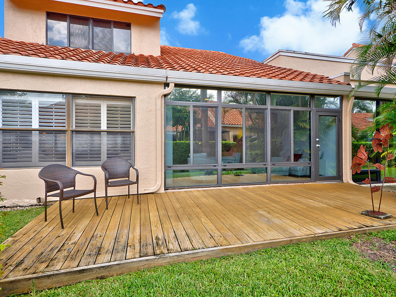 UPGRADED TOWNHOME WITH 2 MASTER SUITES (1 UP/1 DOWN), DEN/3RD BEDROOM. (10X17 SUNROOM NOT INC. IN SQ.FTG.) THE DOWNSTAIRS MASTER (15X26) HAS BEEN EXPANDED WITH A SITTING AREA & EXTRA CLOSET. 3 FULL BATHS. LIKE-NEW UPDATED EAT-IN KITCHEN W/GRANITE COUNTERS/TUMBLED MARBLE BACK-SPLASH/2 PANTRIES/CROWN MOLDING. PTLY UPGRADED BATHS, ENGINEERED WOOD/LAMINATE/TILE FLRS. OVER-SIZED LIVING ROOM W/WALL TO WALL GLASS & VAULTED CEILING. SUNROOM & UP B/R APPEARS 2B IMPACT GLASS. 1C GARAGE & DBL WIDTH DRIVE, NEWER W/DRYER, 4 TON A/C 2012. PLANTATION SHUTTERS/5'' BASEBOARDS. BEAUTIFUL BACKYARD WITH 25' DECK. HOA INC. PTNG/ROOF/CABLE/INSURANCE/ALARM/GUARD-GATE/HTD POOL. 40LB PET OK. ROOF 2007. ALL SIZES/DATES/CONTENTS SUBJ TO VERIF. OPTIONAL CLUB MEMBERSHIP AVAIL. TO ''THE CLUB @ BOCA POINTE''
