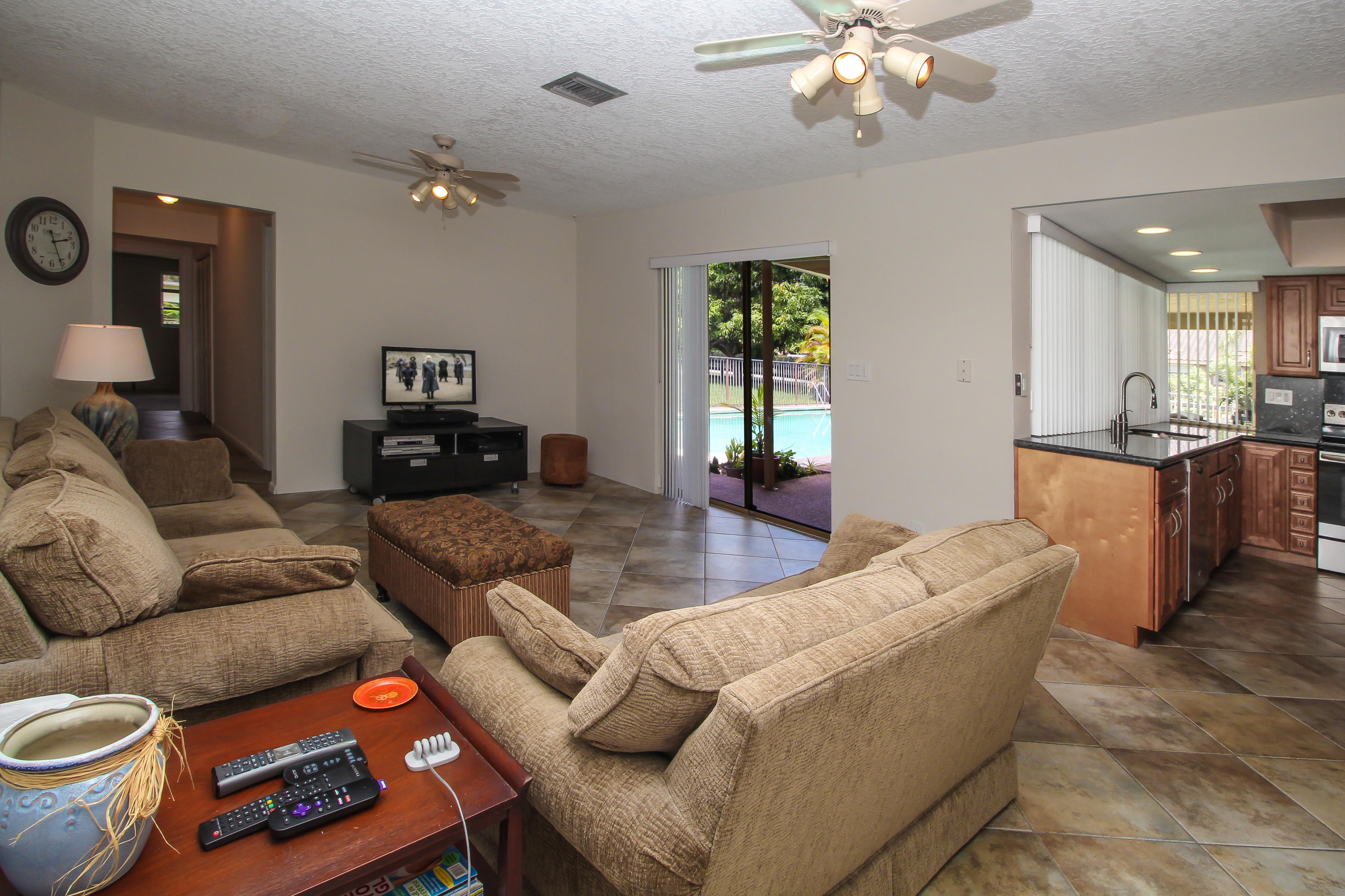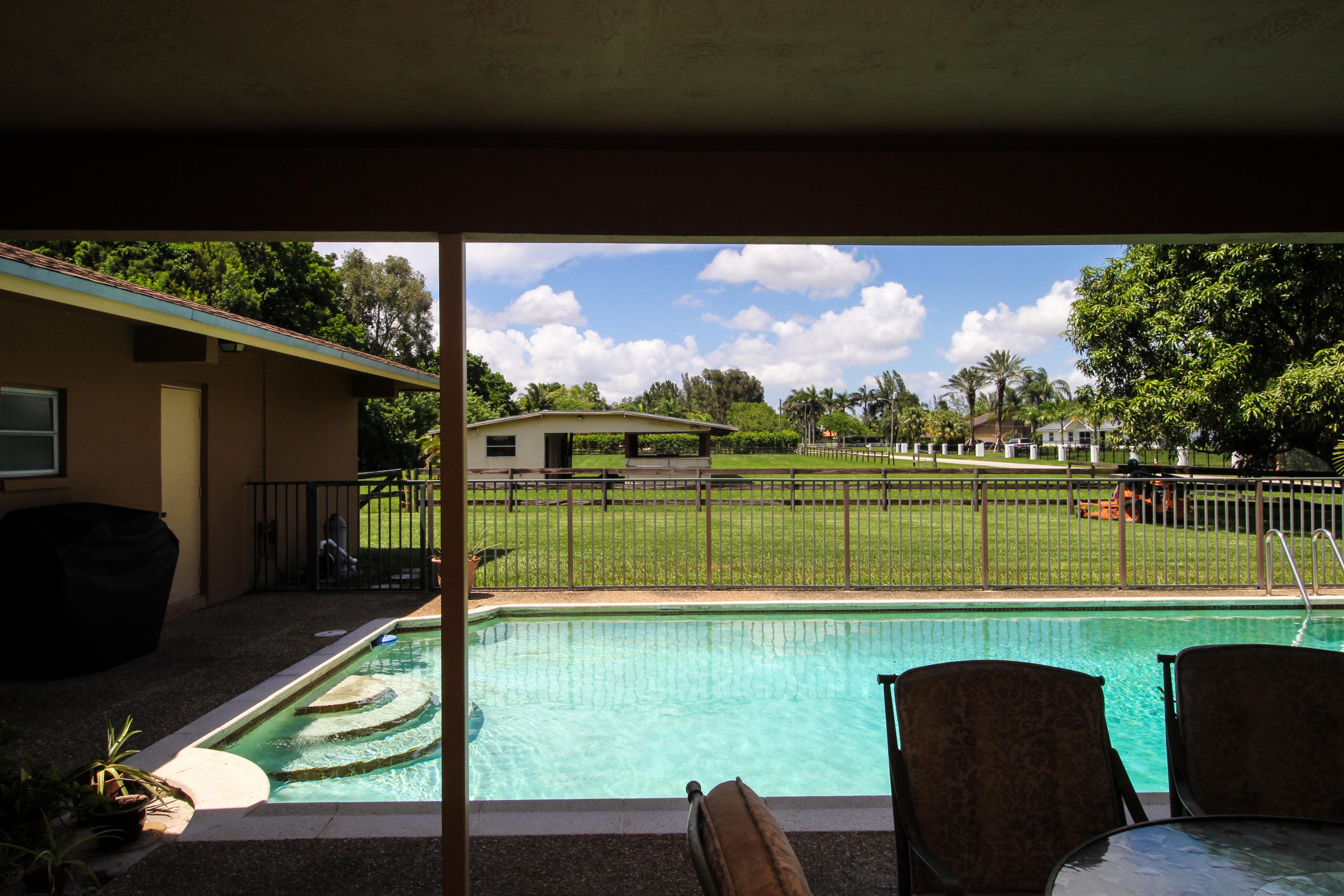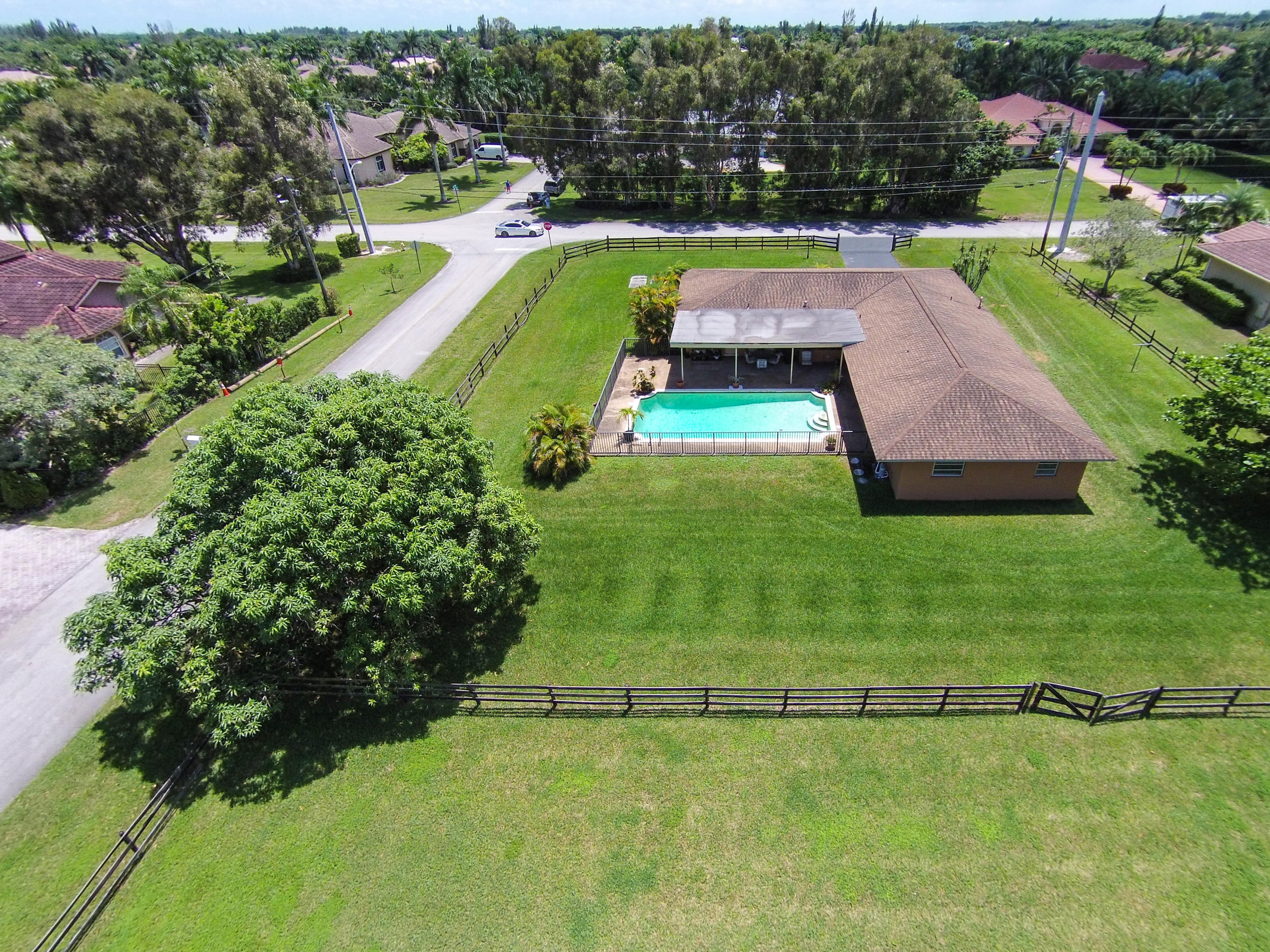 INCREDIBLE OPPORTUNITY IN PLANTATION ACRES!!! 5/2 home on a builders acre nestled amongst million dollar homes and celebrity neighbors. Split floor plan featuring a large and open remodeled kitchen with granite counters & backsplash, wood cabinetry and breakfast bar. With a covered patio framing a 17x35 pool, you'll be able to look out across your massive backyard to the 1250 sq ft stable with separate tack and feed rooms. Second adjoining acre also for sale if desired, making this an ideal property for new construction of a dream estate in the heart of Plantation Acres. Minutes from I-75, so commuting to anywhere in South Florida is a breeze. Italian porcelain tile in all tiled areas.* Measurements are approximate. Please see Floor plan/Building Sketch for details.