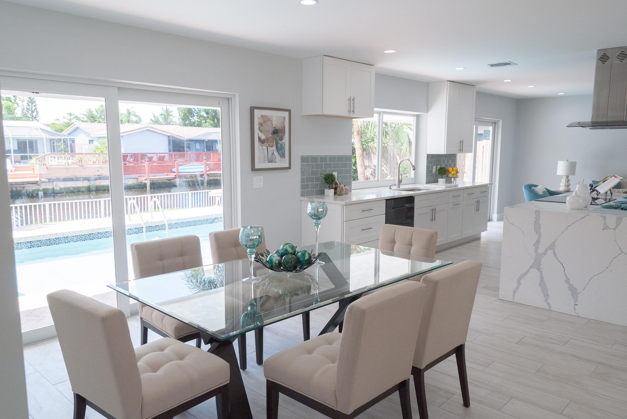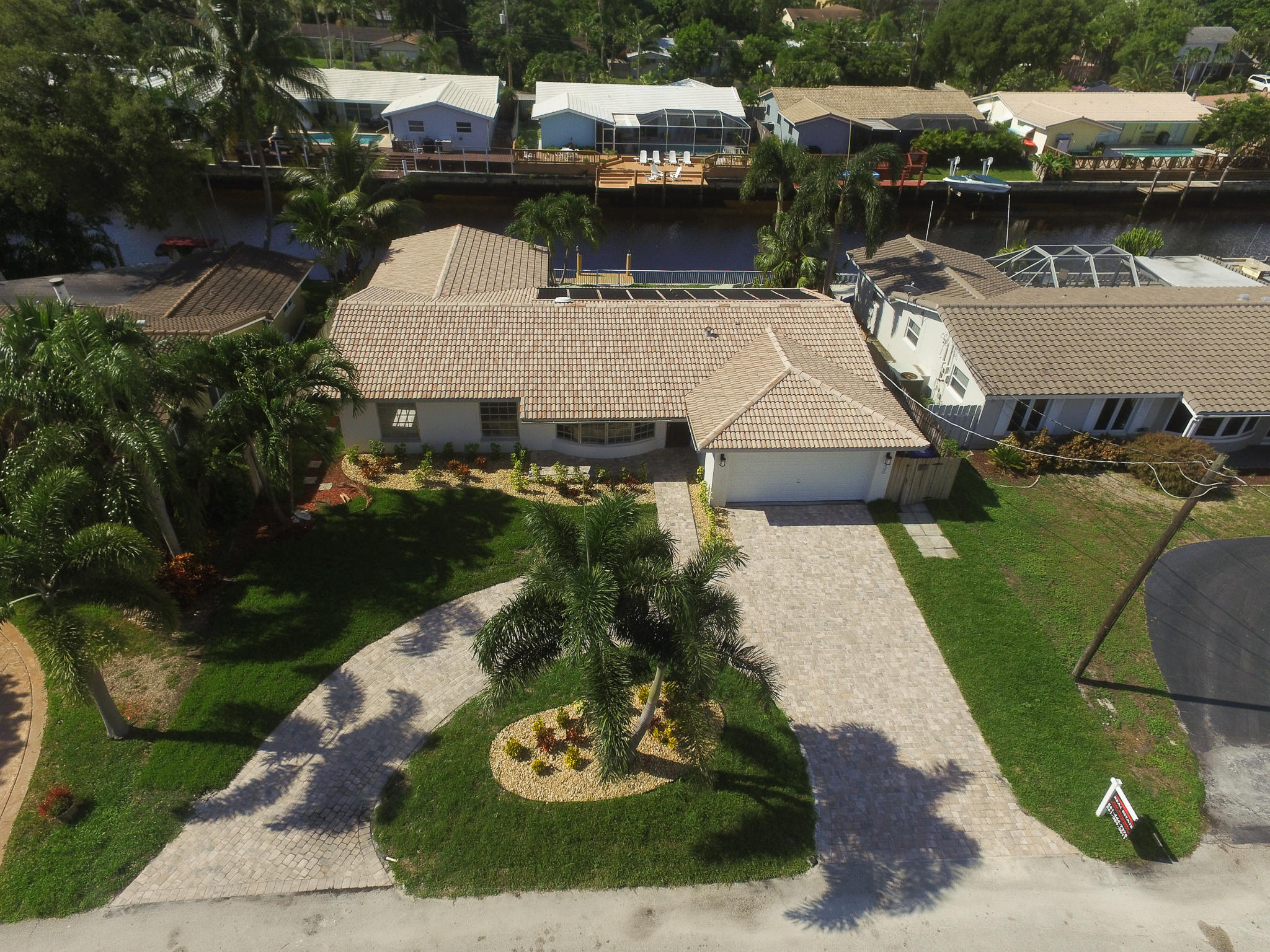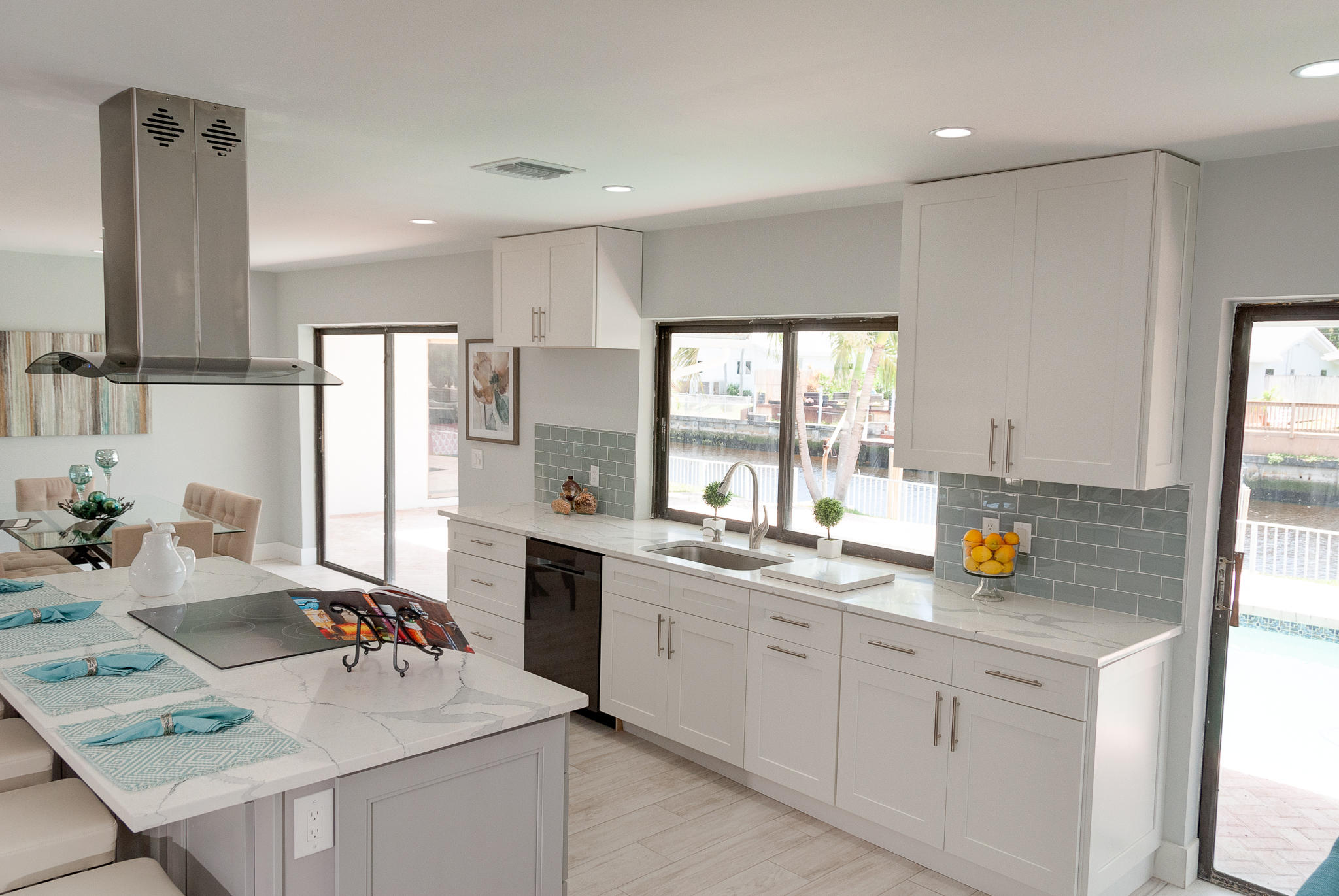 Welcome to Coral Ridge Isles! This is a must see 4 bedroom 3 bath open concept impeccably remodeled home. .Home features direct ocean access and its own dock, porcelain plank flooring throughout, custom designer kitchen with all wood cabinets and wall to wall pantries with waterfall quartz countertops, dark stainless steel appliances, impact windows and doors, custom tile work and frameless shower enclosures in all bathrooms, energy efficient LED lighting throughout, New Trane A/C and water heater as well as paver driveway and landscaping. Come make this your home. At this price it won't last long.