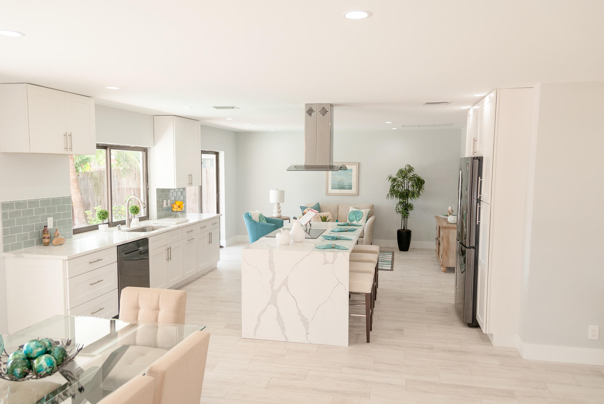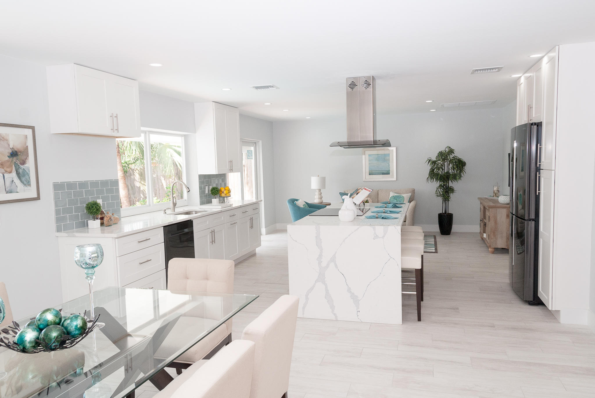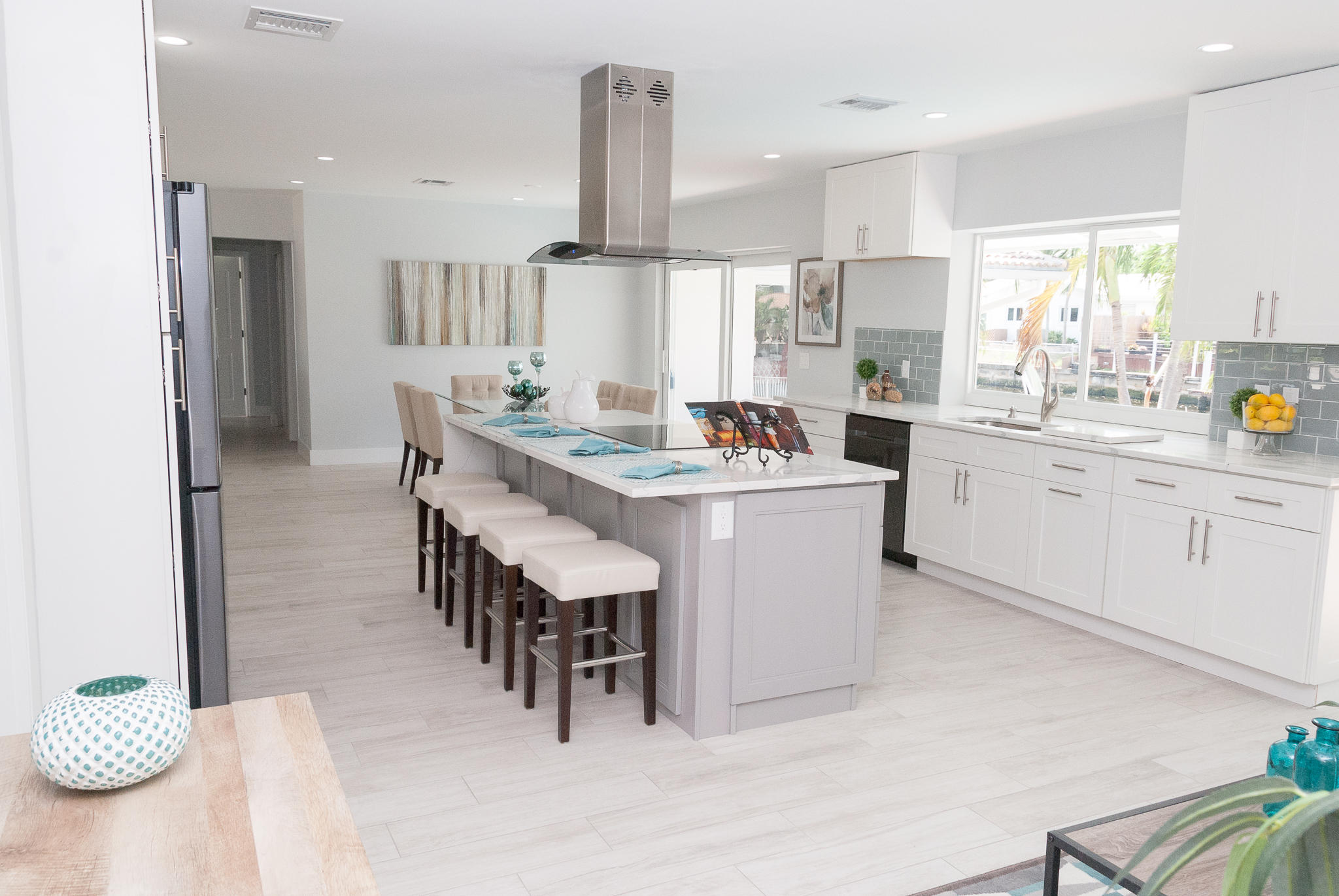 Welcome to Coral Ridge Isles! This is a must see 4 bedroom 3 bath open concept impeccably remodeled home. .Home features direct ocean access and its own dock, porcelain plank flooring throughout, custom designer kitchen with all wood cabinets and wall to wall pantries with waterfall quartz countertops, dark stainless steel appliances, impact windows and doors, custom tile work and frameless shower enclosures in all bathrooms, energy efficient LED lighting throughout, New Trane A/C and water heater as well as paver driveway and landscaping. Come make this your home. At this price it won't last long.