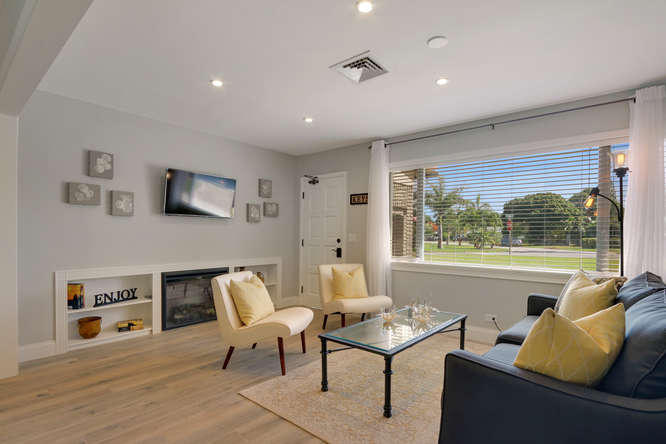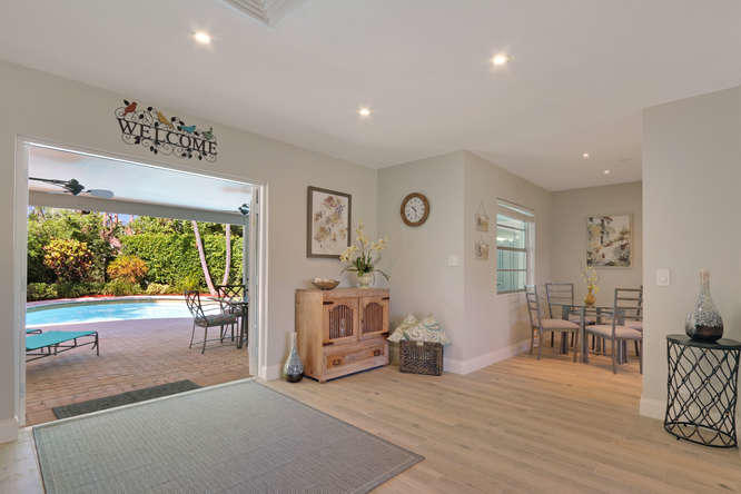 From the perfect positioning on the oversized corner lot this special home draws you into perfection that will not disappoint. All new kitchen, floors baths with designer touch. The open floor plan flows direct to an amazingly private pool oasis that completes this tropical setting for the most discriminating buyer. Turn key to fill the needs of a turn key business for a vacation rental or a grand new start for the buyer who wants to start over. Decorated and furnished from top to bottom by a local designer and can be offered unfurnished if needed. Cap all this with 3 blocks for the intracoastal for walking and jogging, minutes to downtown City Place and minutes to the airport. Positioning, charm and convenience makes this a true rare find for you.