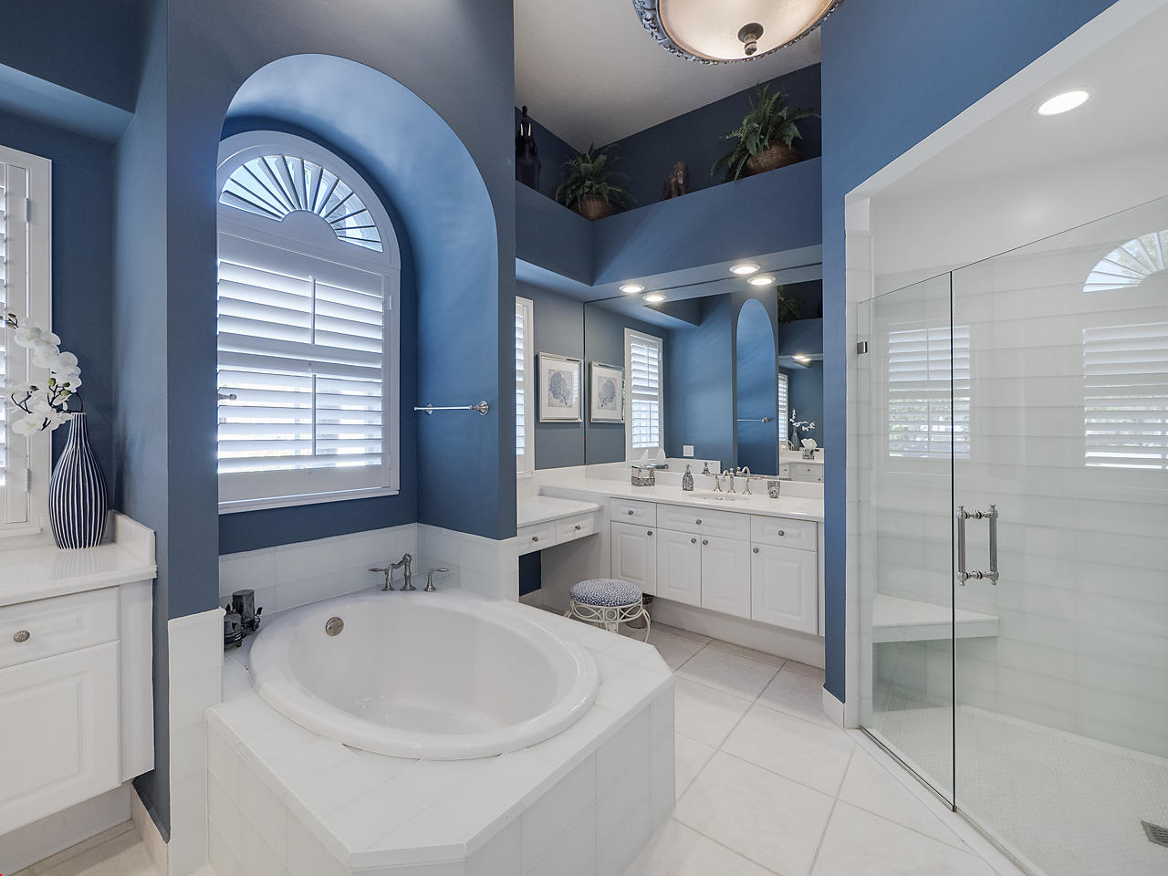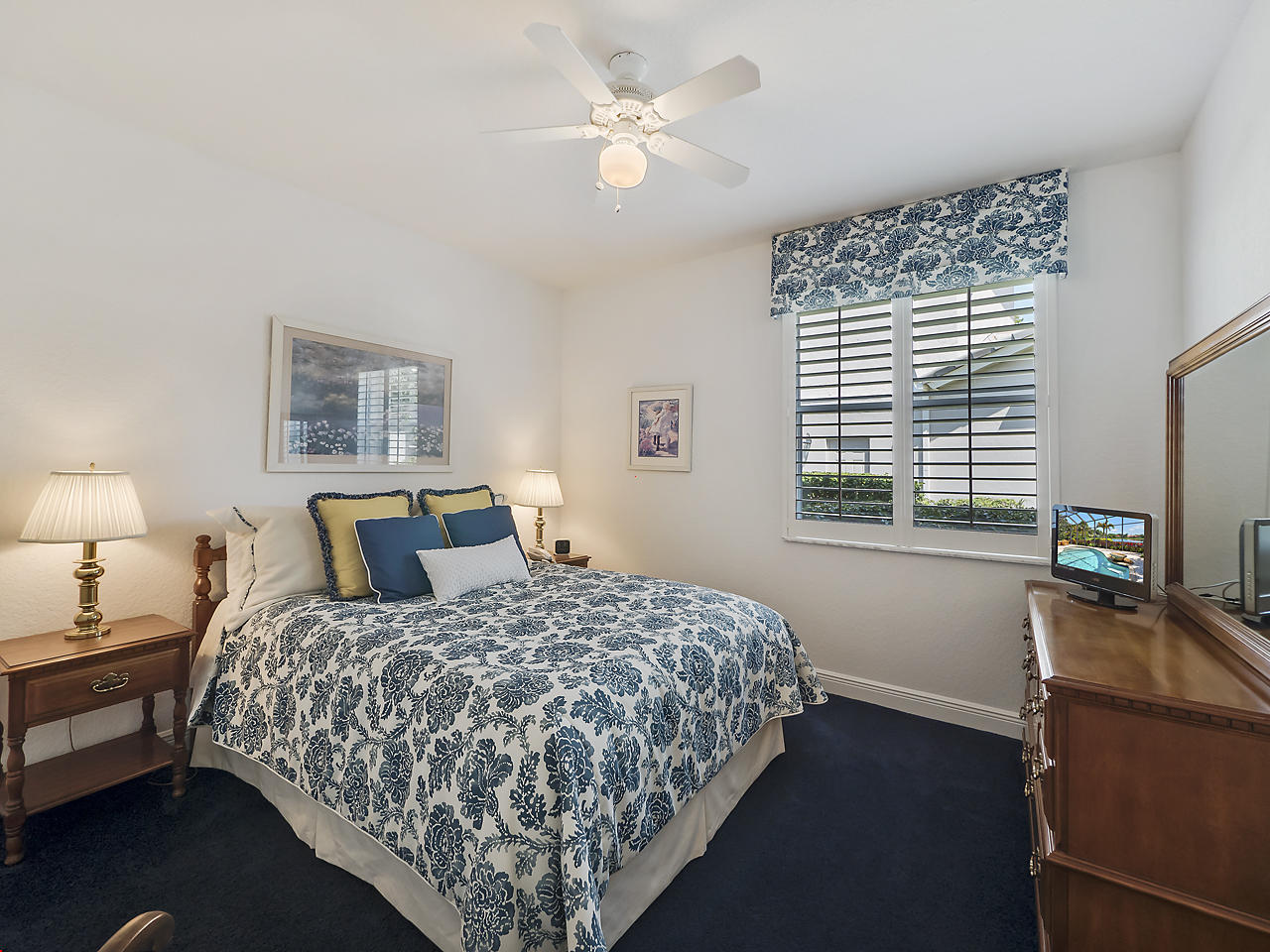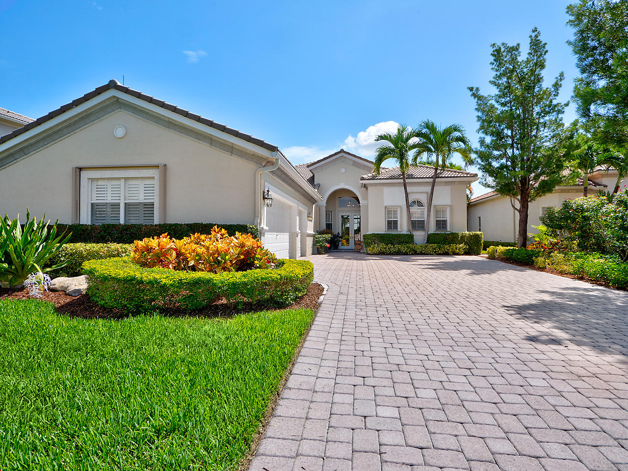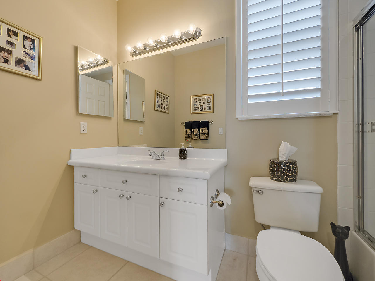 The FoyerUpon entering this lovely home you are greeted by flooring which features 2 inch tile inlay, and a trey ceiling which is enhanced by a chandelier. The front door includes a phantom screen which provides the house with a delightful breeze on cool days.The Living RoomThis 21.4' x 16' living room has 17.5" x 17.5" tiled flooring. This tile flooring is found through out most of the house. The living room is separated from the kitchen by a cut out wall. Sliding glass doors provide an entrance on to the screened in pool and patio which has magnificent views of both a lake and the golf course.The Powder RoomThe powder room includes a vanity sink, a cabinet and is wall papered.The Office / DenThis 13.9' x 11' room serves as both an office and a den. Entrance to