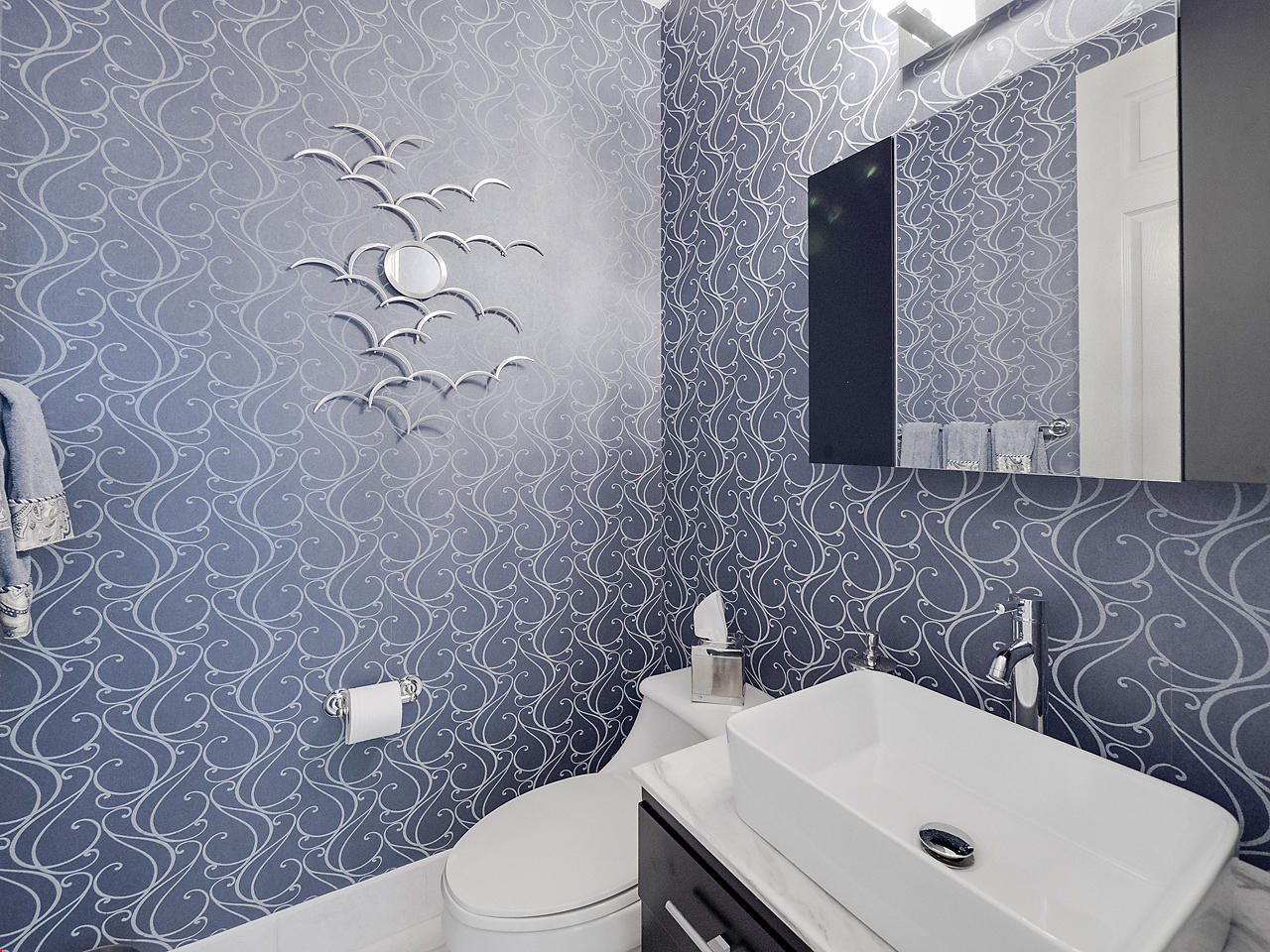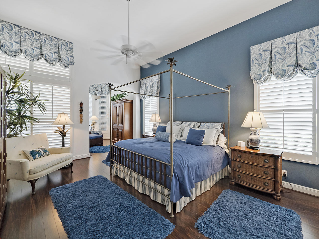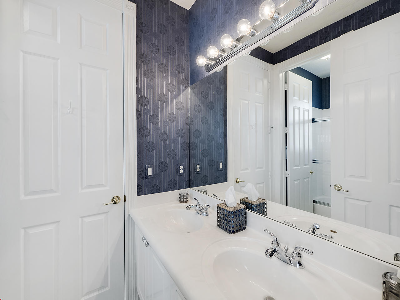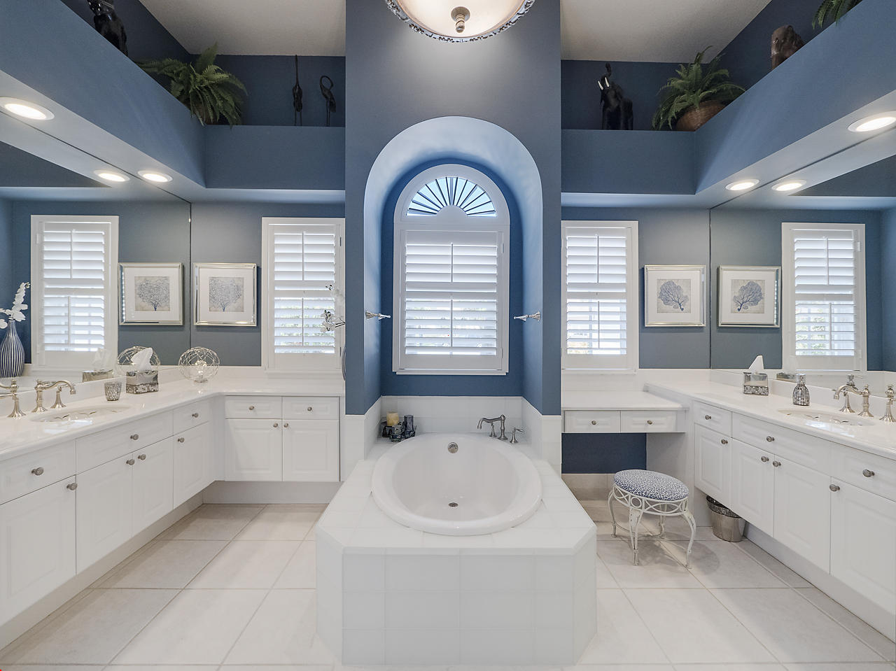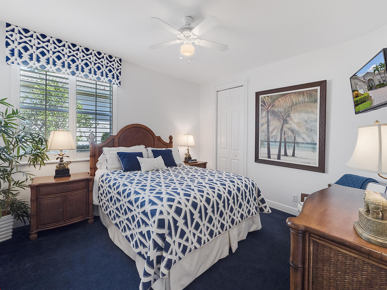 The FoyerUpon entering this lovely home you are greeted by flooring which features 2 inch tile inlay, and a trey ceiling which is enhanced by a chandelier. The front door includes a phantom screen which provides the house with a delightful breeze on cool days.The Living RoomThis 21.4' x 16' living room has 17.5" x 17.5" tiled flooring. This tile flooring is found through out most of the house. The living room is separated from the kitchen by a cut out wall. Sliding glass doors provide an entrance on to the screened in pool and patio which has magnificent views of both a lake and the golf course.The Powder RoomThe powder room includes a vanity sink, a cabinet and is wall papered.The Office / DenThis 13.9' x 11' room serves as both an office and a den. Entrance to