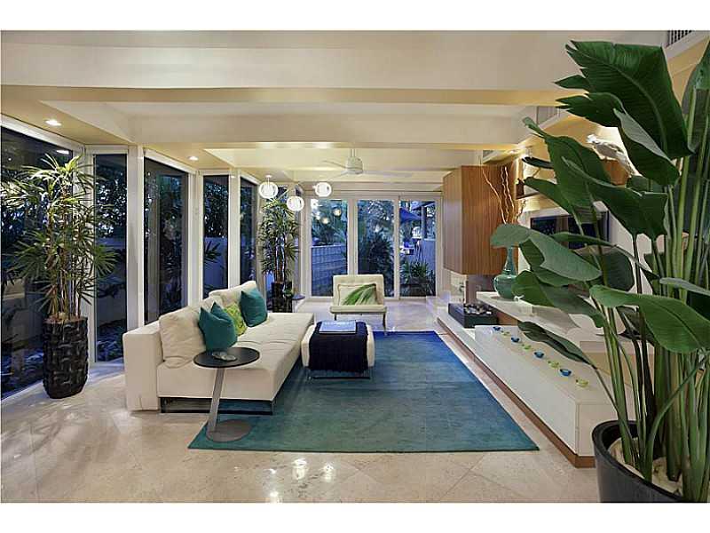 Perfect Tropical Point. Open the door to style & luxury. Professionally remodeled w/ impact windows, designer finishes, high ceilings, bright rooms. Intracoastal water views & garden views from every room. Open flowing floor plan perfect for entertaining & the ultimate boat parade party home. Deep water dockage for up to 80' yacht. Gourmet kitchen & summer kitchen overlooks pool, spa & Intracoastal. Grassed yard for pets or kids. Meticulous condition ready to move in. Walk to shops, restaurants & beach.