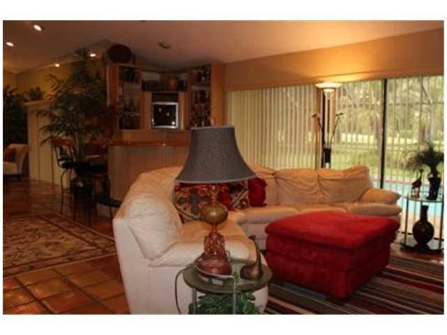 Beautifully maintained and decorated home in non-equity golf course community. Hurricane impact windows, newer central air conditioning unit. Exquisite Mexican tile floors with wood laminate in the bedrooms. Private backyard with pool and extended view o f the golf course.Furniture available for sale.