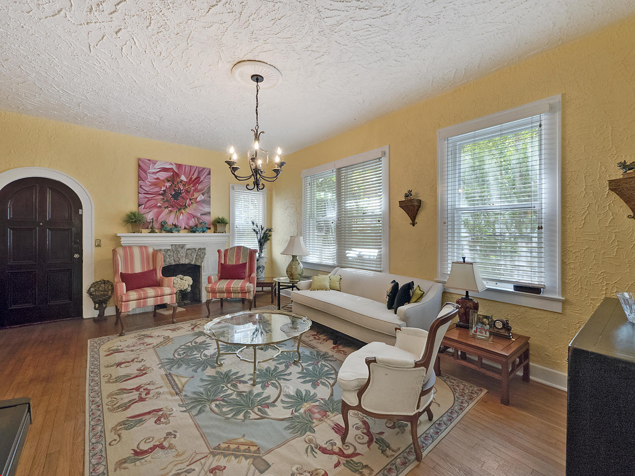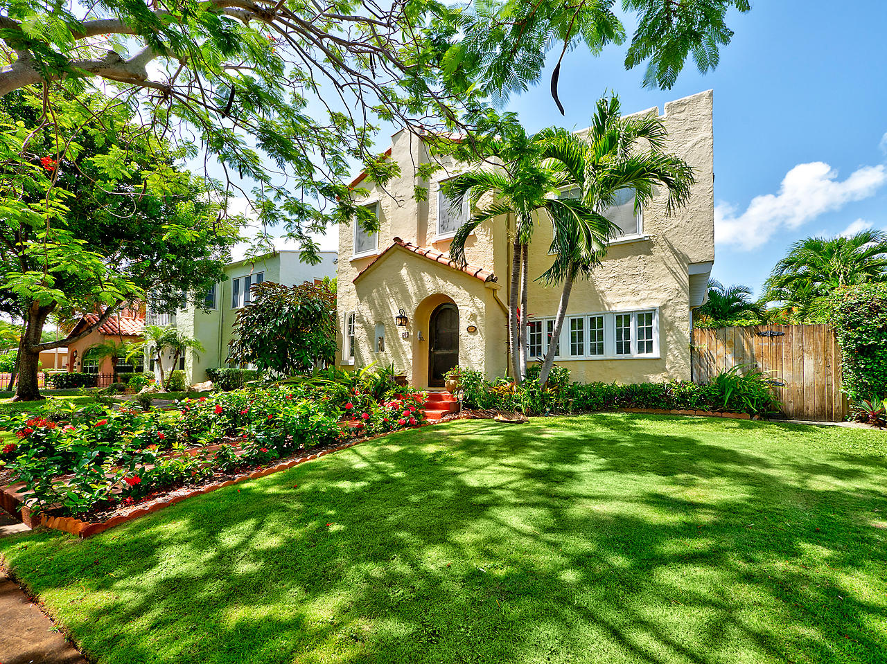 REDUCED! Off Street Parking AND RENTAL INCOME! LET THE TENANT COVER THE TAXES! Restored Old Florida Spanish Style home awaits you! Main house has 4 large bedrooms. Separate 2.5 cr garage with off street parking and 2BR 1BA apartment above. Enter the old world charm and beauty with all the modern comforts. Ground floor features oversized living room with working fireplace, Dade Pine hardwood flooring. Large formal dining room for entertaining and family gatherings. Step down to cozy den with pecky cypress ceilings and moldings and full bath. Easily convertable to additional bedroom. Large office with wooden ceilings. Oversized kitchen with Spanish tile, huge center island with prep sink and breakfast nook which overlooks patio and yard.