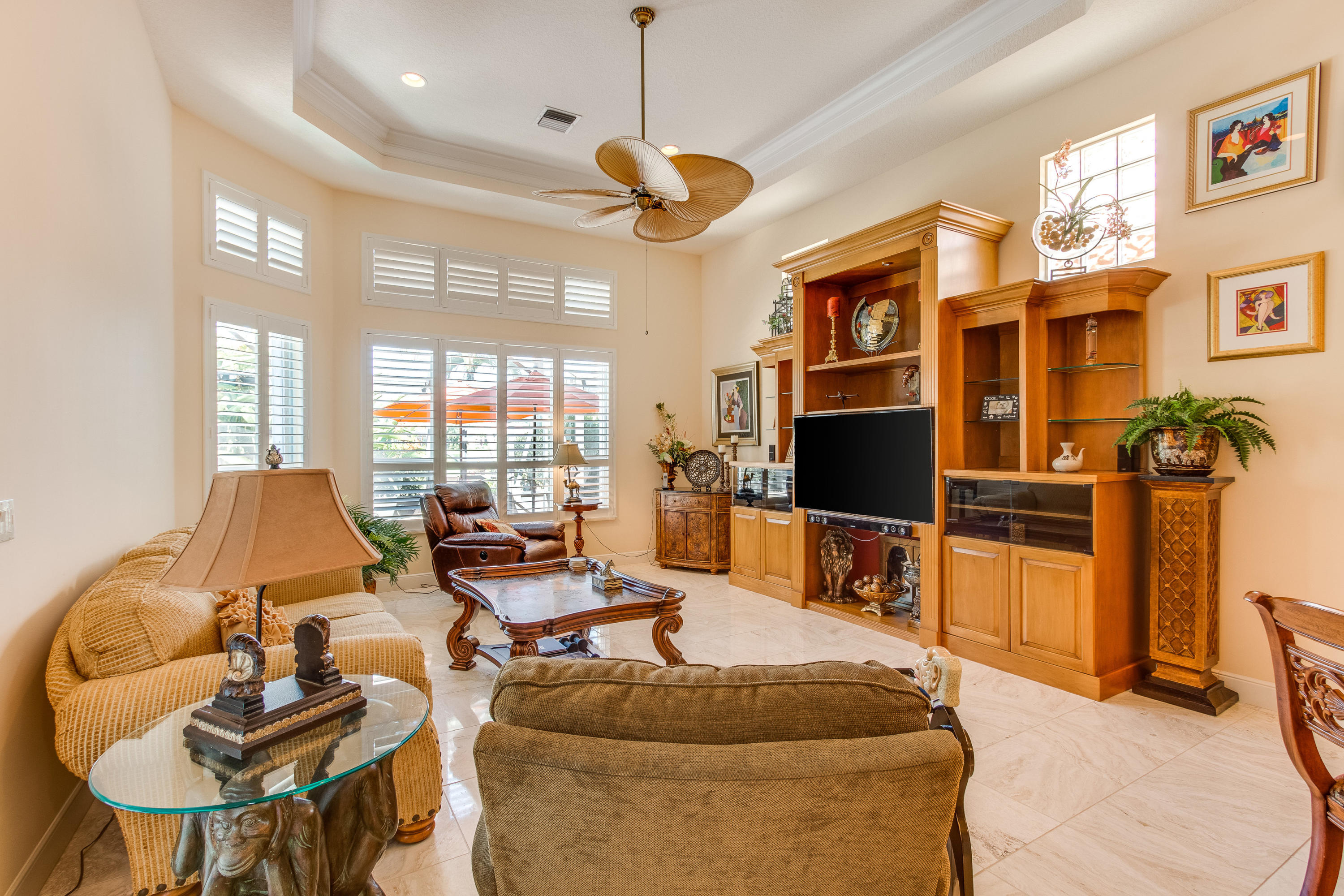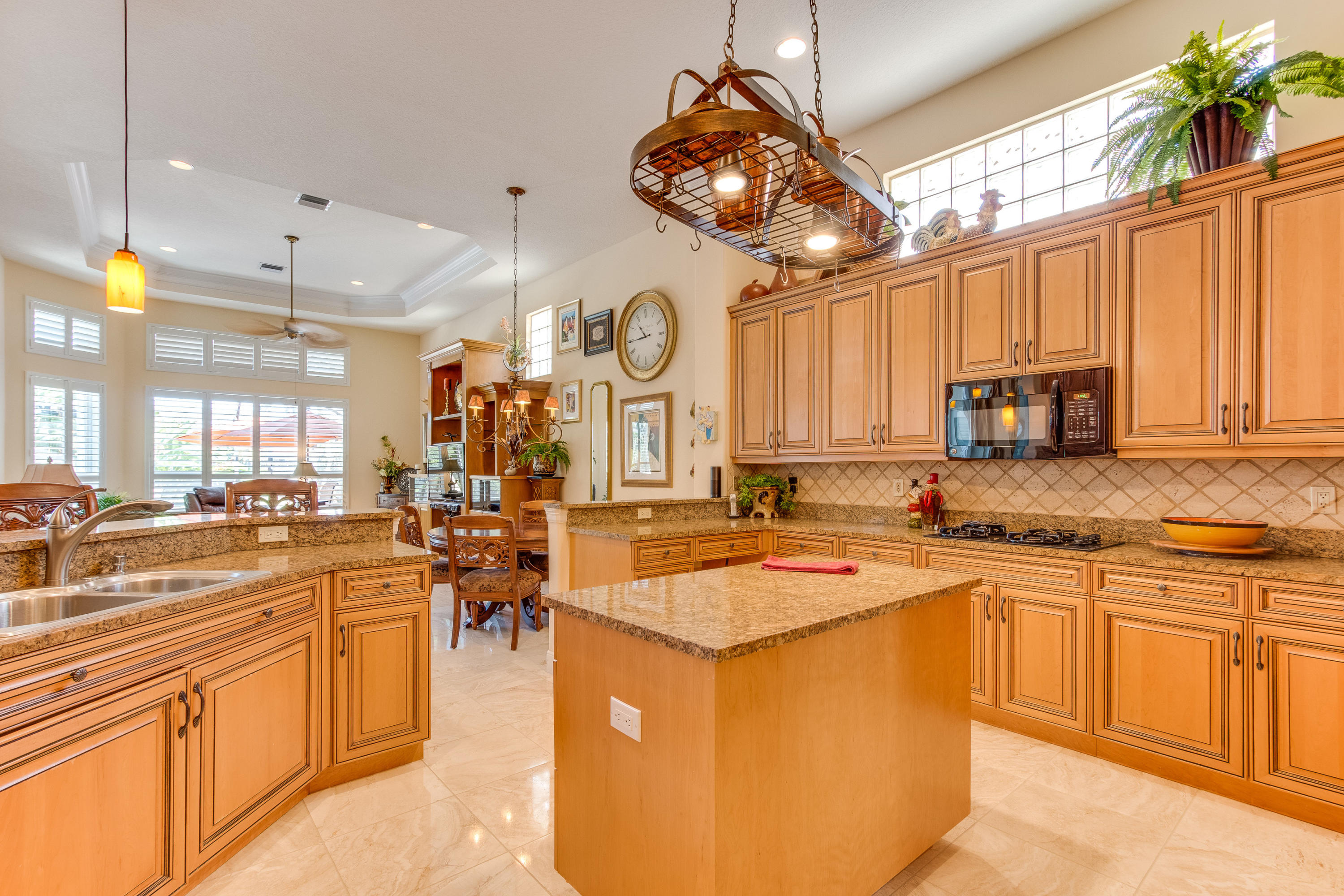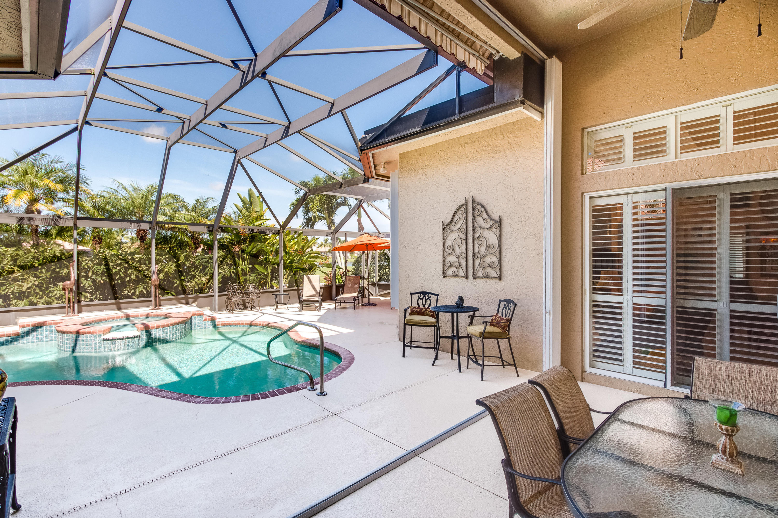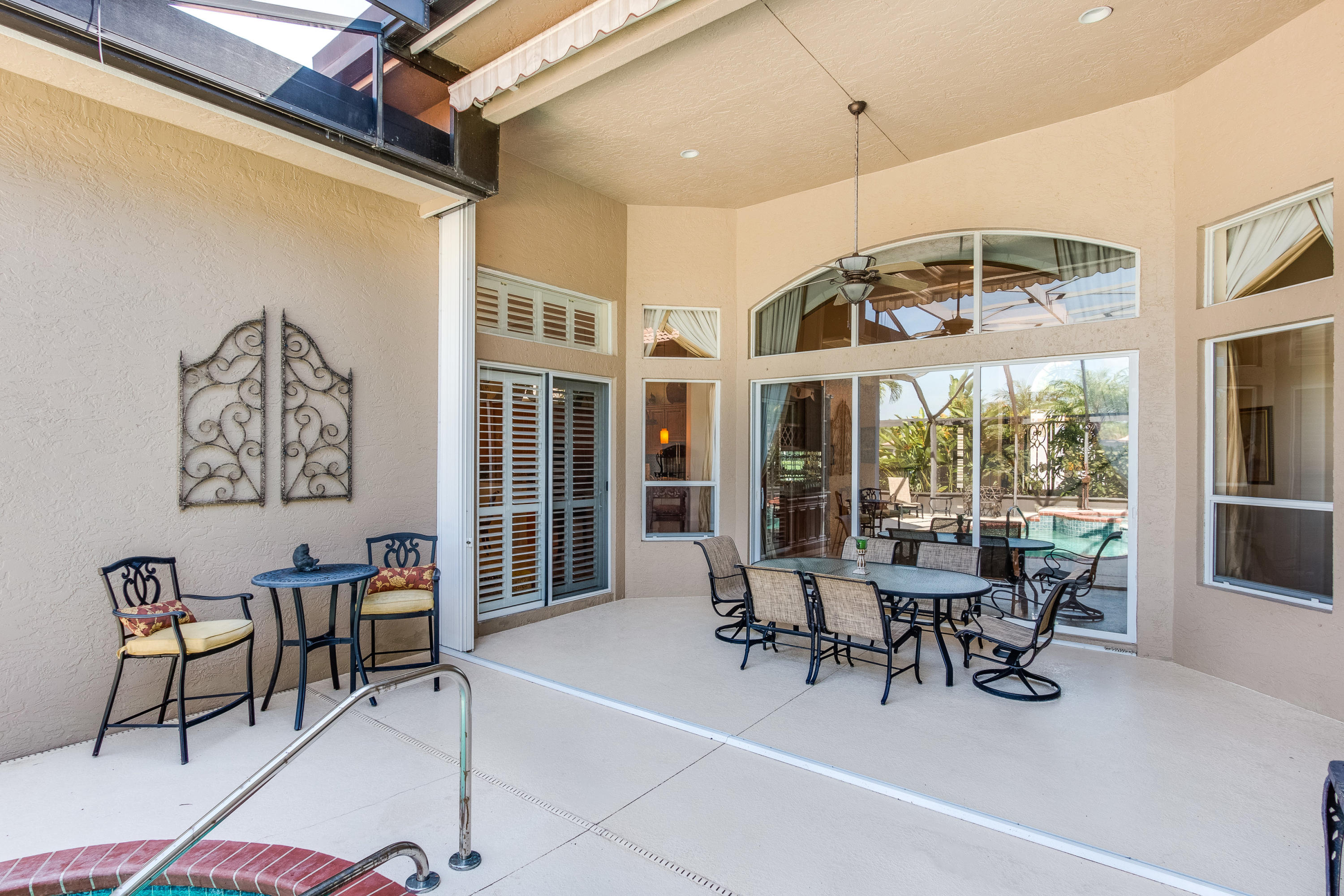 PRICE REDUCED AGAIN!!! Gorgeous 3 bedroom + den, 3 bath home with golf & water views. Freshly polished marble floors throughout main living areas. Crown molding & coffer ceilings. Accordion hurricane shutters! NEW A/C's (replaced in 2016 and 2017)!!! Living room features custom bar/cabinet built-in. Kitchen has lots of cabinets (with pull-outs), natural gas cooktop, granite counters, wall oven, and pantry. Adjacent family room w/ custom built-in incl TV. Master bedroom suite has 2 walk-in closets w/ built-ins. Master bath w/ Whirlpool tub, steam shower, cabinet pull-outs. Den/office with glass french doors & custom built-in w/ desk. Huge screened patio w/ heated pool/spa, gas line for grill, retractable awning over covered patio, tons of space! Irrigation from lake. Golf & Lake Views!