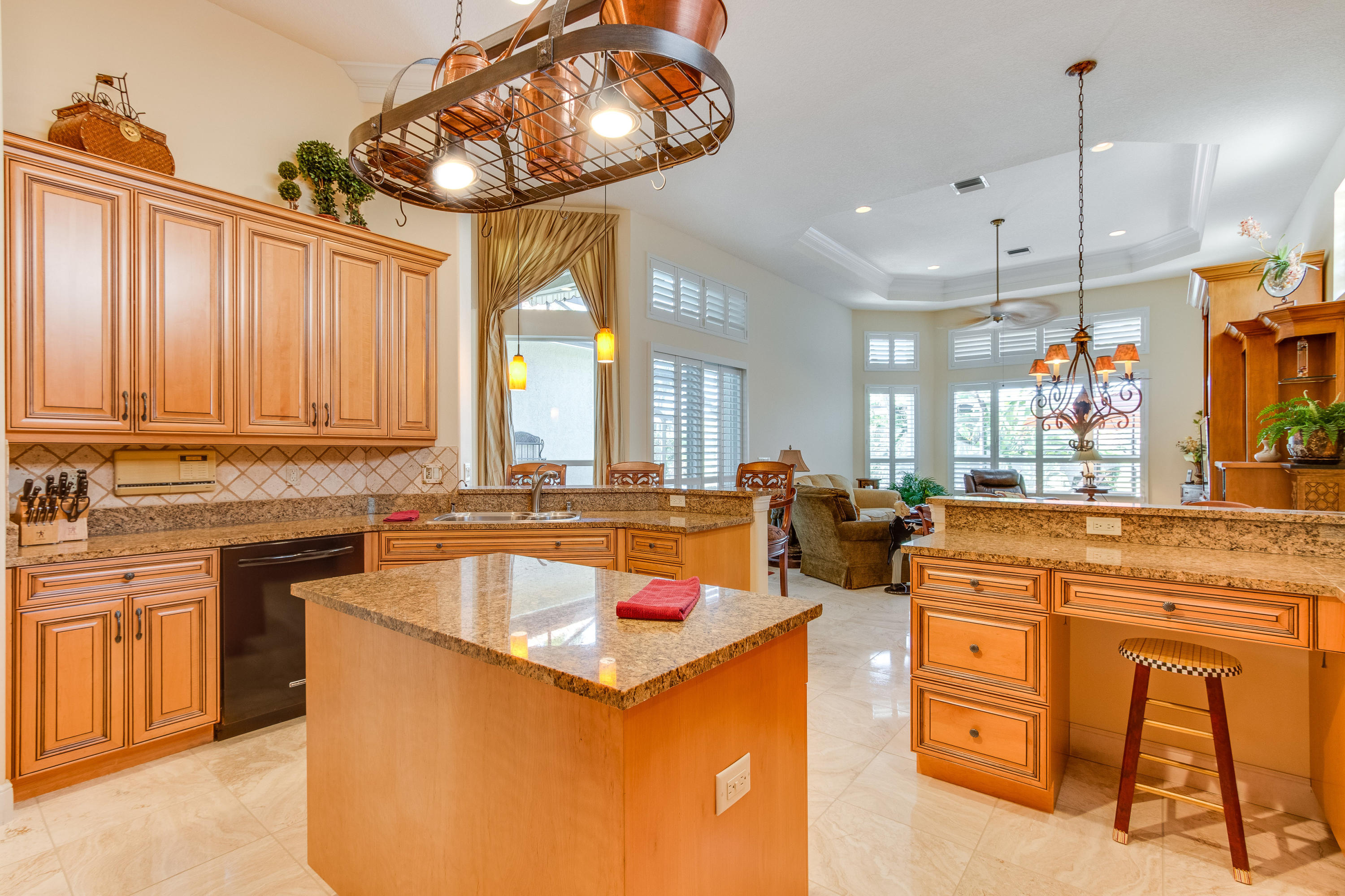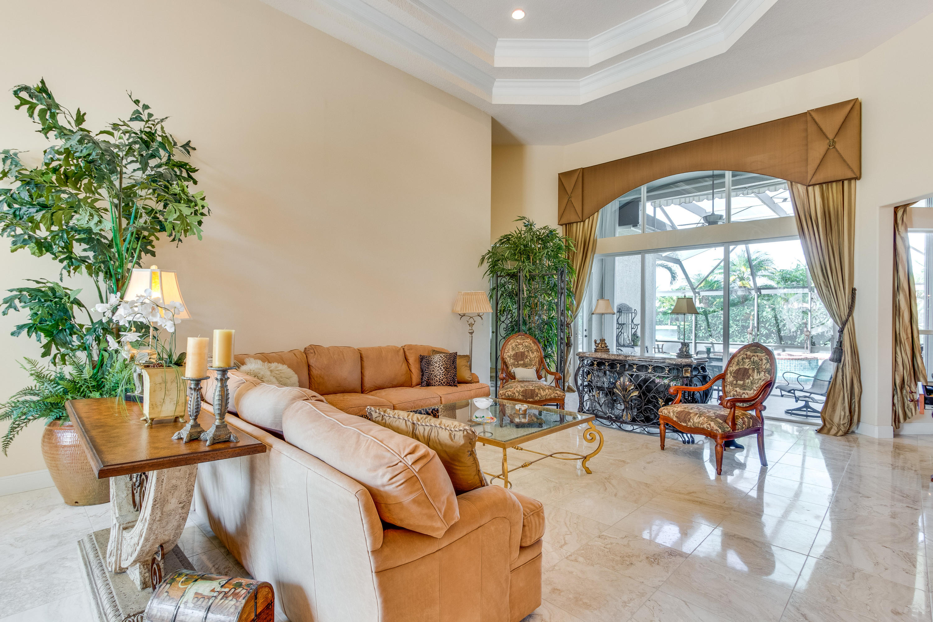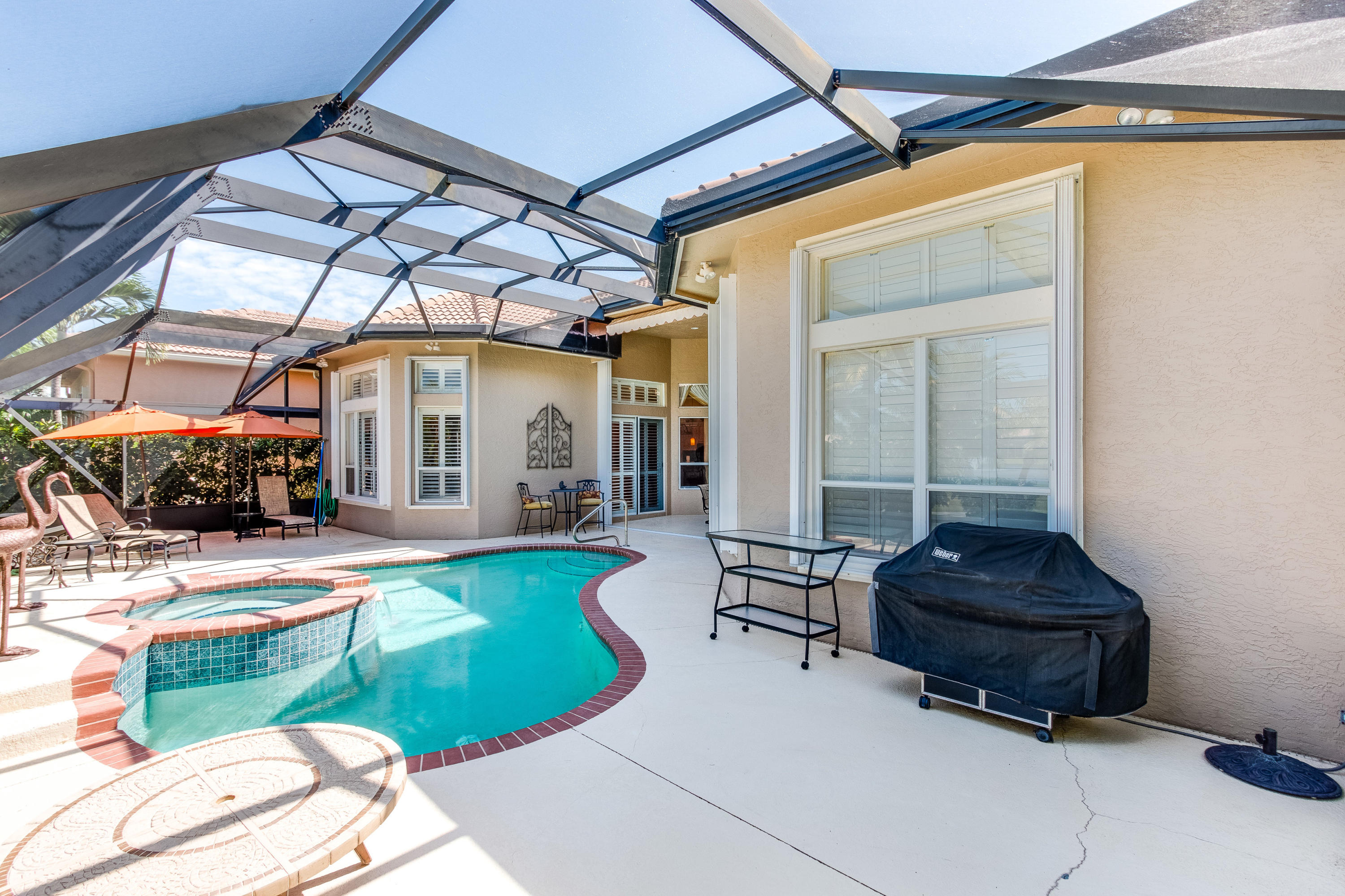 PRICE REDUCED AGAIN!!! Gorgeous 3 bedroom + den, 3 bath home with golf & water views. Freshly polished marble floors throughout main living areas. Crown molding & coffer ceilings. Accordion hurricane shutters! NEW A/C's (replaced in 2016 and 2017)!!! Living room features custom bar/cabinet built-in. Kitchen has lots of cabinets (with pull-outs), natural gas cooktop, granite counters, wall oven, and pantry. Adjacent family room w/ custom built-in incl TV. Master bedroom suite has 2 walk-in closets w/ built-ins. Master bath w/ Whirlpool tub, steam shower, cabinet pull-outs. Den/office with glass french doors & custom built-in w/ desk. Huge screened patio w/ heated pool/spa, gas line for grill, retractable awning over covered patio, tons of space! Irrigation from lake. Golf & Lake Views!