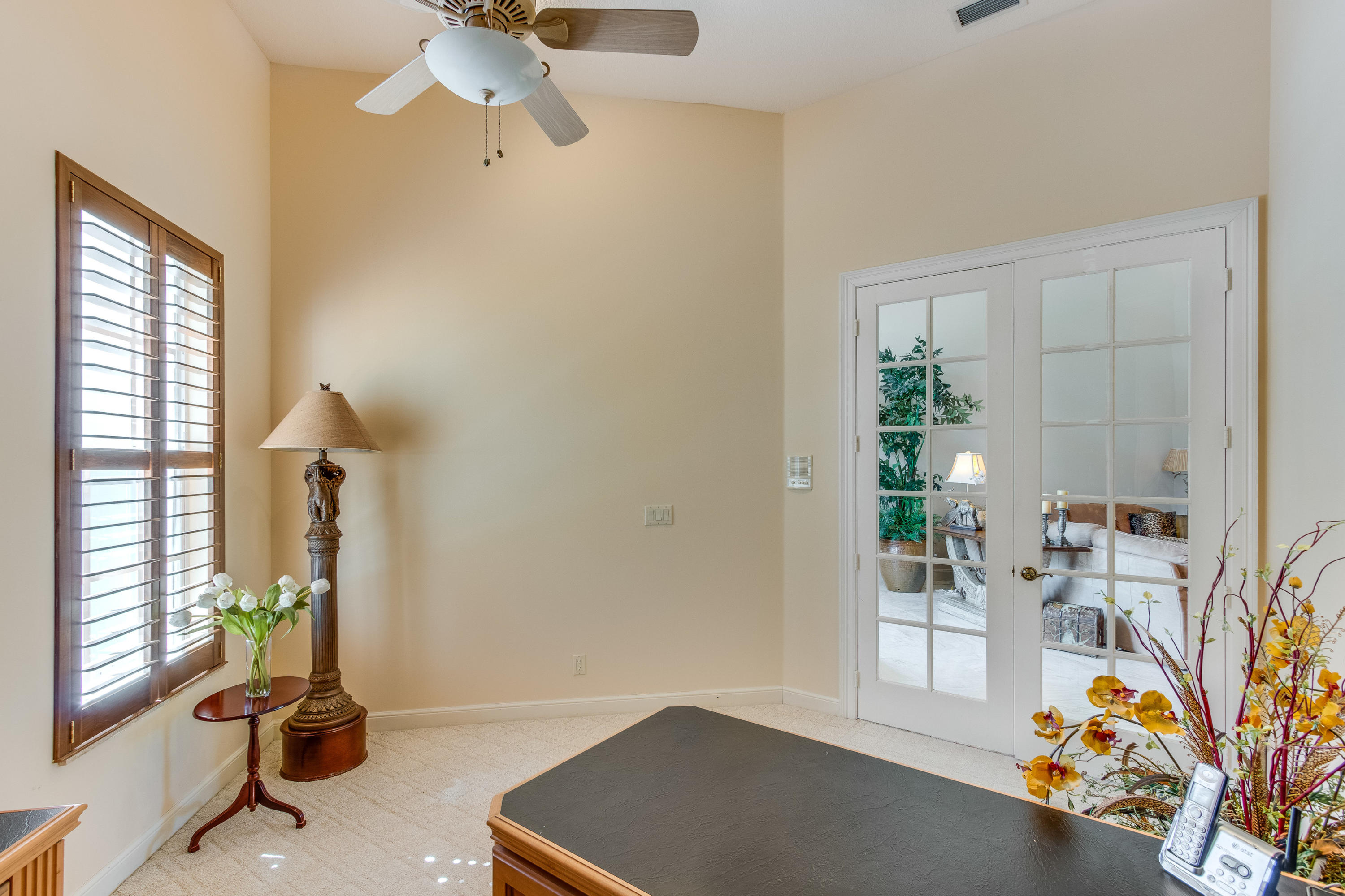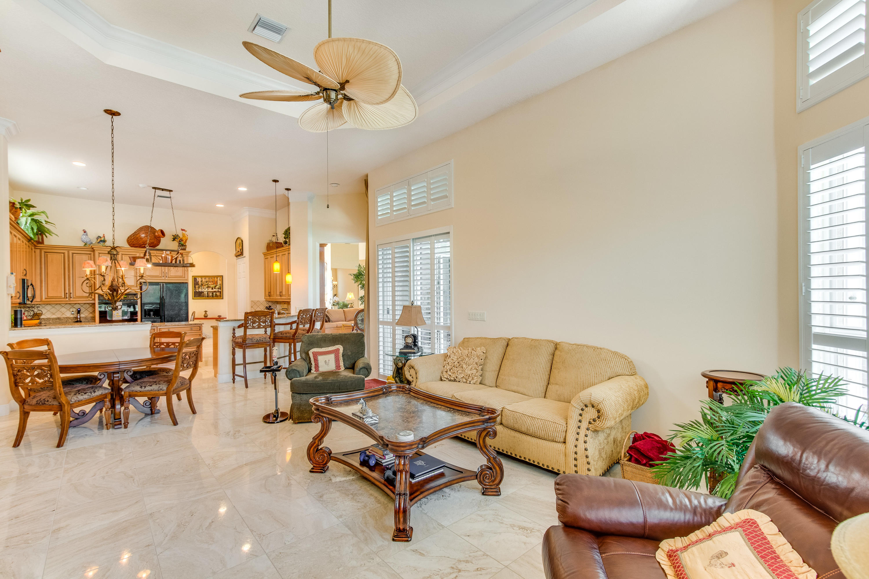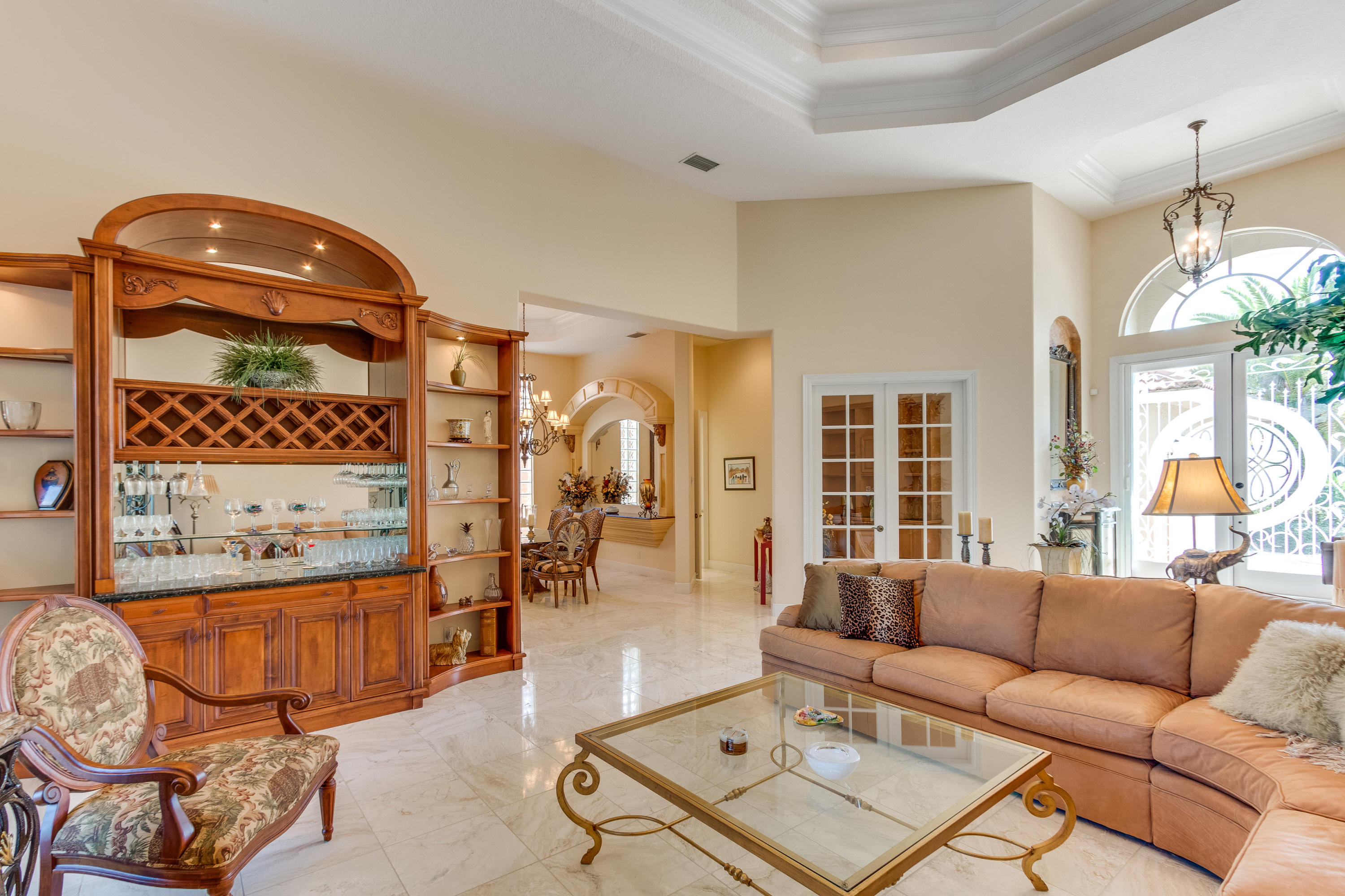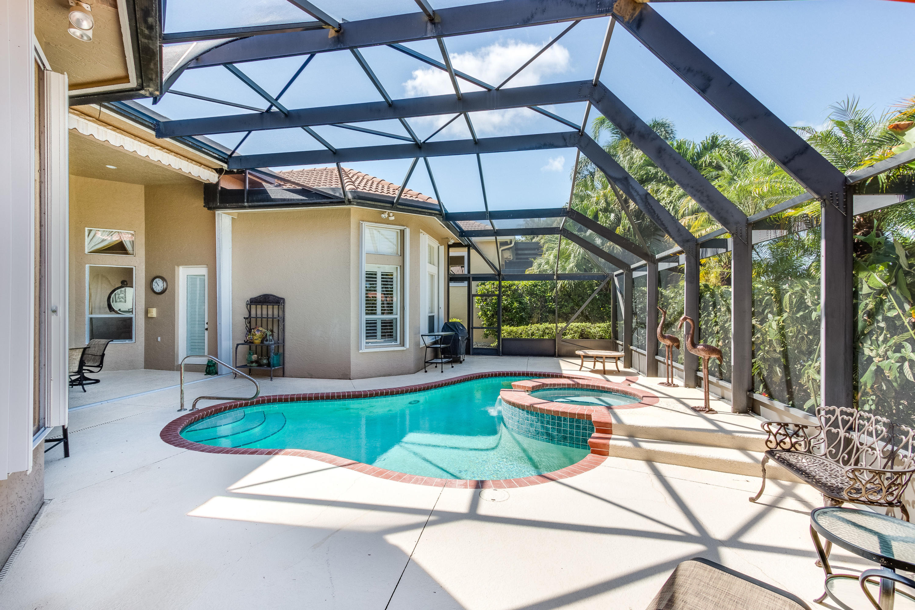 PRICE REDUCED AGAIN!!! Gorgeous 3 bedroom + den, 3 bath home with golf & water views. Freshly polished marble floors throughout main living areas. Crown molding & coffer ceilings. Accordion hurricane shutters! NEW A/C's (replaced in 2016 and 2017)!!! Living room features custom bar/cabinet built-in. Kitchen has lots of cabinets (with pull-outs), natural gas cooktop, granite counters, wall oven, and pantry. Adjacent family room w/ custom built-in incl TV. Master bedroom suite has 2 walk-in closets w/ built-ins. Master bath w/ Whirlpool tub, steam shower, cabinet pull-outs. Den/office with glass french doors & custom built-in w/ desk. Huge screened patio w/ heated pool/spa, gas line for grill, retractable awning over covered patio, tons of space! Irrigation from lake. Golf & Lake Views!