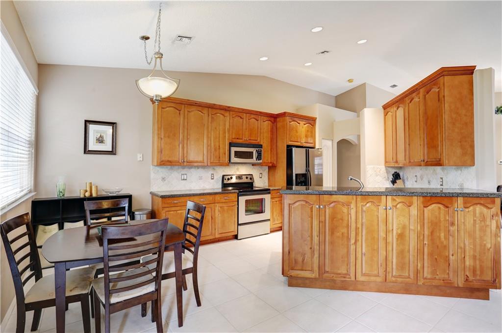 Spectacular updated home with many upgrades. This rarely available, single story model has a beautiful, large, eat-in kitchen with tumbled marble, granite and stainless steel appliances. Stone look tile throughout living areas and bathrooms. New A/C is less than one year old. Meticulously maintained, this immaculate home is truly move-in ready and at a great price in a fantastic community. 4th Bedroom is currently used as an office.