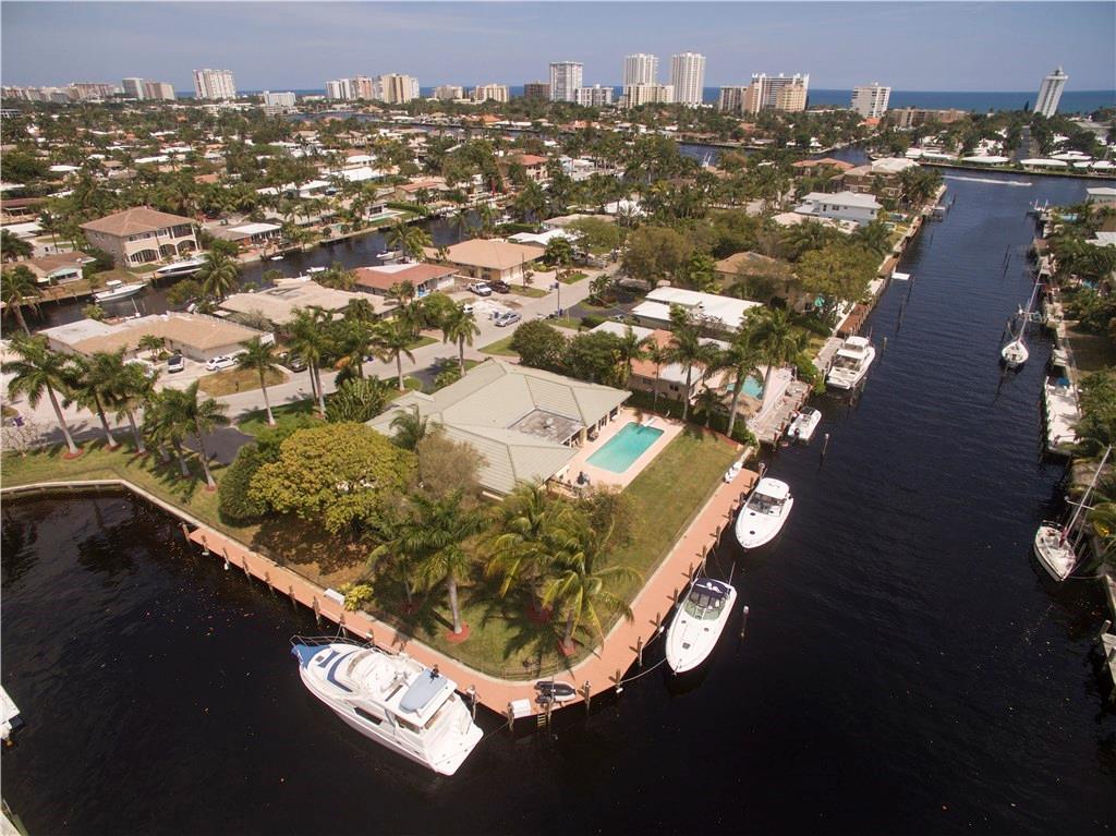 Yachtsman’s Deepwater Point Estate – Surrounded by 365’ of wraparound waterfrontage, this prime SW Point Estate provides 260’ of deepwater dockage minutes to the Hillsboro Inlet. Lush tropical landscaping secludes the expansive grounds measuring a total of 21,810+/- sq.ft, over half an acre! Spacious Ranch Style Estate featuring updated chef’s kitchen, and luxurious master bedroom retreat. Other amenities include 45 KW Gas Generator, Impact Windows/Doors and Resort-Style Pool/Patio. Shown by appt. only