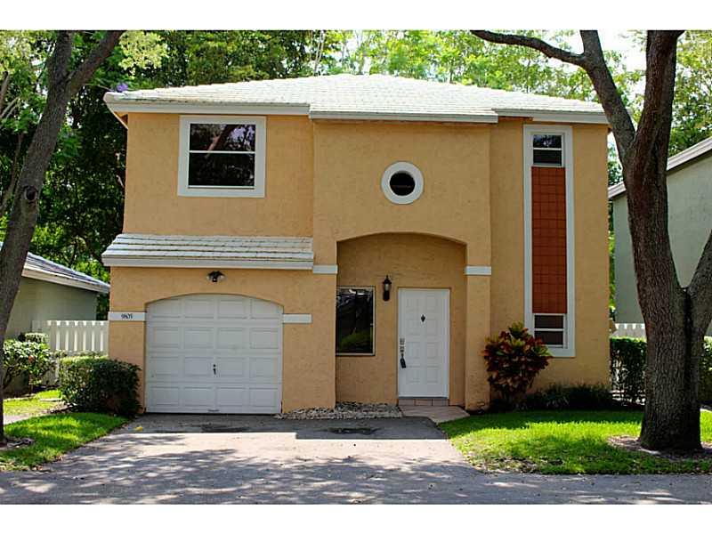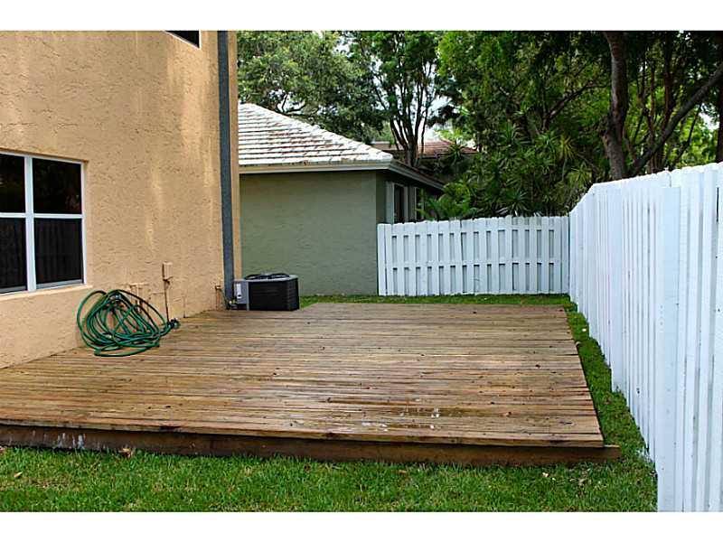 Modernized 3/2.5 two story home in Jacaranda Quatraine. New kitchen, baths & AC compressor installed June 2014, roof replaced in 2012, new tile on first floor, laminate on second floor & all popcorn has been removed. Garage is partially converted to give you a family room while leaving you with extra storage! Backyard is a perfect size, fenced with renovated deck. Walk to the community pool in under a minute or head down the street to Central Park. This home is a great value where you can move right in!