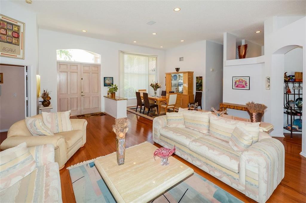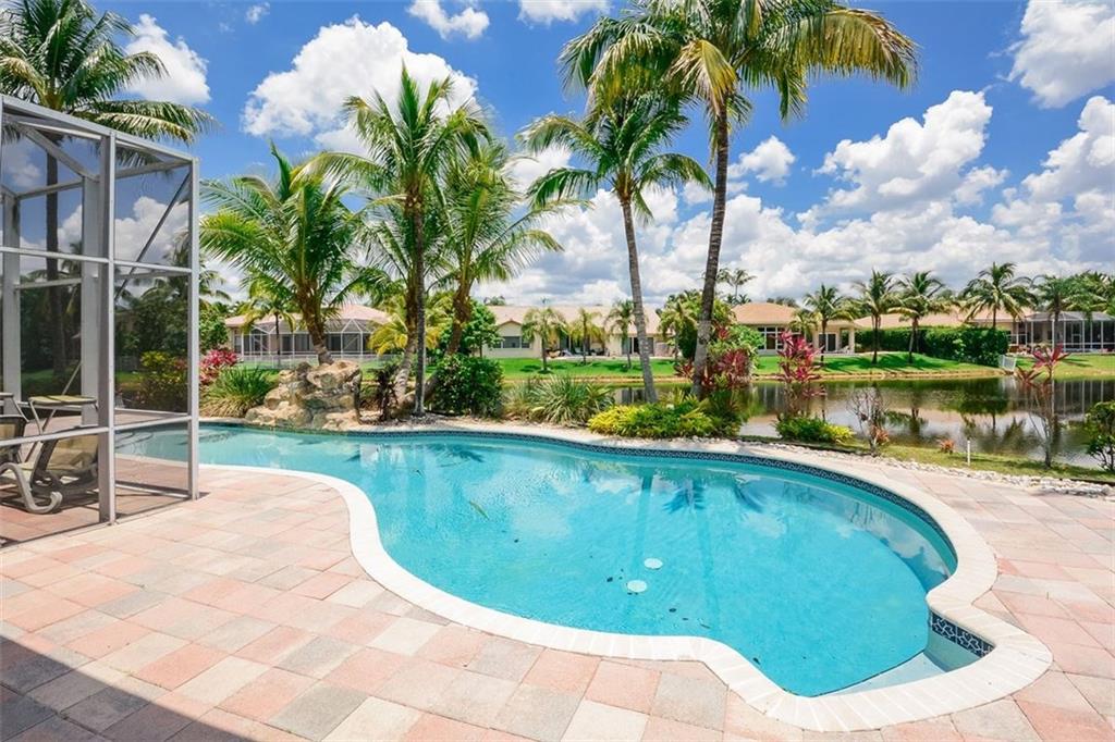 Fabulous home is situated in lovely "Westport" Great schools and location. Newer section, 4 bedroom 3 bath triple split floor plan. Home opens up across the back overlooking large patio screened-in pool and lake , pie shaped lot leaves plenty of room for children's recreational items. Home features 2011 roof 2013 A/C'S , stainless steel appliances , accordian shutters and lush landscaping. Home is in center of community on cul de sac.