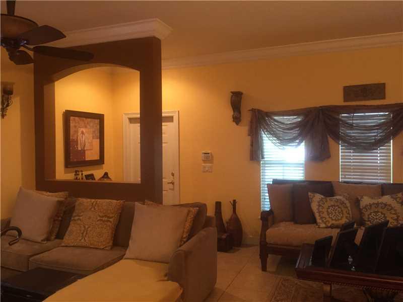 Immaculate 3 bed 2 1/2 bath townhouse in Miramar. This spacious home with 2 car garage boast wood floors upstairs and 20 inch tiles downstairs. Stainless steel appliances in kitchen, crown molding and loads of other upgrades.