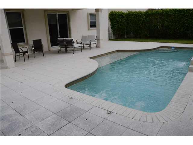 Contemporary 5BR, 4BA Weston Hills home has all the space to entertain with a large great room. Georgous designer upgrades include crown molding, porcelain tile, coral stone deck and pool with waterfall feature, and impact windows upstairs and accordion s hutters down. Chef's Kitchen with NEW Stainless Whirlpool appliances, 42" cabinets, and granite counters is open concept. Master Bedroom has sitting area and luxury master bath andcloset organizers. A rated schools in this gated golf community has it all!