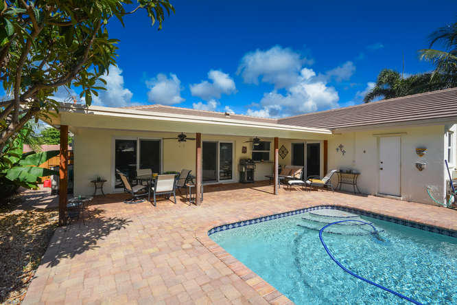 Gorgeous updated ranch style home!!!!! This home is truly move in ready. Beautiful modern kitchen with shaker wood cabinets, stainless steel appliance and midnight granite counter tops. Tile and laminate floors throughout. Updated spa bathroom, impact glass. Pool and patio redone with pavers and tile. Master bedroom offer a walk-in closet. Lush and tropical is the only way to describe this fabulous outdoor space, oversized covered patio perfect for South Florida living. Oversized garage with great storage. Your oasis in the sun awaits you light bright and welcoming only 1.5 miles from the beach close to shopping places of worship and some of the best restaurants in the area.