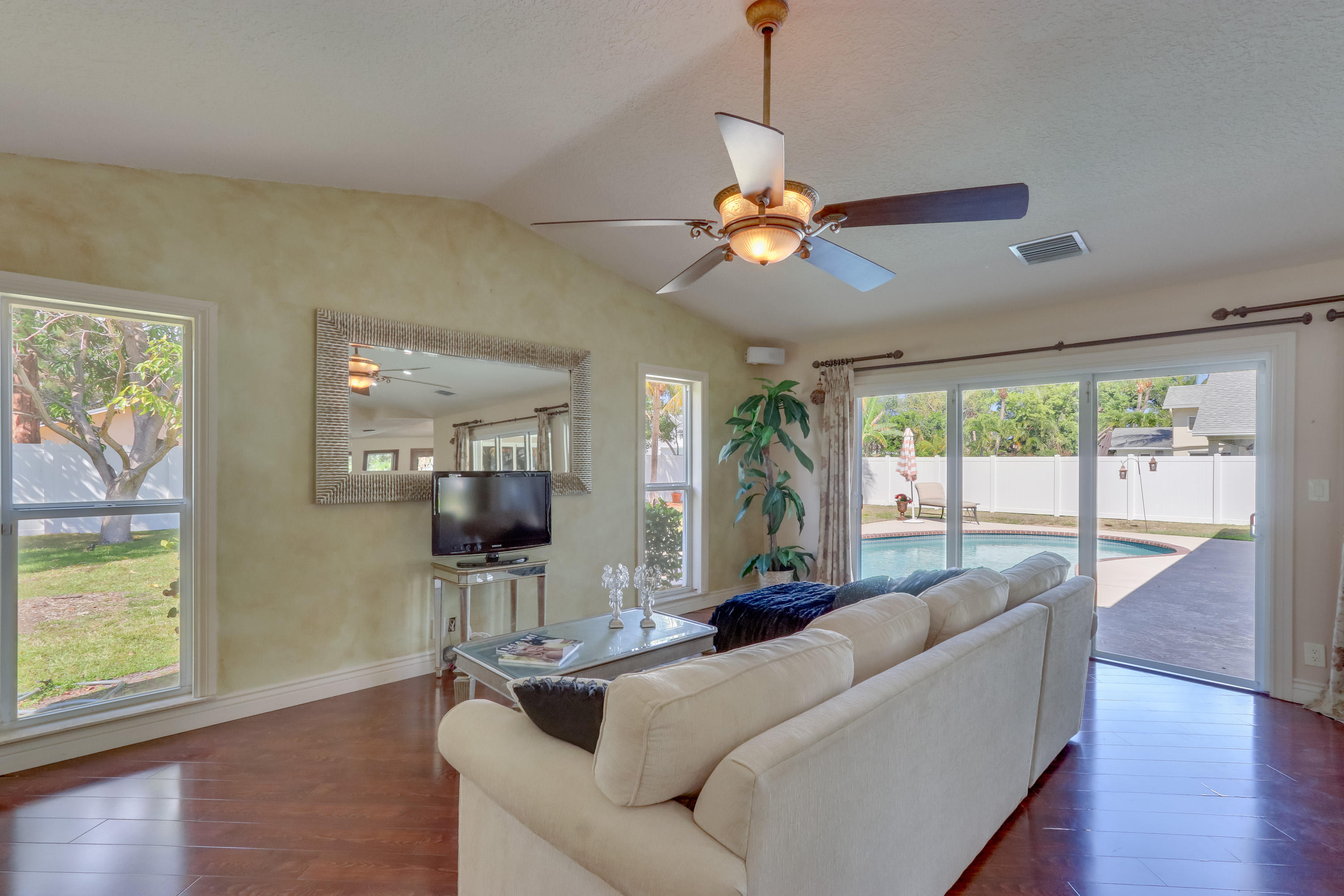Beautiful Gated Entryway~ 15X30 Open Pool, Large Yard, ~ Granite Kitchen, stainless steel appliances, 5 burner gas stove, 60 bottle Viking wine cooler, Impact Windows, Double glass front door, Bedrooms have California Walk-in Closets ~ Laundry Room w/high end Washer/Dryer ~ Lg Fully Fenced Yard with New White PVC Fence, Jacuzzi in Master Bath, Alarm & Security Cameras view on IPhone, Home completely Rewired & New Electric Panels, Surround Sound System throughout~ New Irrigation system, Wonderful Curb appeal! Desirable School System ~ Shows beautiful